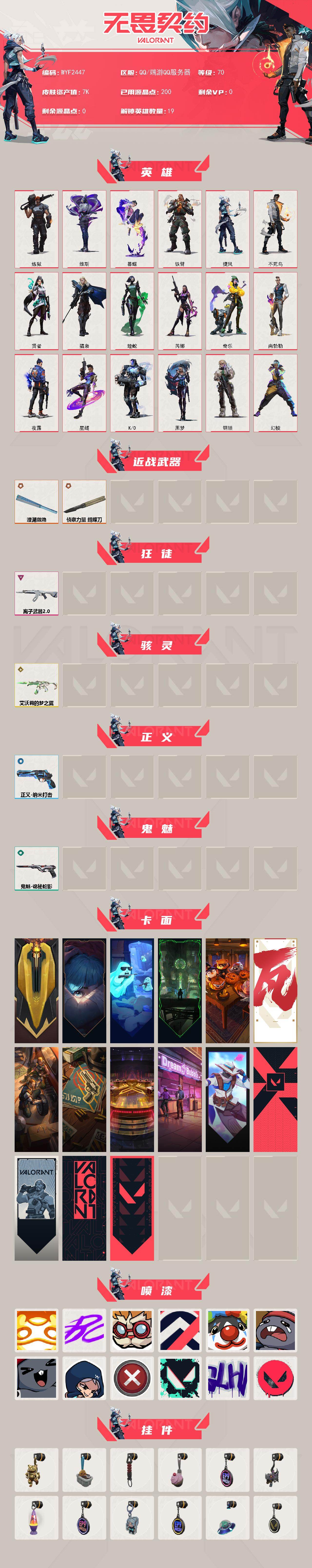 【wyf2447】终极2/传奇1/卓越1/皮肤7/等级70/段位:未定级/幻棱/炼狱/维斯/暮蝶/铁臂/捷风/不死鸟/贤者/猎枭/蝰蛇/芮娜/奇乐/尚勃勒/夜露/星礈/k/o/黑梦/钢锁/侦察力量-蝴蝶刀/澄湖潋滟/狂徒-离子武器//2.0/骇灵-艾沃莉的梦之翼/正义-纳米打击/鬼魅-诡秘蛇影/进入射程 卡面/《双城之战》拥抱 卡面/精灵大战 卡面/欢迎来到底城 卡面/南瓜盛典 卡面