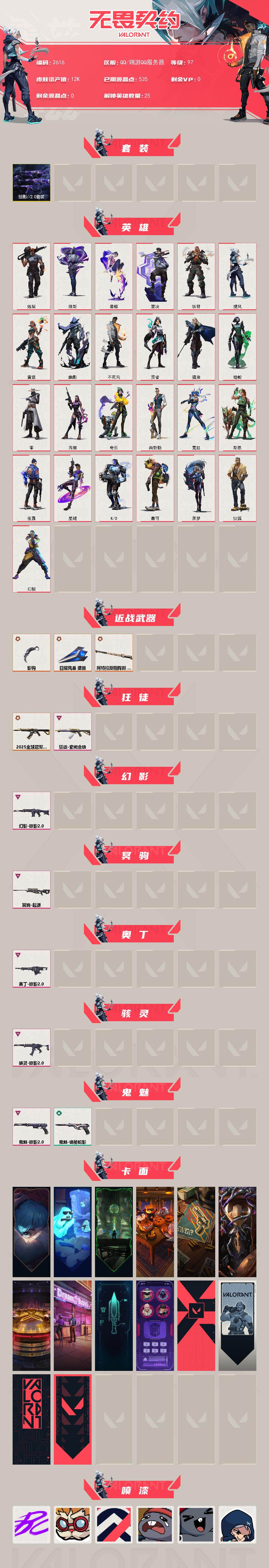 [16644385]【套装】:掠影//2.0套装 【英雄】:幻棱,炼狱,维斯,暮蝶,钛狐,壹决,铁臂,捷风,雷兹,幽影,不死鸟,贤者,猎枭,蝰蛇,零,芮娜,奇乐,尚勃勒,霓虹,斯凯,夜露,星礈,k/o,盖可,黑梦 【近战武器】:近战武器-影钩,近战武器-日耀风暴 遗器,近战武器-阿特拉斯指挥部 甩棍 【狂徒】:狂徒-2025全球冠军赛,狂徒-紫阙金琅 【幻影】:幻影-掠影//2.0 【冥驹】:冥驹-起源 【奥丁】:奥丁-掠影//2.0 【骇灵】:骇灵-掠影//2.0 【鬼魅】:鬼魅-掠影//2.0,鬼魅-诡秘蛇影 【卡面】:《双城之战》拥抱 卡面,精灵大战 卡面,欢迎来到底城 卡面,南瓜盛典 卡面,正义的化身 卡面,时间到 卡面,最高舞台 卡面,梦幻奶茶 卡面,零点嗅探设计图 卡面,清除名单 卡面,代号红色 卡面,新兵报到 卡面,v契约 卡面,无畏契约 卡面 【喷漆】:嘭! 喷漆,都算到了 喷漆,控场勿近 喷漆,熊抱 喷漆,超级粉丝 喷漆,捷风差距 喷漆,胜利属于无畏契约 喷漆,glhf 喷漆,无畏契约 喷漆 【挂饰】:伞绳 挂饰,《双城之战》小蛋糕 挂饰,第九季//第三幕 纪念币 挂饰,第九季//第二幕 纪念币 挂饰,袖珍捷风 挂饰,第九季//第一幕 纪念币 挂饰,第八季//第三幕 纪念币 挂饰,无畏契约 纪念币 挂饰