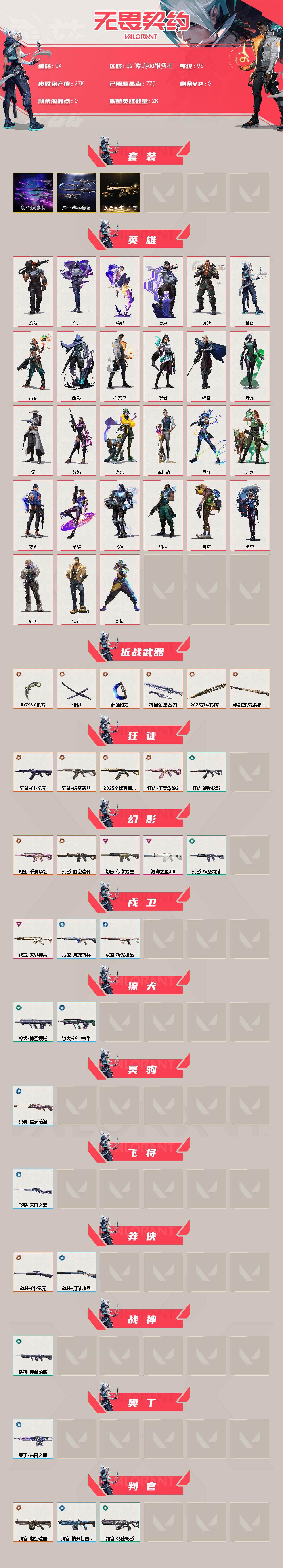 【皮肤价值37270 2025全球冠军赛套装,虚空遗器套装,创·纪元套装】【游戏等级】lv98 【段位】 白银i 【r点】775 【皮肤总价值】37270 【英雄数量】28 【皮肤数量】62 【挂饰数量】62 【卡面数量】105 【喷漆数量】90 【鬼魅】鬼魅-幻心猎手 鬼魅-奇幻朋克 鬼魅-星云暗涌 【狂徒】狂徒-千灵华绽//2.0 狂徒-2025全球冠军赛 狂徒-阿特