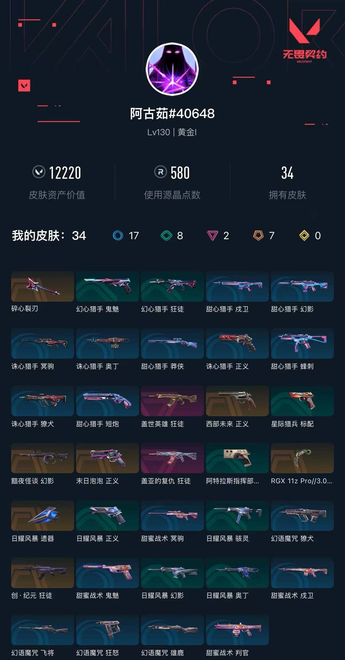 [16683460]【英雄】:幻棱,炼狱,维斯,暮蝶,壹决,捷风,雷兹,幽影,不死鸟,贤者,猎枭,蝰蛇,零,芮娜,尚勃勒,霓虹,斯凯,夜露,k/o,海神,盖可,黑梦,钢锁 【近战武器】:近战武器-rgx 11z pro//3.0 爪刀,近战武器-日耀风暴 遗器 【狂徒】:狂徒-创·纪元,狂徒-盖世英雄,狂徒-盖亚的复仇 【幻影】:幻影-黯夜怪谈 【正义】:正义-西部未来,正义-末日泡泡 【卡面】:无畏契约go!第一卷:零 卡面,《双城之战》金克丝 卡面,代号红色 卡面,新兵报到 卡面,v契约 卡面,无畏契约 卡面 【喷漆】:买装还是存钱 喷漆,红鳞 喷漆,胜利属于无畏契约 喷漆,glhf 喷漆,无畏契约 喷漆 【挂饰】:无畏契约 纪念币 挂饰