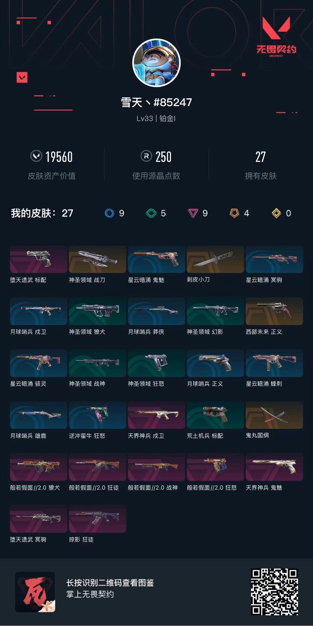 [7816366]4橙皮 9紫皮 27皮肤 13英雄 28卡面 250已用源晶 铂金 套装:般若假面//2.0套装 佩呛皮肤:狂怒-般若假面//2.0鬼魅-天界神兵标配-堕天遗武 步呛皮肤:狂徒-掠影狂徒-般若假面//2.0獠犬-般若假面//2.0戍卫-天界神兵 狙击呛皮肤:冥驹-堕天遗武 机呛皮肤:战神-般若假面//2.0 近战武器皮肤:神圣领域 战刀鬼丸国纲剥皮小刀