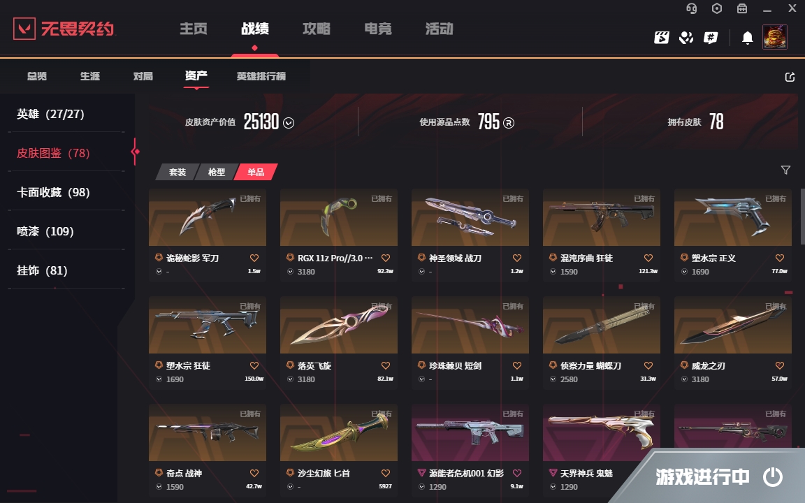[9145655]【保证金商户】【编号08984】【顶级神级爽号26英雄 113皮肤】【113皮 8卓越 19传奇 95r点】 鬼丸国纲 rgx 11z pro//3.0爪刀 落英飞旋 紫金爪刀 剥皮小刀 澄湖潋滟 塑水宗狂徒 西部未来正义 混沌序曲 狂徒 偃月苍龙 正义 洪荒怒焰 狂徒 掠影成卫 掠影狂徒 起源冥驹 天界神兵鬼魅 紫阙金琅狂徒 般若假面幻影 堕天遗武狂徒 盖亚的复仇狂徒 神圣领域战刀