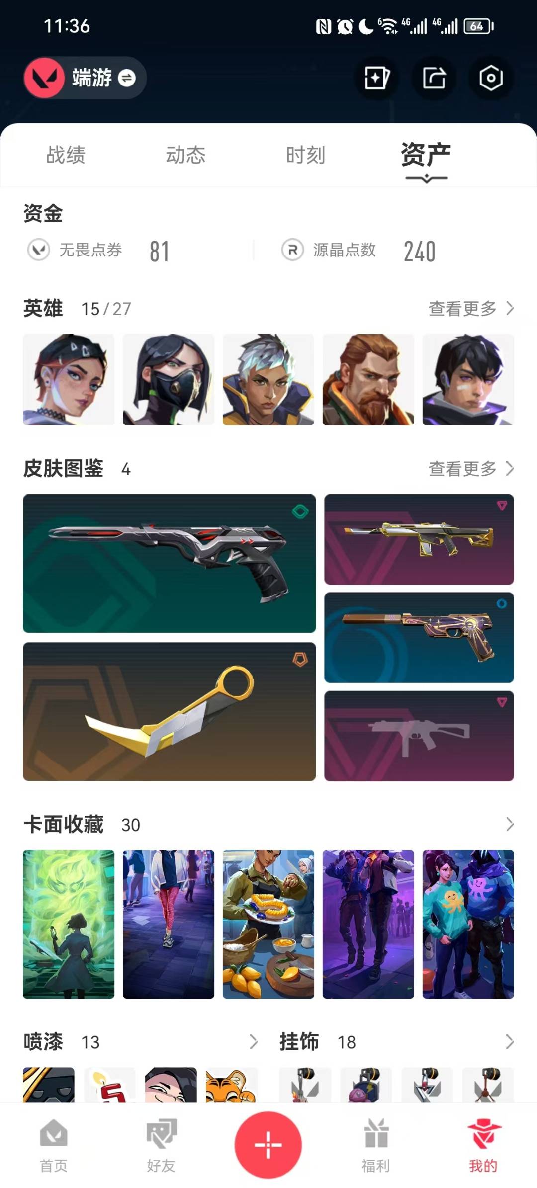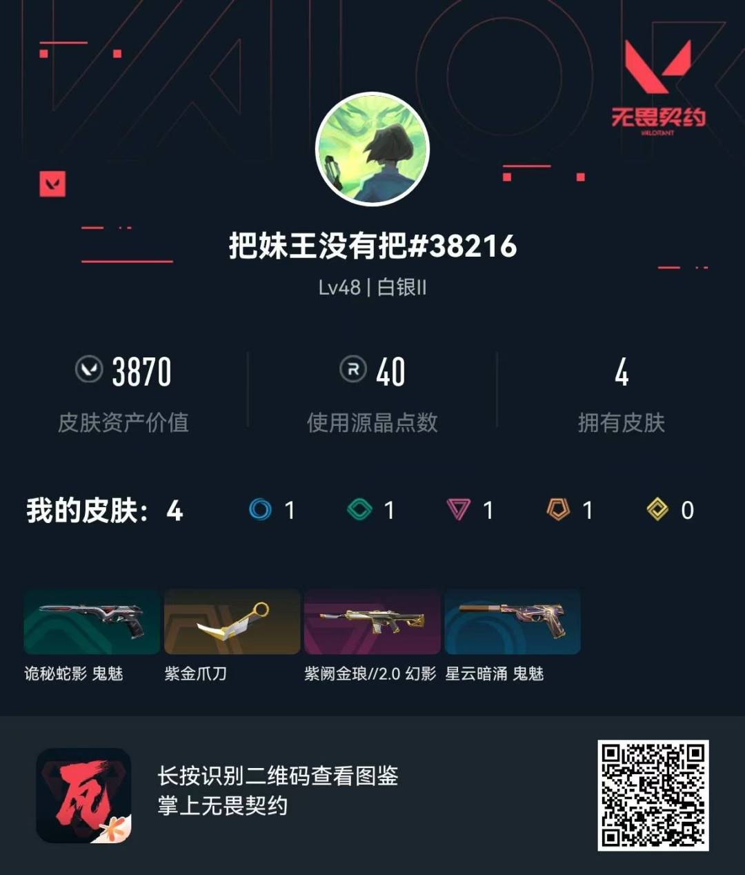 1橙皮 1紫皮 4皮肤 15英雄 30卡面 40已用源晶 白银 步呛皮肤:幻影-紫阙金琅2.0 近战武器皮肤:紫金爪刀