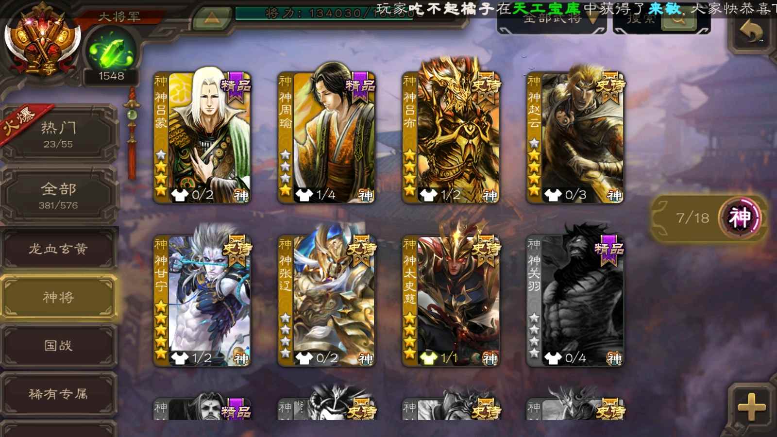 [11124686]v10大将军神太神甘宁神张辽大宝等47史诗武将