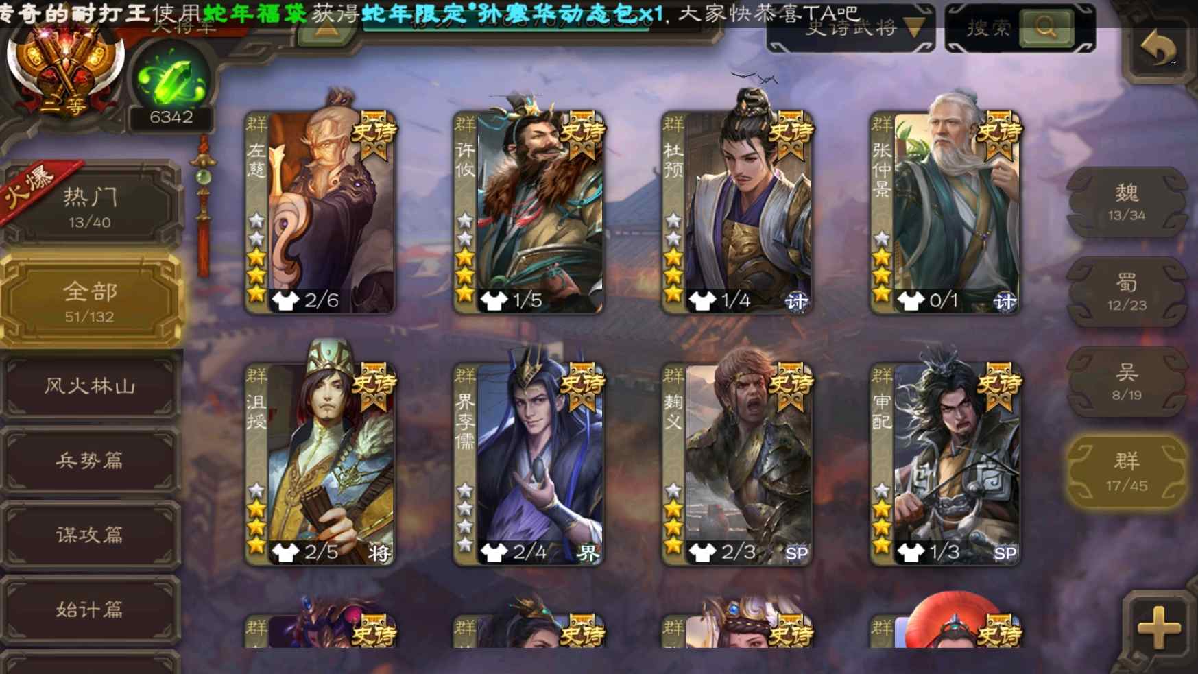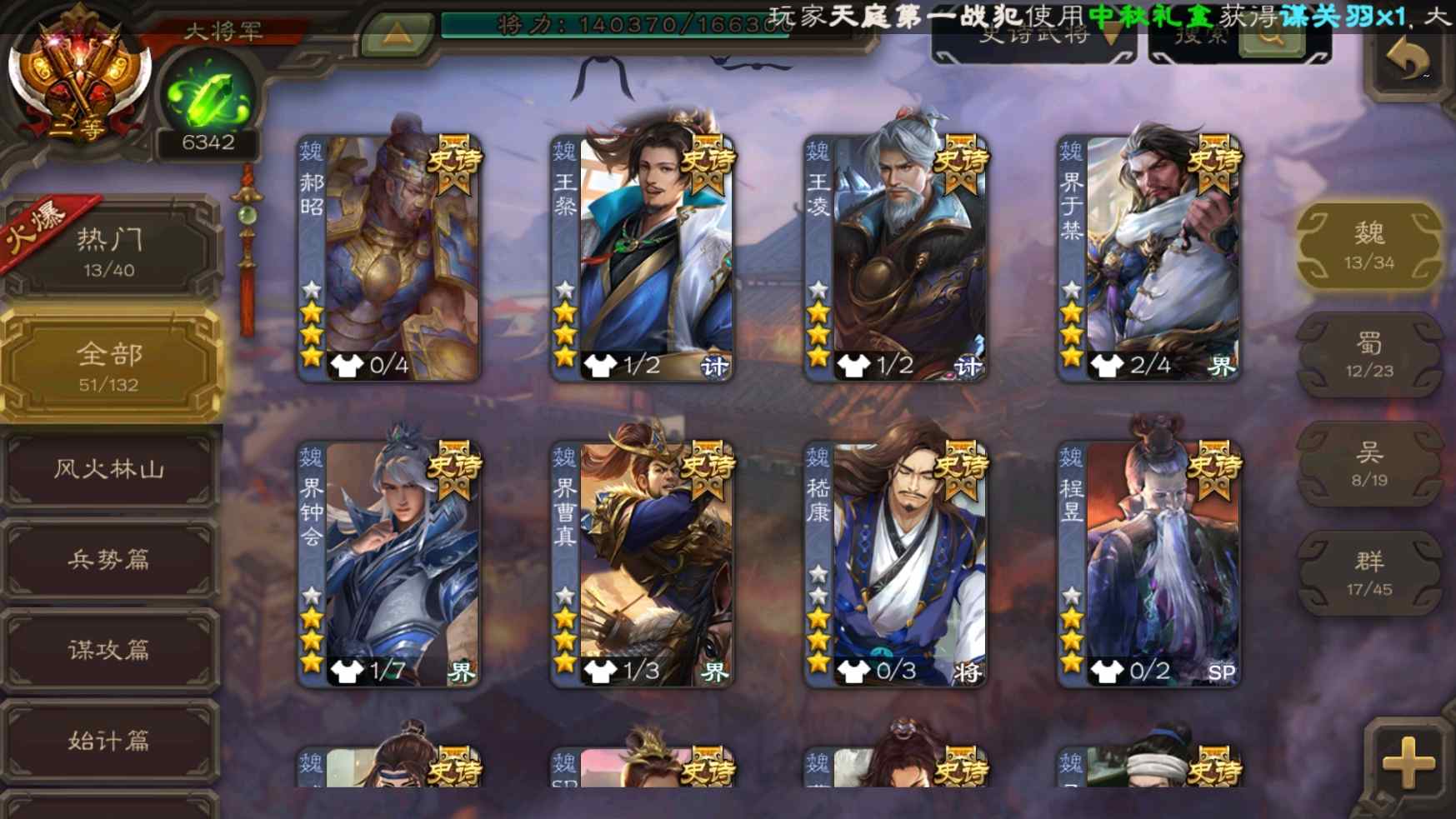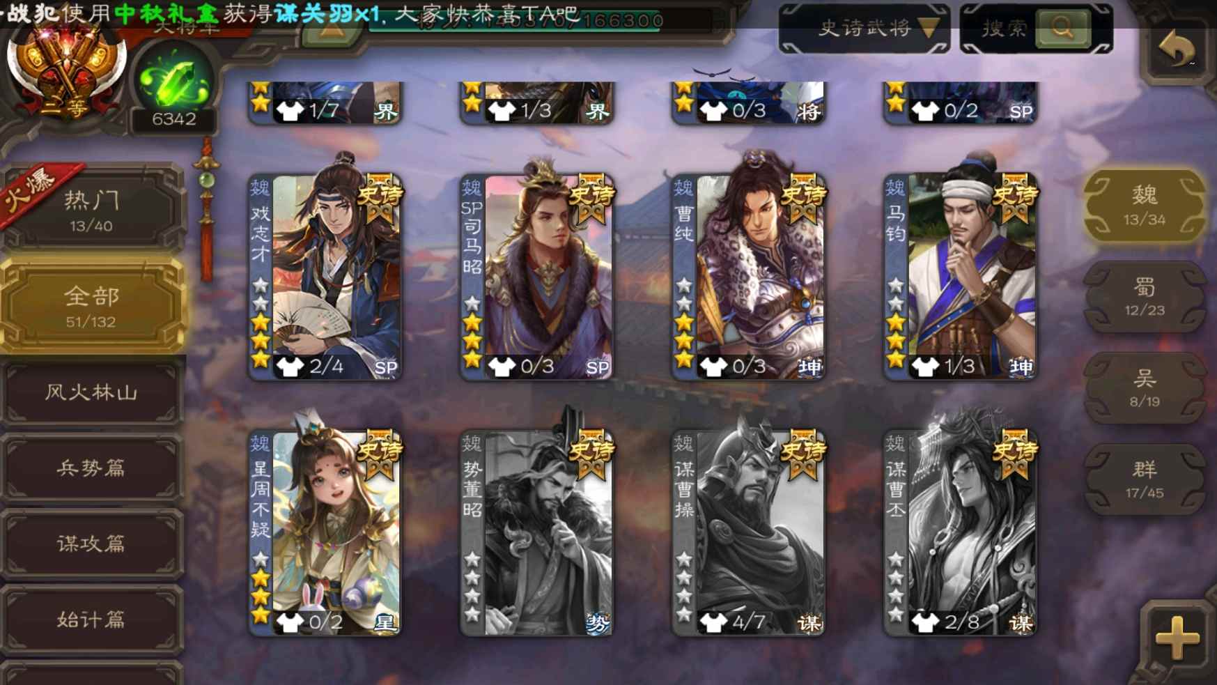 [11272325]v9大将军界钟会花鬘大宝沮授神赵云等51史诗武将