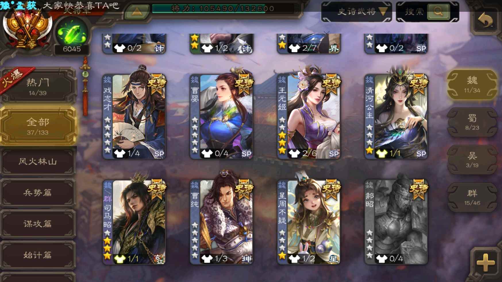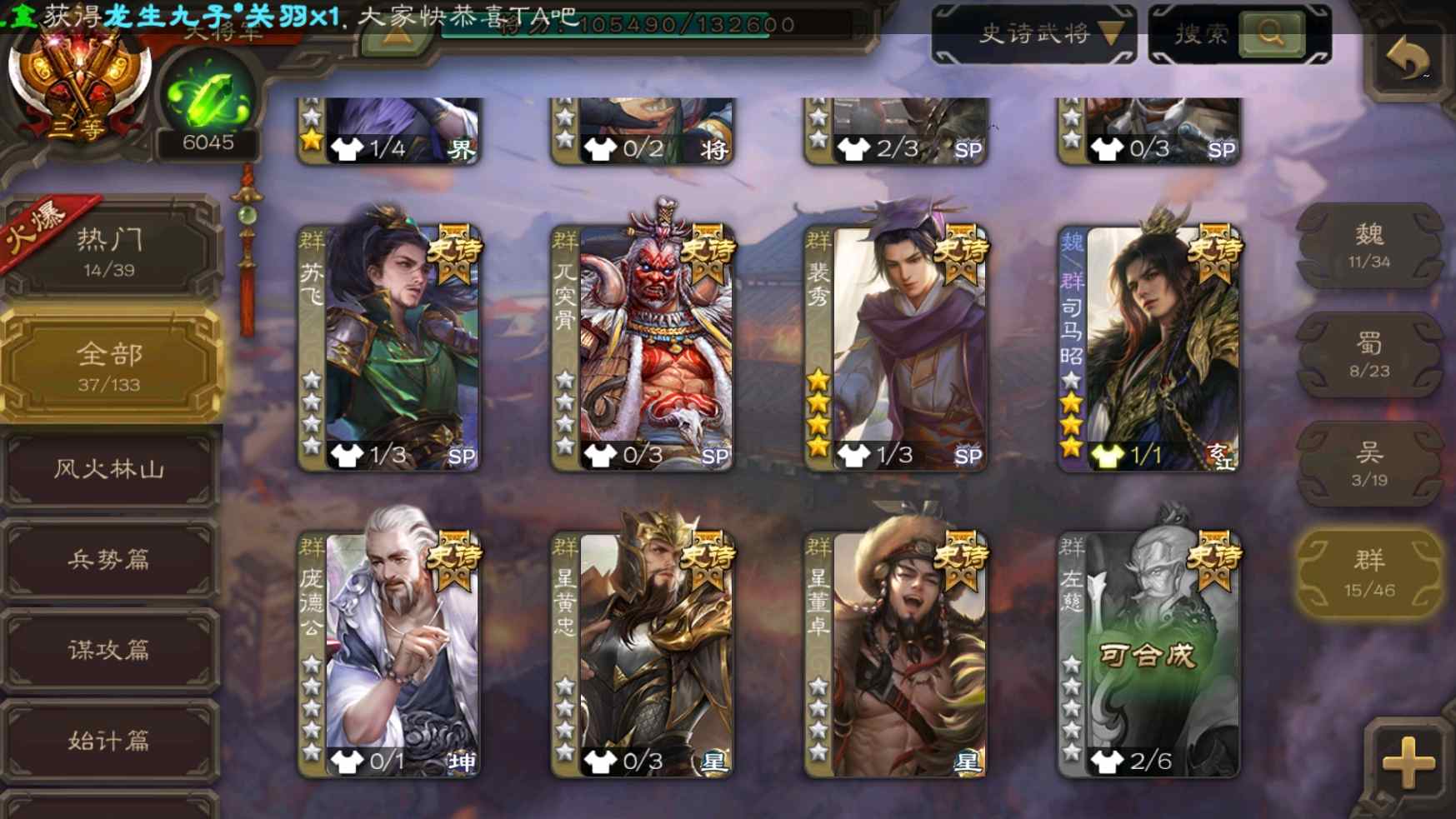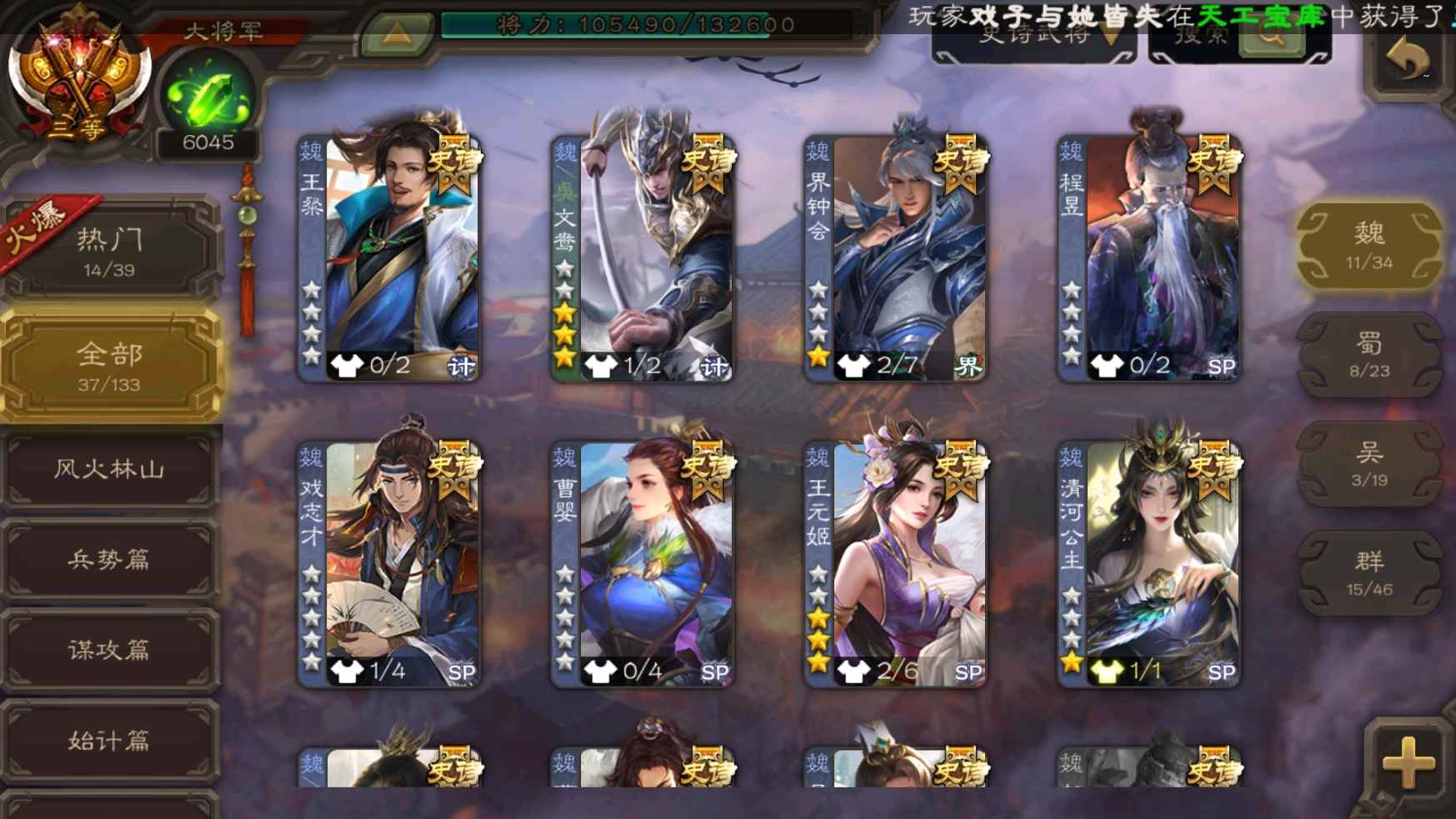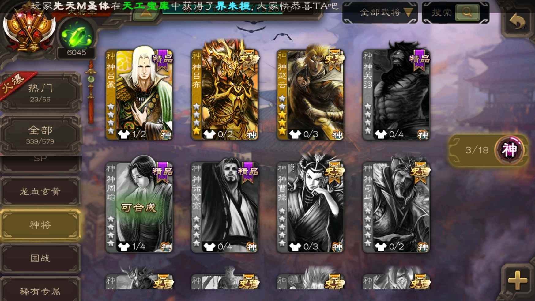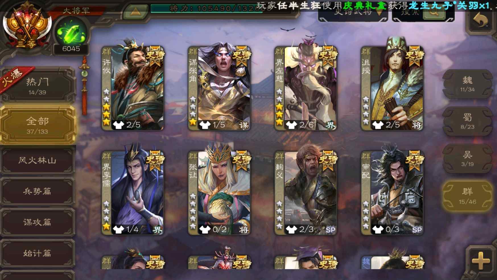 [11304238]v9大将军神吕布大宝界李儒花鬘界钟会等37史诗武将