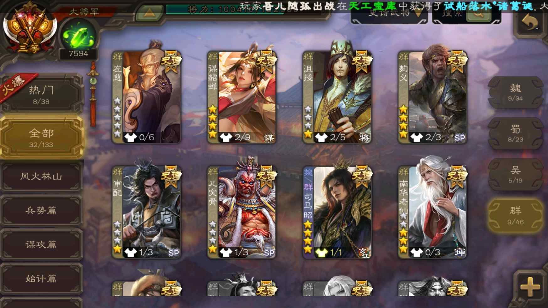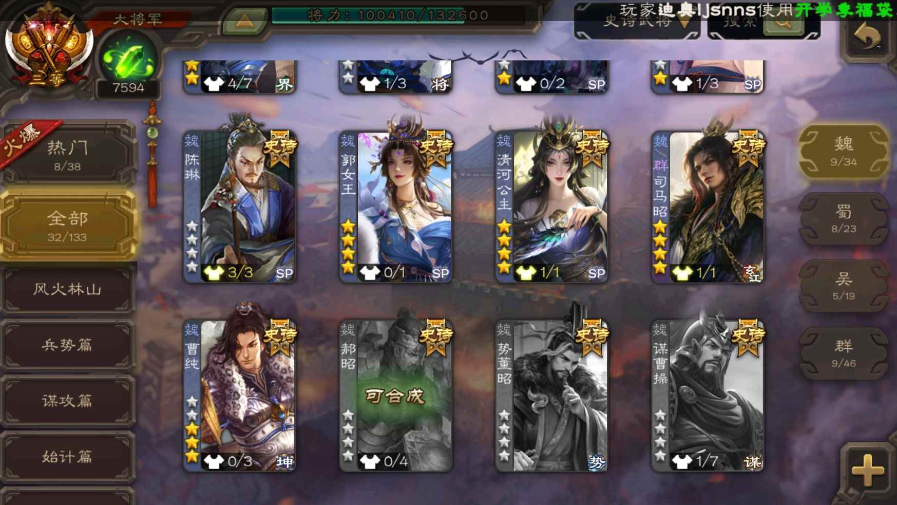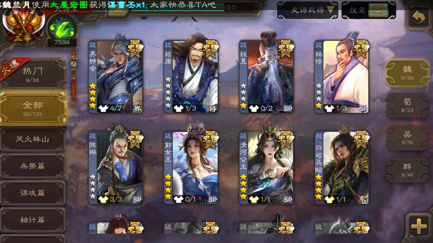 [11307233]v10大将军双形态钟会神吕布老仙大宝张星彩曹纯等32史诗武将