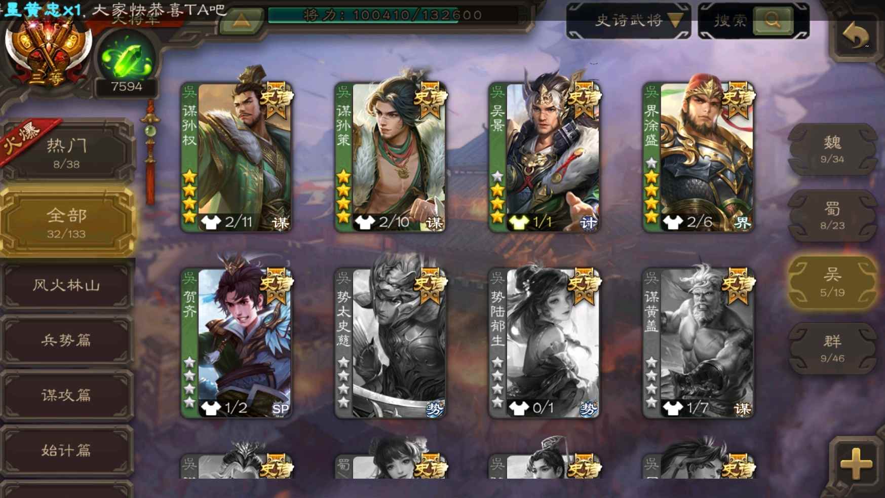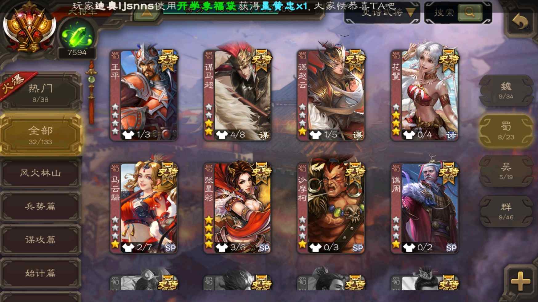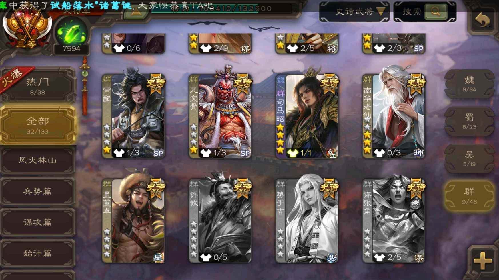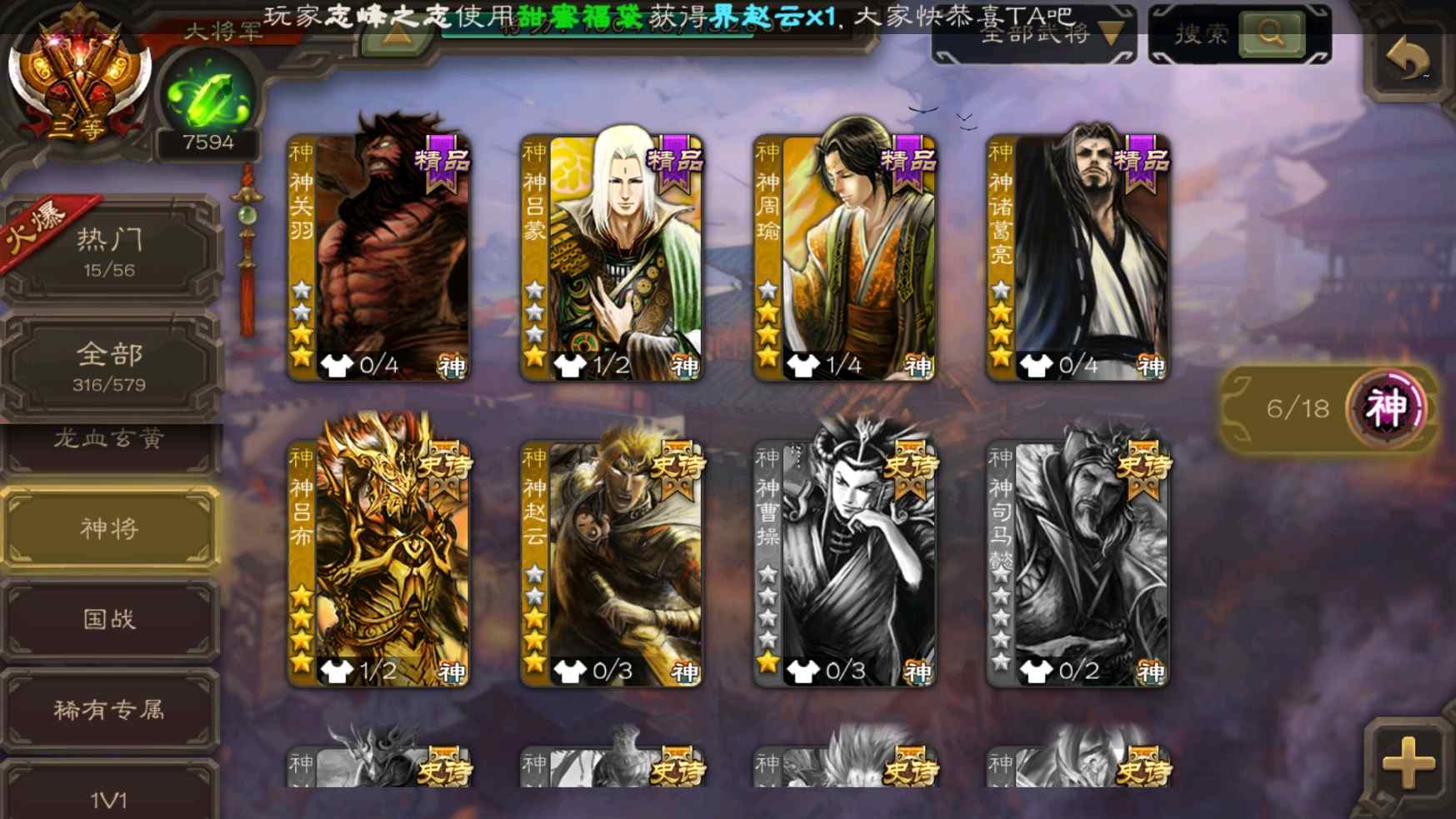 [11307233]v10大将军双形态钟会神吕布老仙大宝张星彩曹纯等32史诗武将