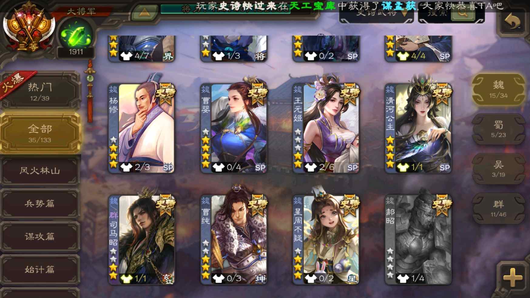 [11309502]6w欢乐豆v9大将军神司马懿文鸯花鬘周处老仙等35史诗武将