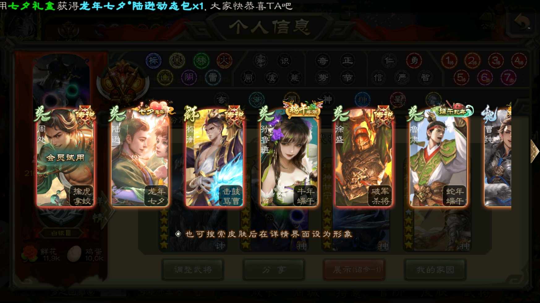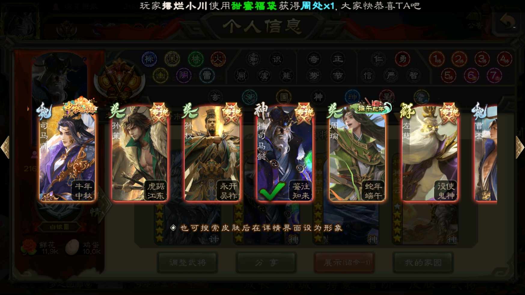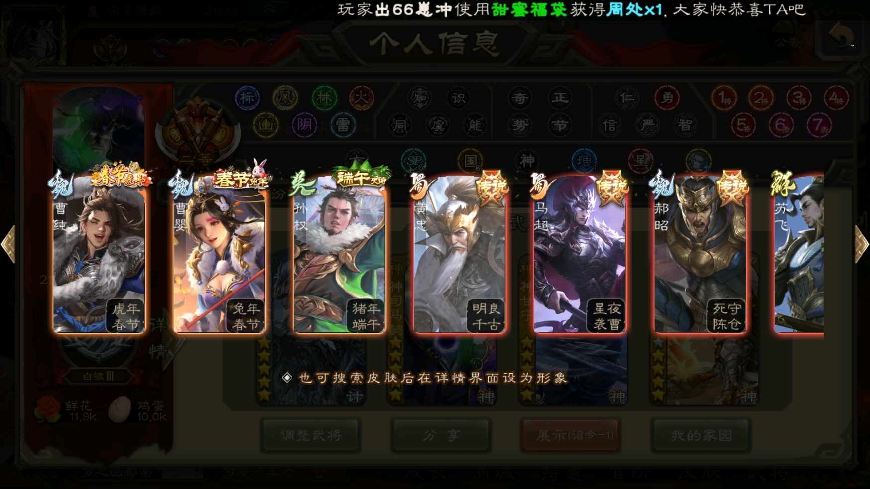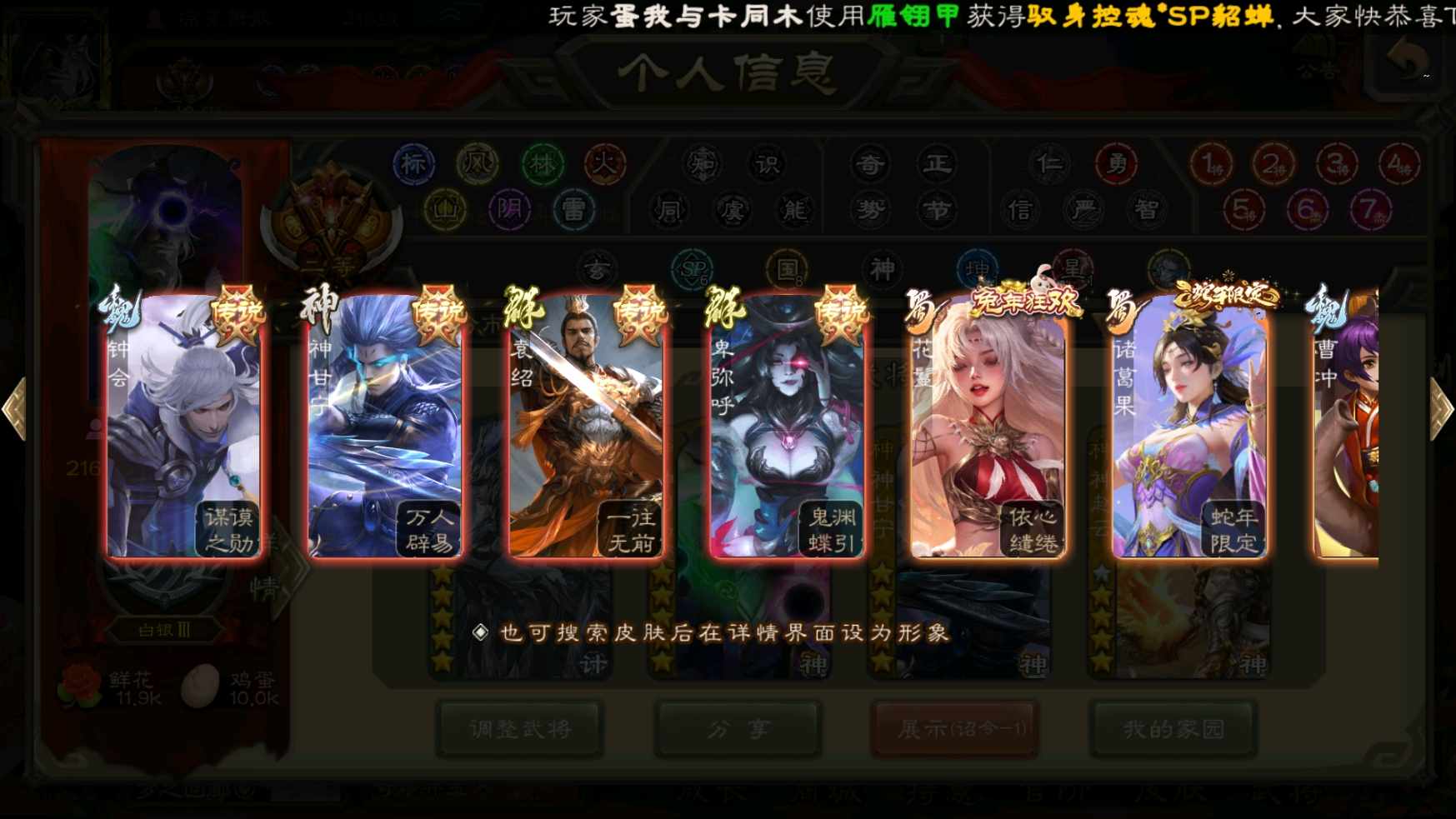 [11332651]7.9w欢乐豆v11大将军神司马懿神甘宁文鸯谋黄忠等63史诗1.2w心愿积分