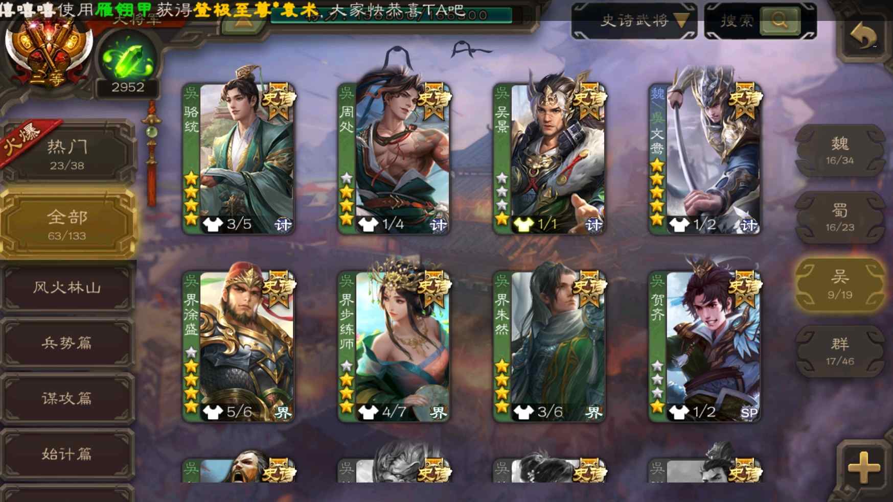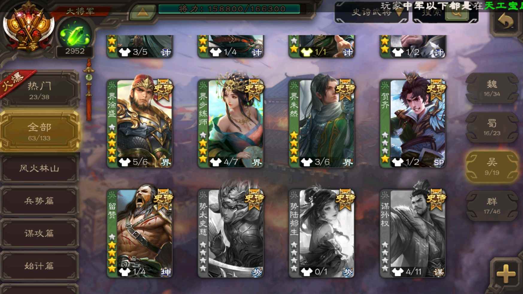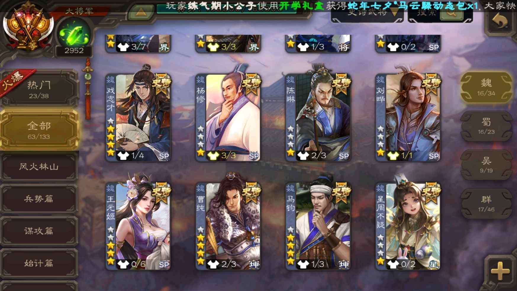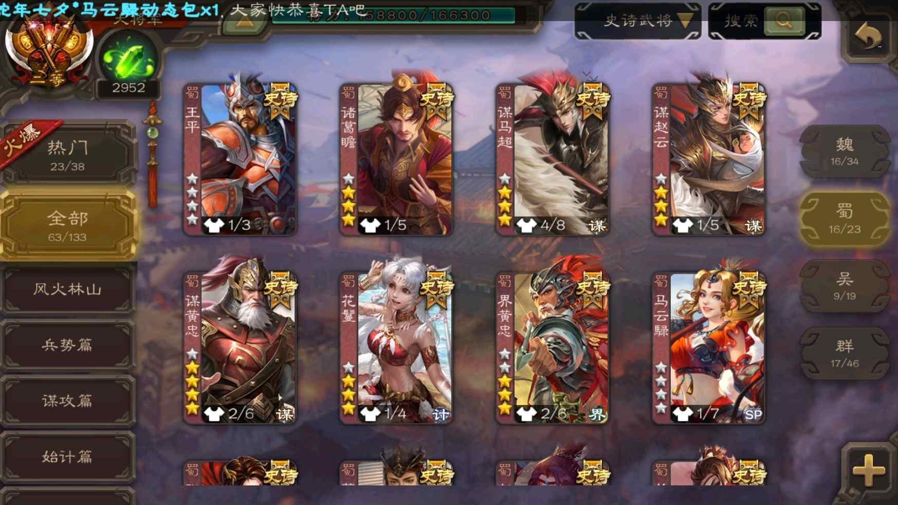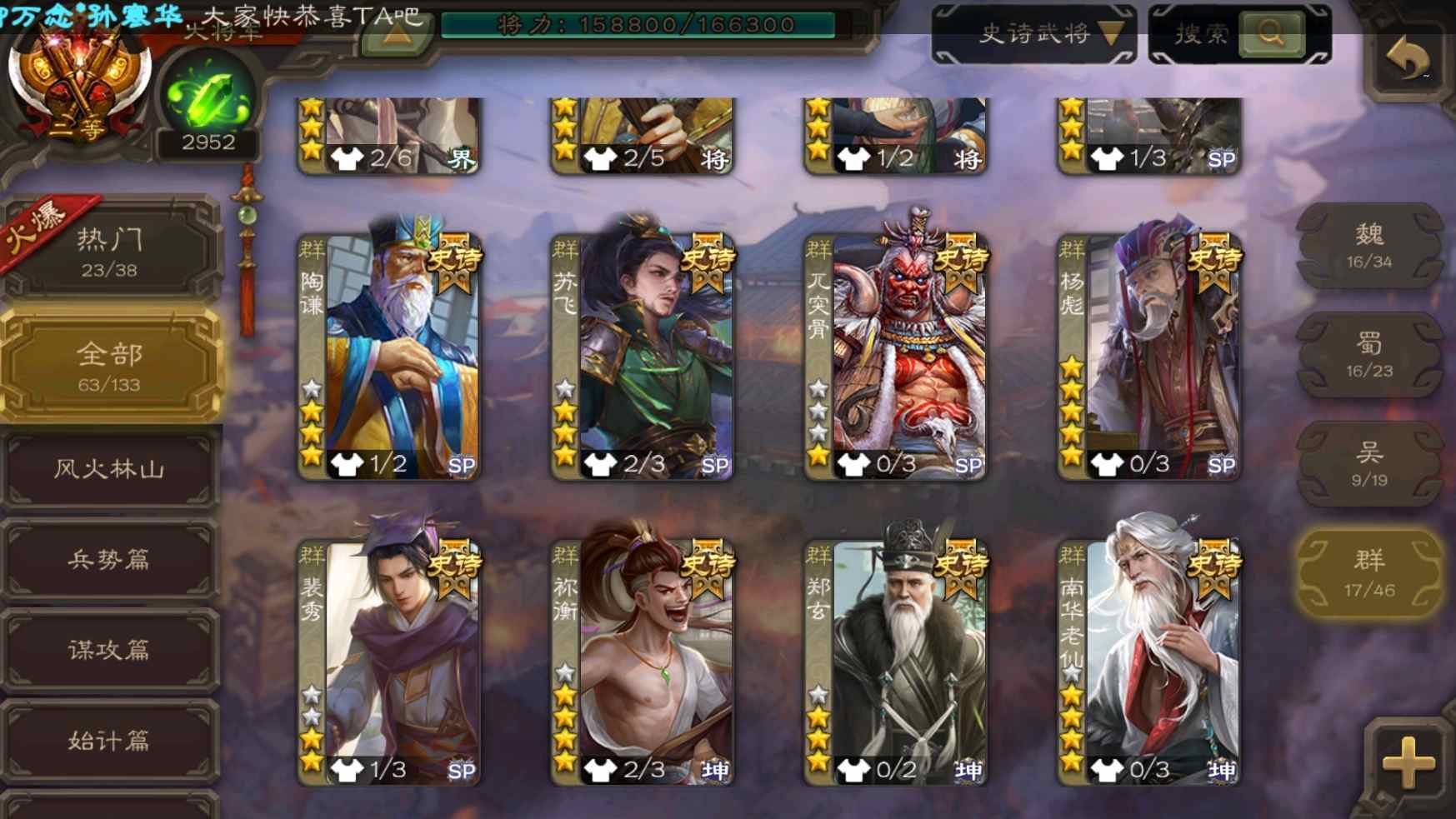 [11332651]7.9w欢乐豆v11大将军神司马懿神甘宁文鸯谋黄忠等63史诗1.2w心愿积分