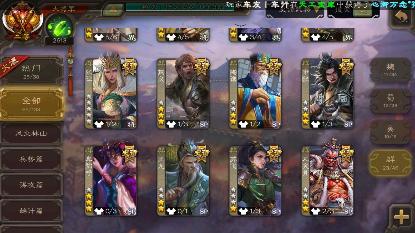 [11334040]v15大将军双形态钟会动态神郭嘉动态神孙策文鸯大宝等66史诗武将