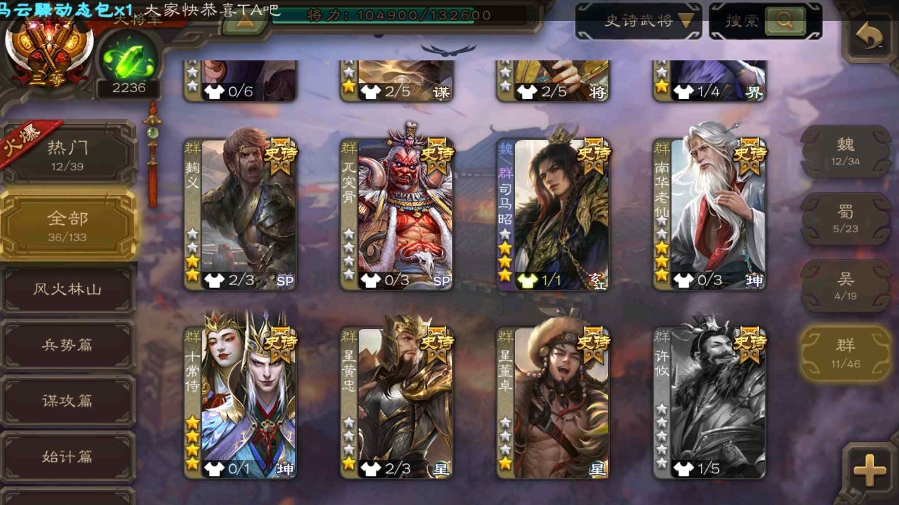 [11335371]v10大将军动态文鸯动态神赵云神郭嘉神张辽曹髦大宝等36史诗武将