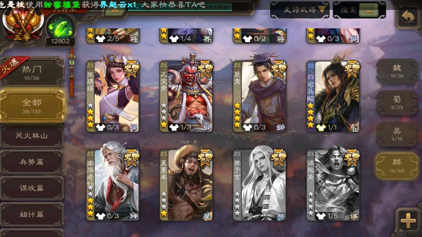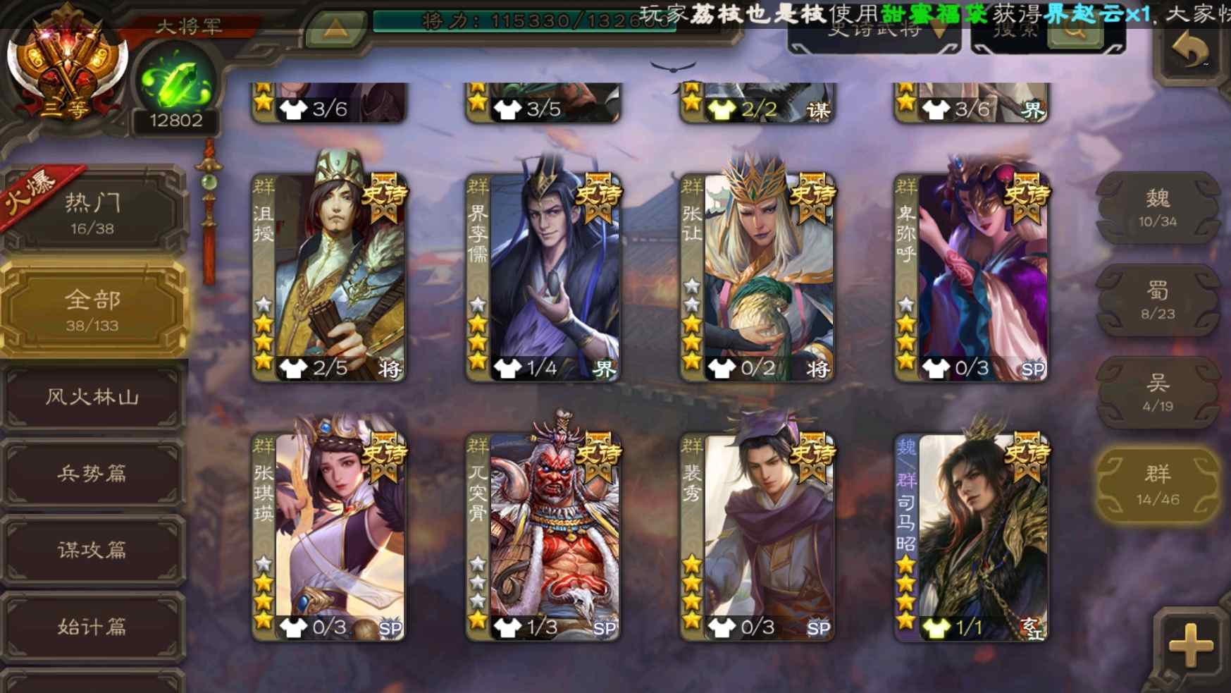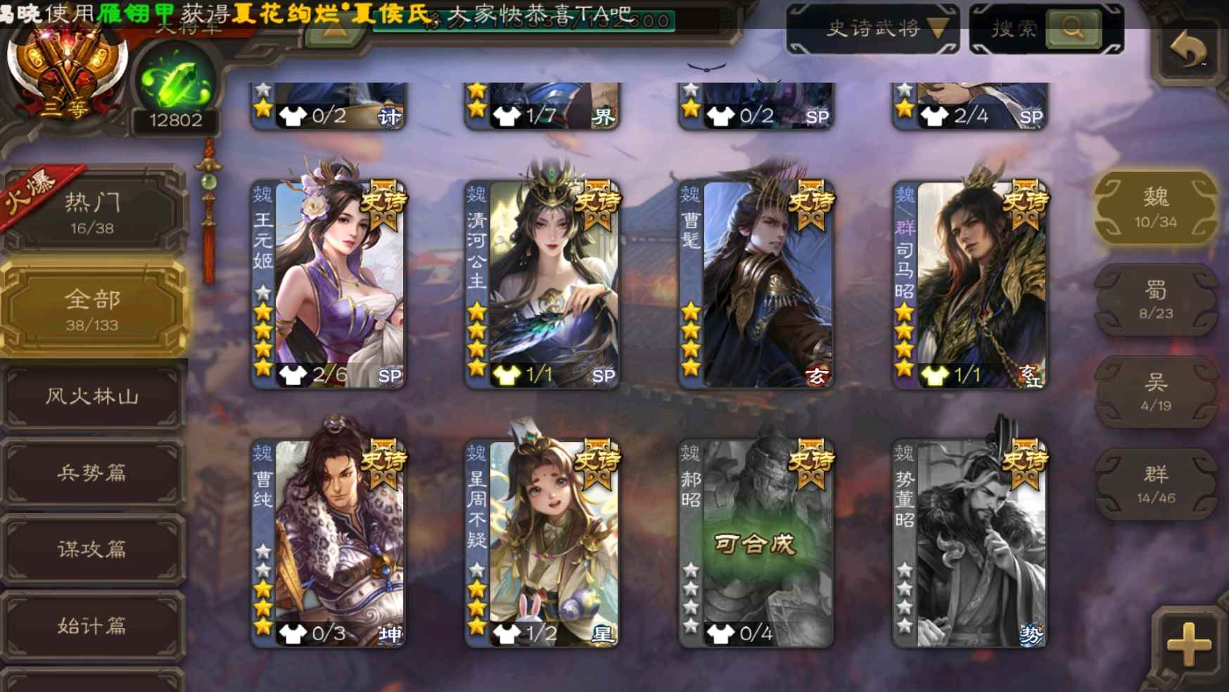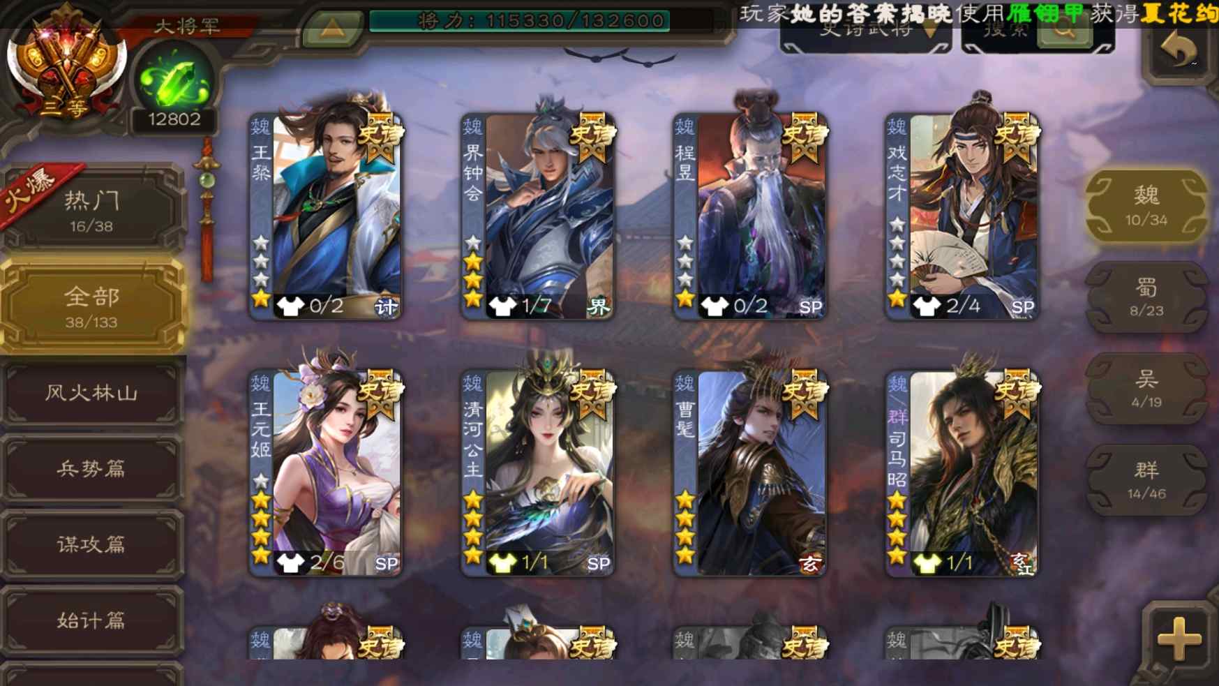 [11335834]v9大将军回廊王元姬动态孙寒华动态神甘宁曹髦司马昭裴秀等38史诗武将