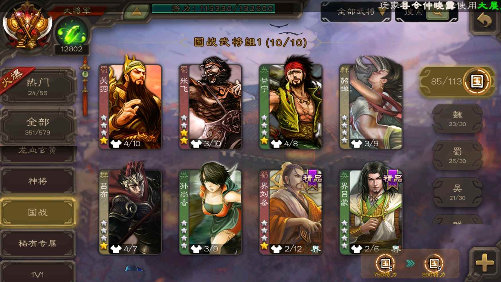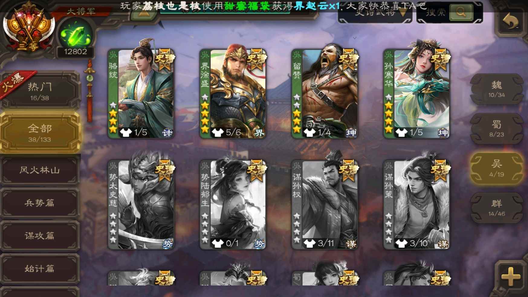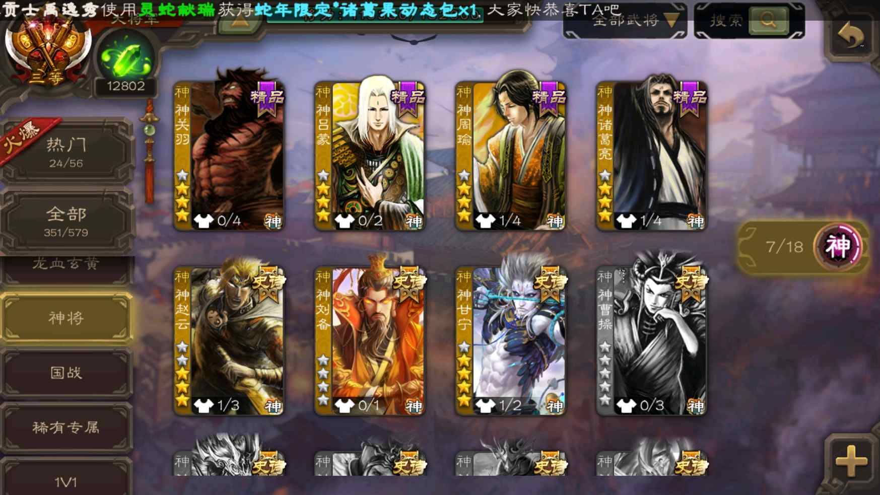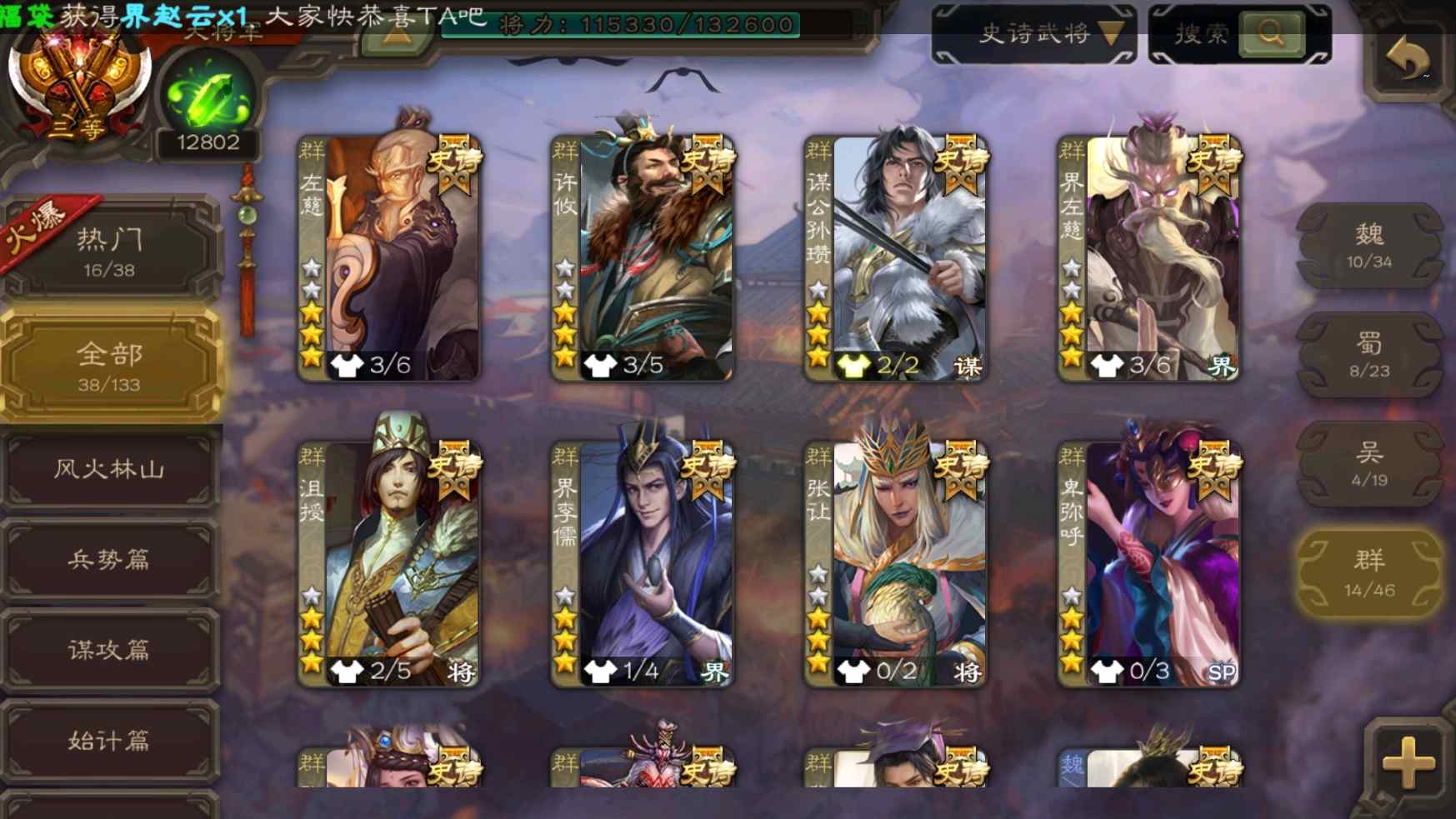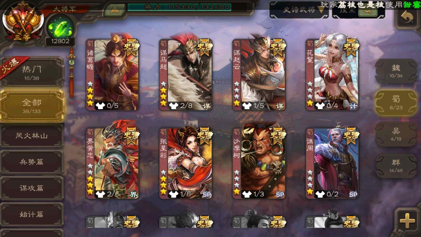 [11335834]v9大将军回廊王元姬动态孙寒华动态神甘宁曹髦司马昭裴秀等38史诗武将
