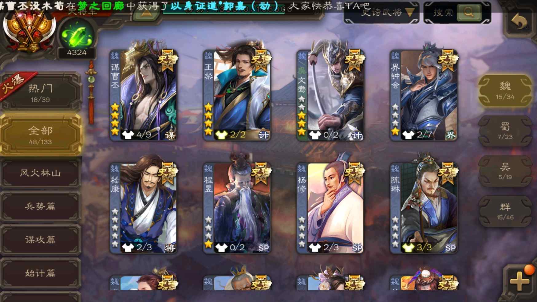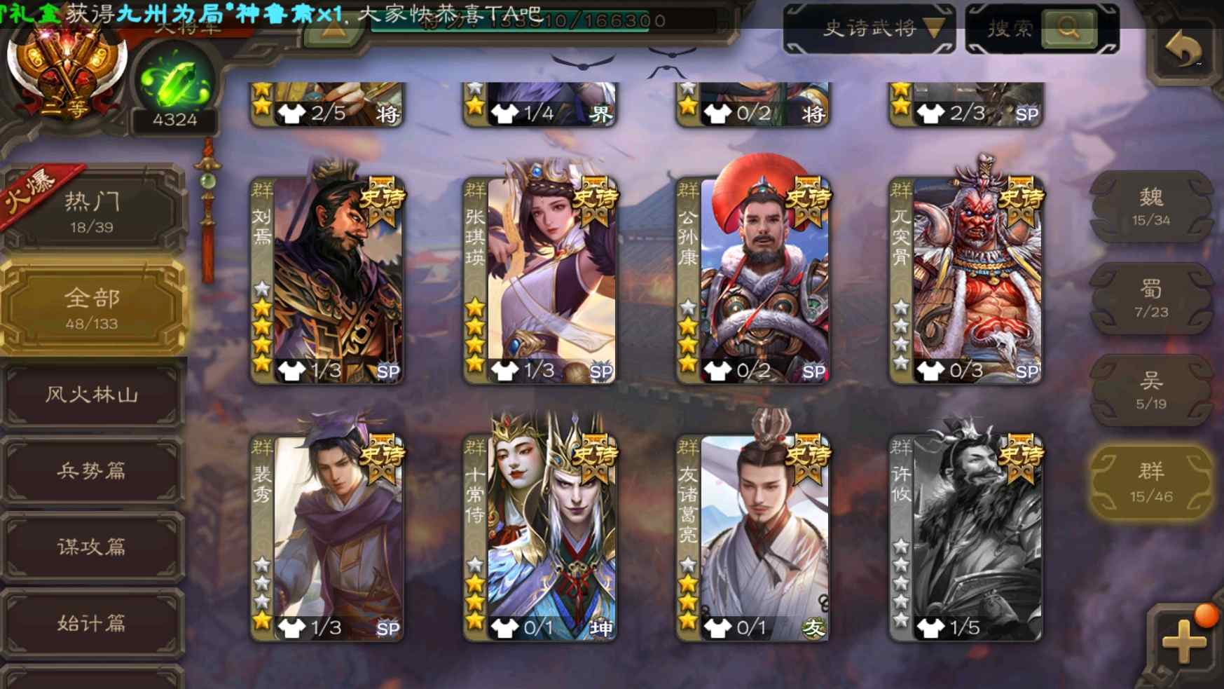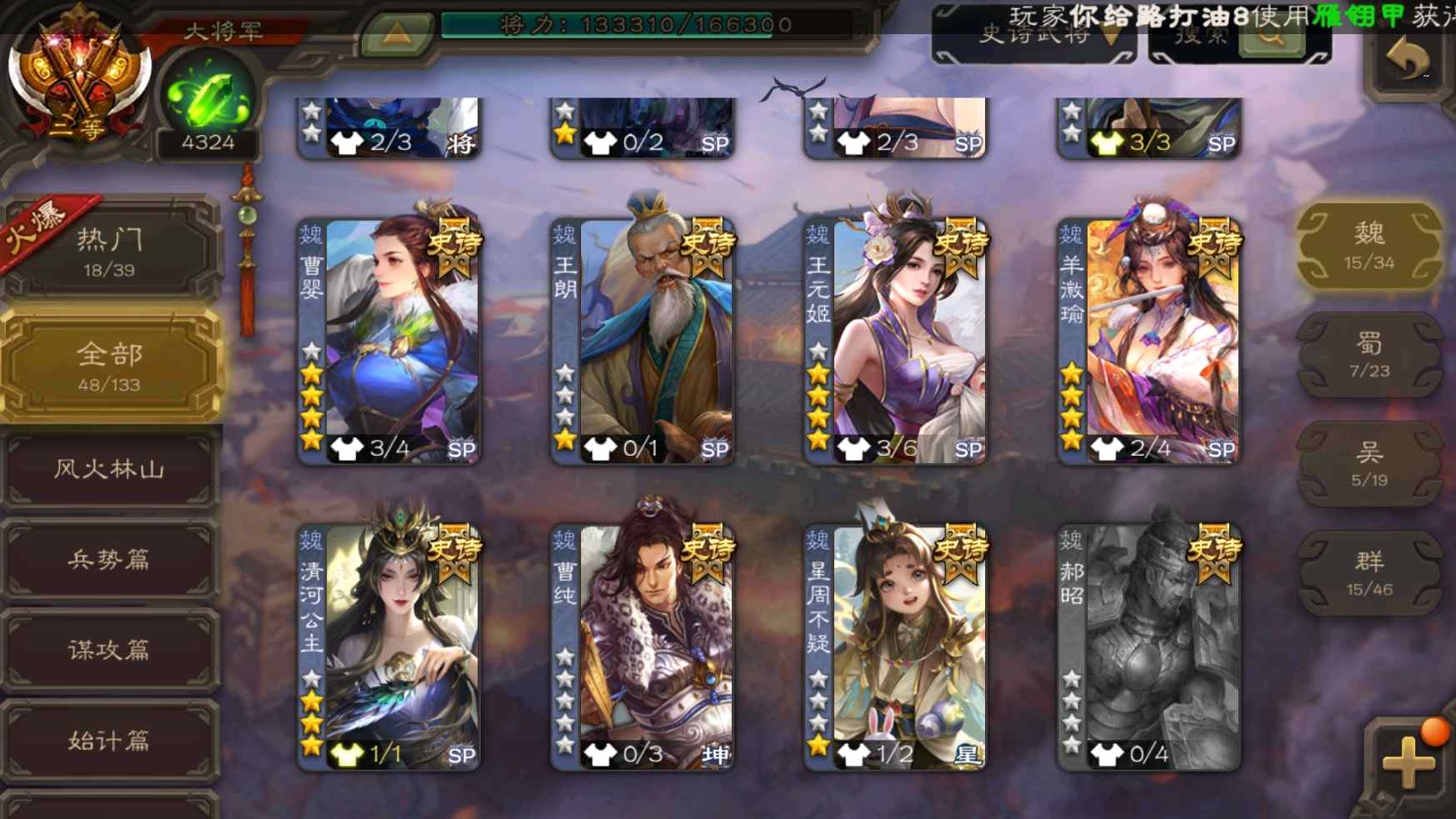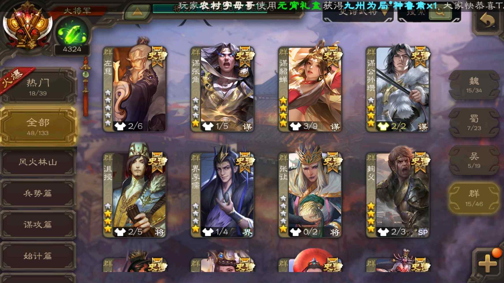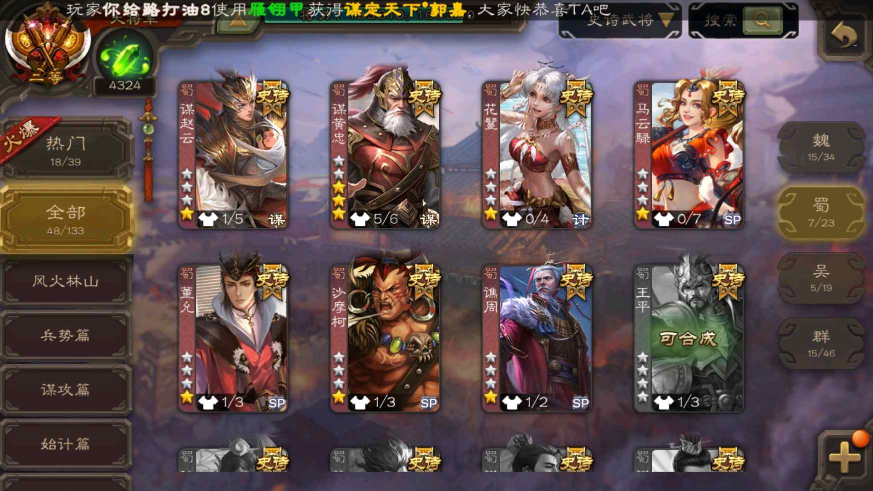 [11587180]v11大将军天子令谋曹丕动态老刘限定孙寒华动态神甘宁回廊谋黄忠友诸葛十常侍神郭嘉等48史诗武将