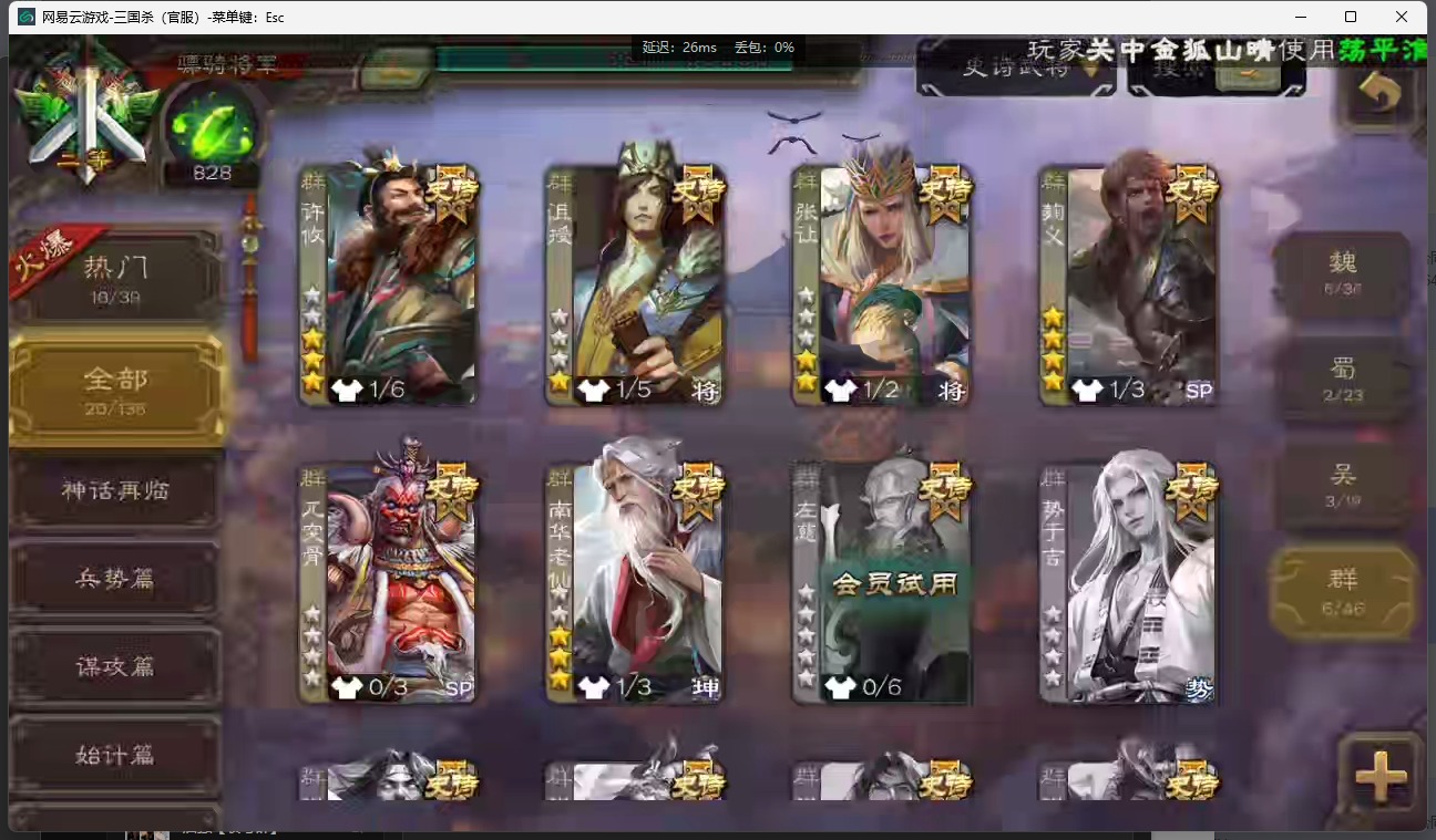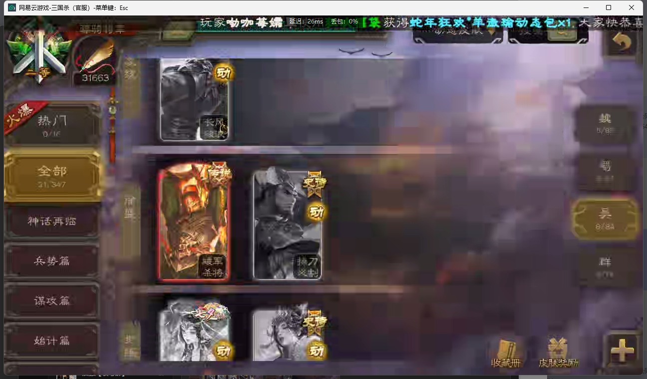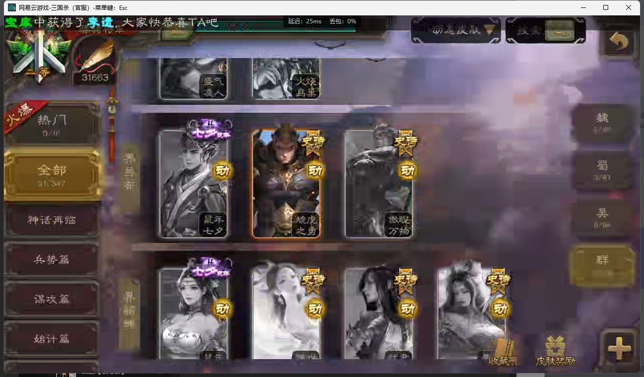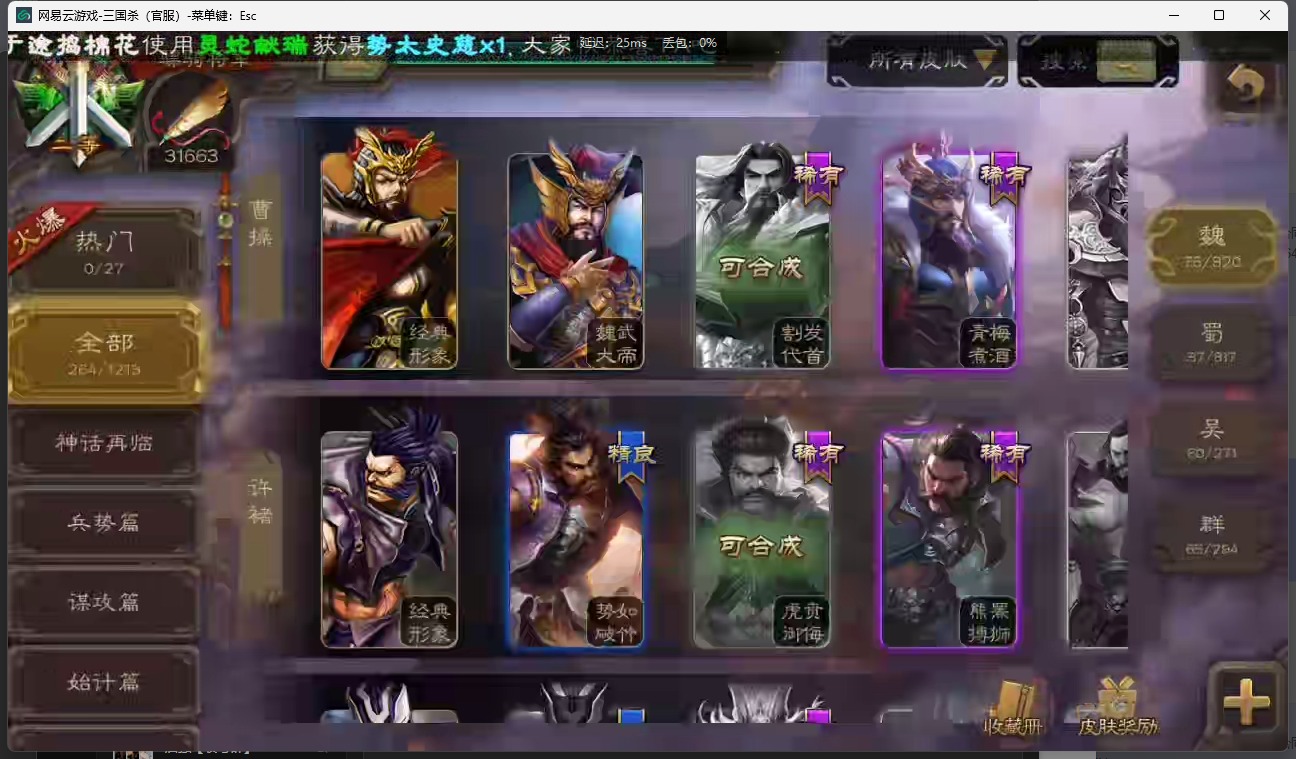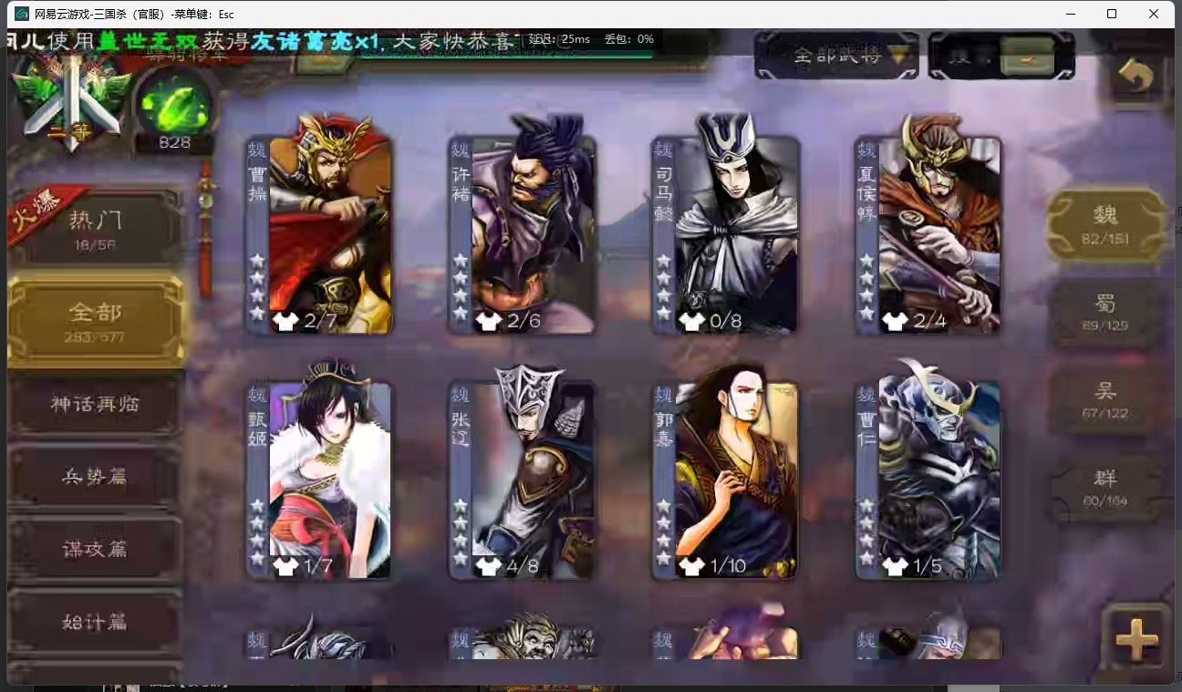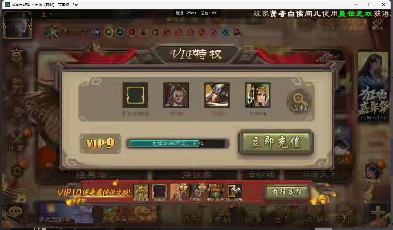 [14233424]vip9 骠骑将军 283武将 21动态皮肤 20史诗武将 1宝珠 【神将】:神吕布神赵云神张辽 【魏国武将】:清河公主曹髦界钟会程昱曹婴曹纯甄姬司马懿许褚夏侯惇郭嘉曹仁曹操张辽 【蜀国武将】:势魏延沙摩柯 【吴国武将】:势陆郁生骆统界徐盛 【群国武将】:兀突骨麹义南华老仙沮授许攸