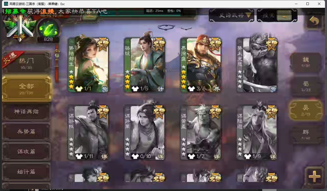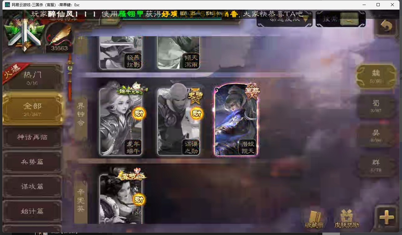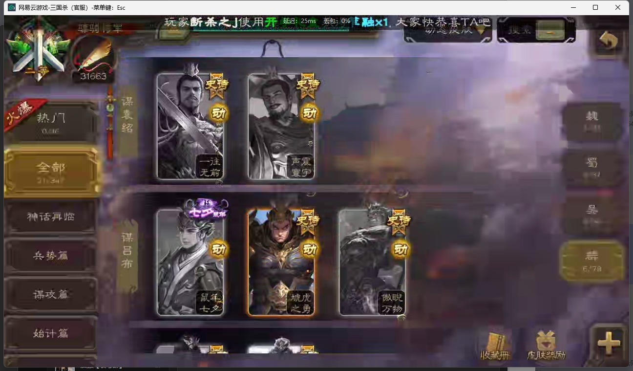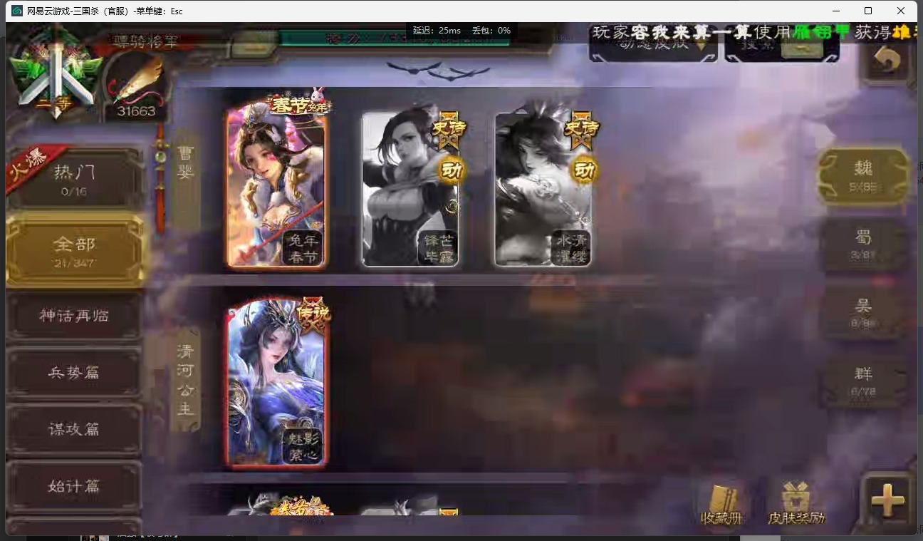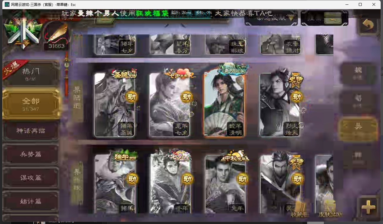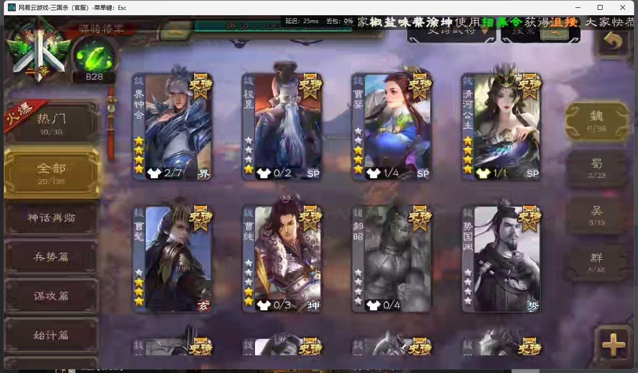 [14233424]vip9 骠骑将军 283武将 21动态皮肤 20史诗武将 1宝珠 【神将】:神吕布神赵云神张辽 【魏国武将】:清河公主曹髦界钟会程昱曹婴曹纯甄姬司马懿许褚夏侯惇郭嘉曹仁曹操张辽 【蜀国武将】:势魏延沙摩柯 【吴国武将】:势陆郁生骆统界徐盛 【群国武将】:兀突骨麹义南华老仙沮授许攸