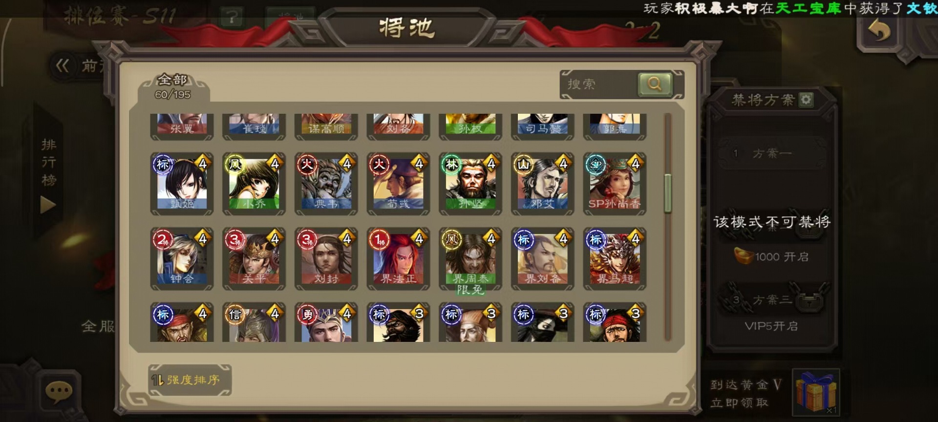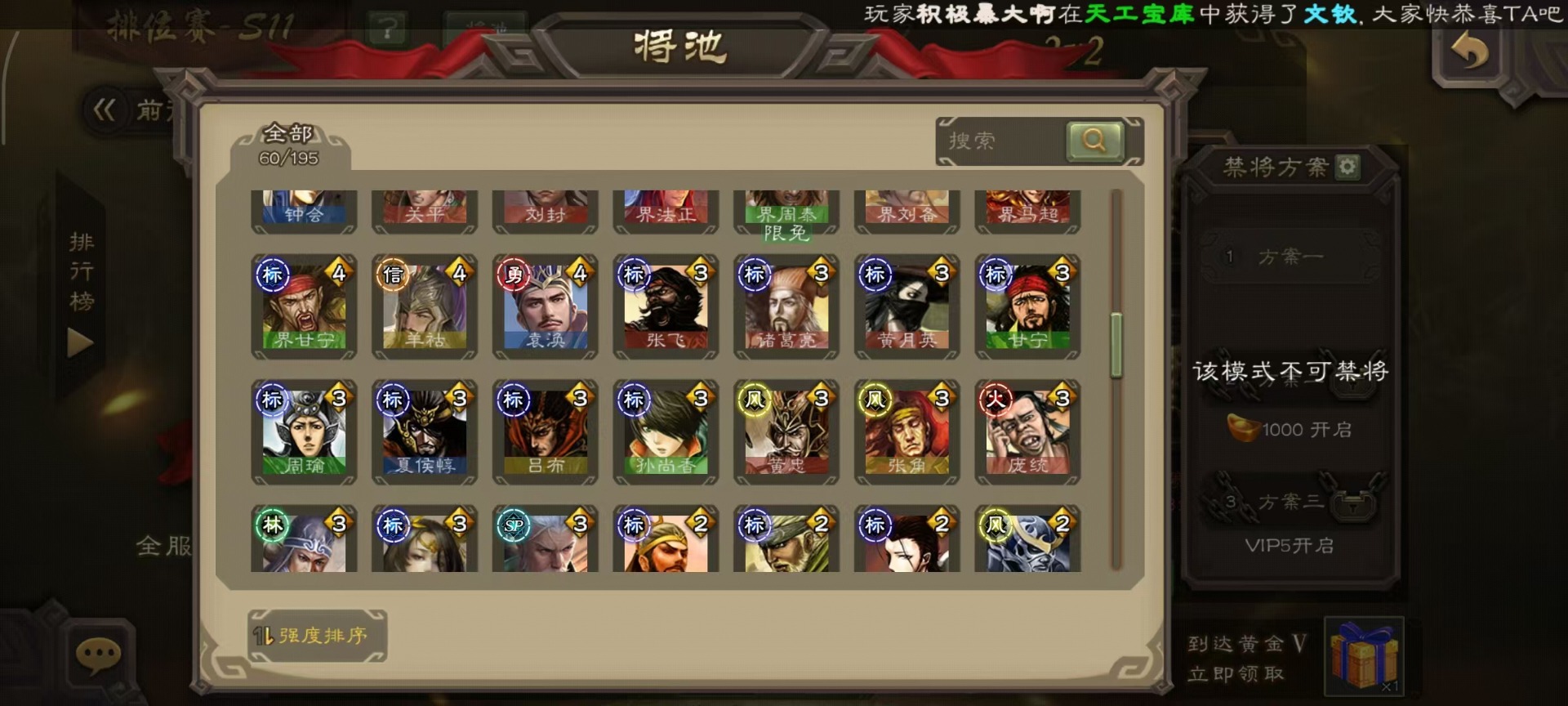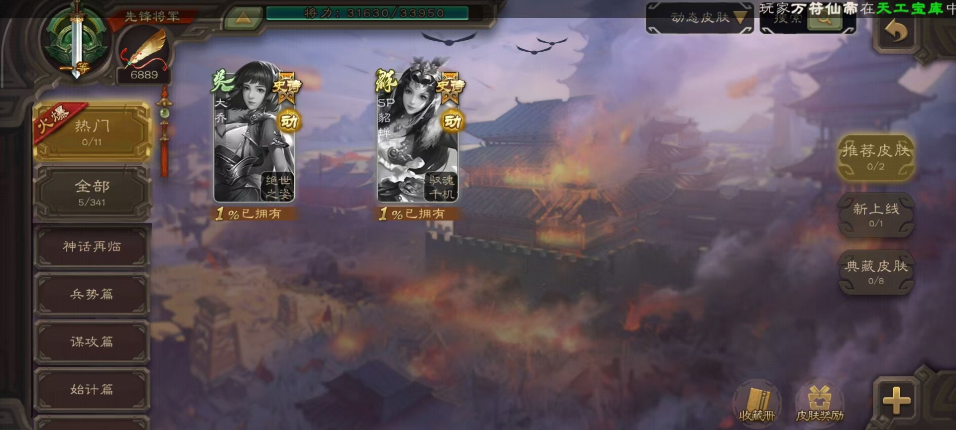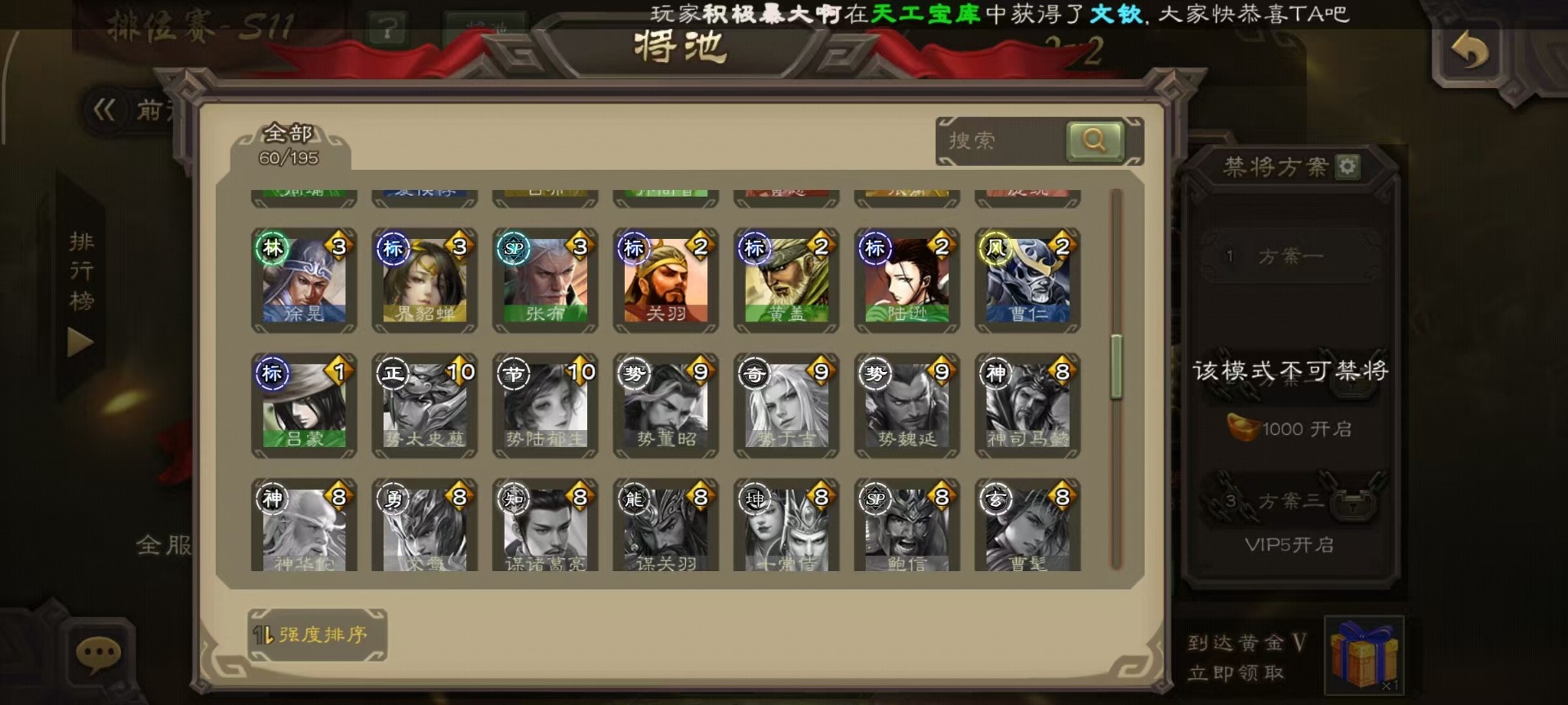 [14233984]vip3 先锋将军 163武将 5动态皮肤 6史诗武将 【神将】:神吕布神孙策 【蜀国武将】:沙摩柯花鬘 【吴国武将】:界徐盛 【群国武将】:麹义
