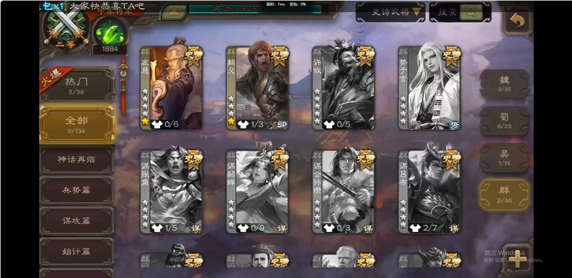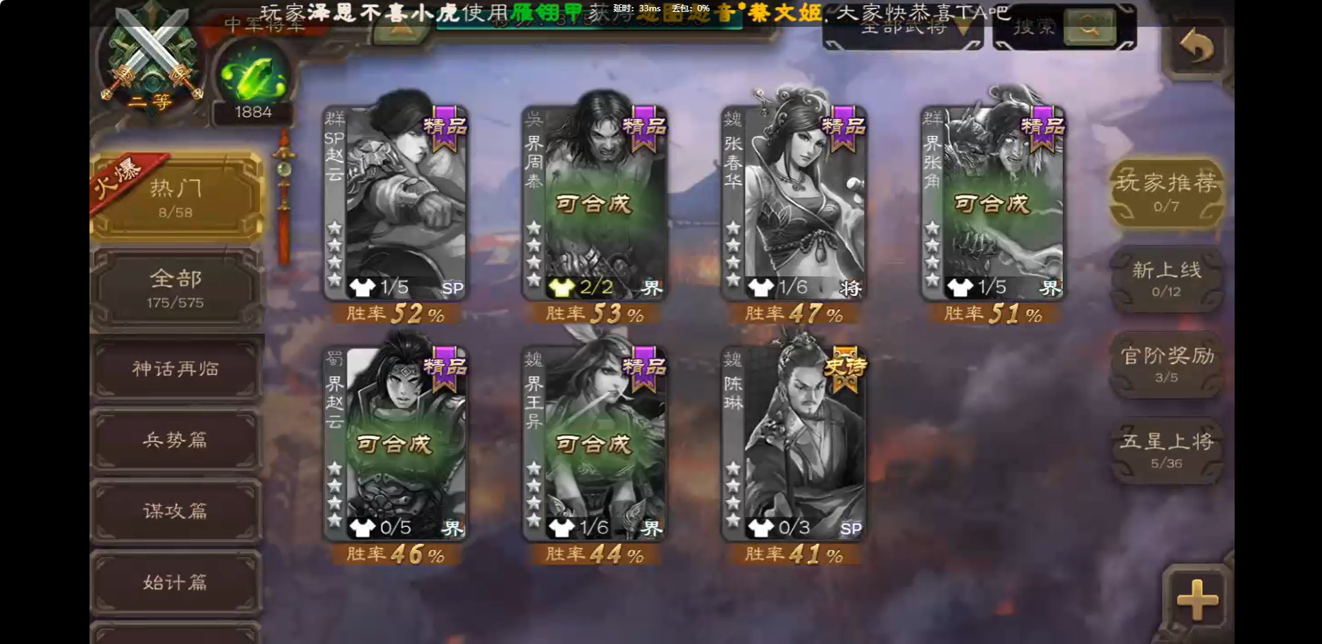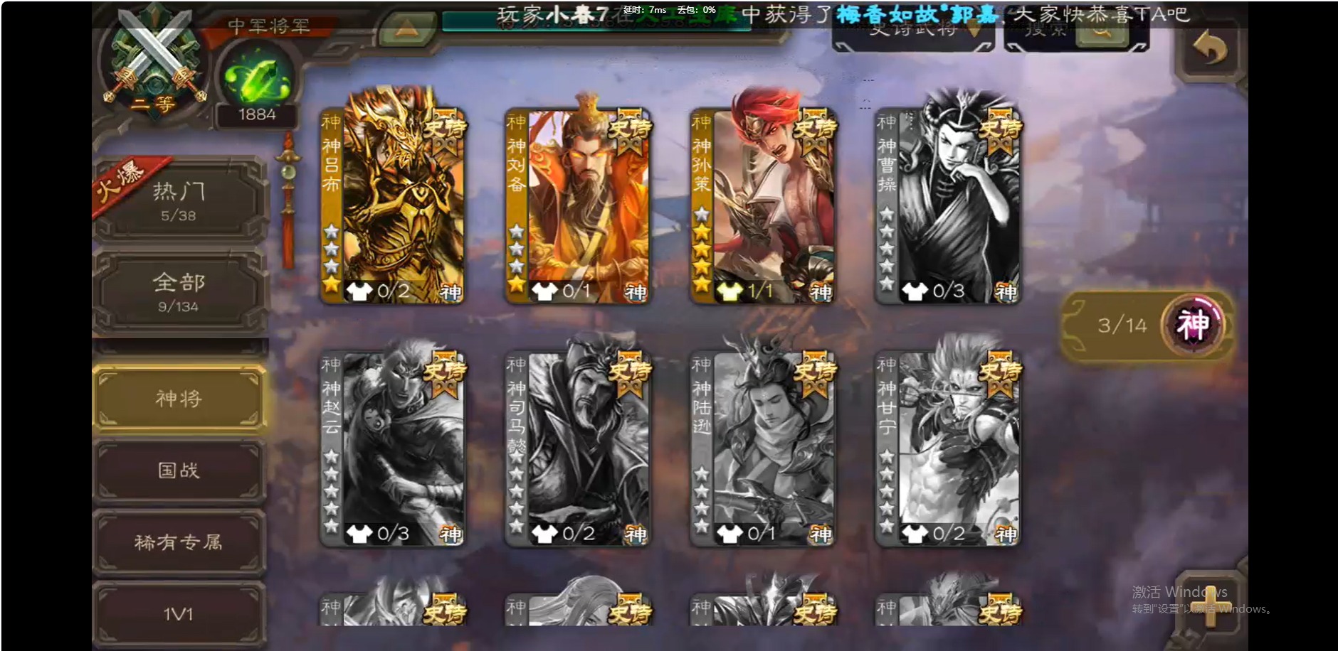 [14234163]vip5 中军将军 175武将 9史诗武将 【神将】:神吕布神刘备神孙策 【蜀国武将】:sp孙尚香 【吴国武将】:界徐盛 【群国武将】:麹义1