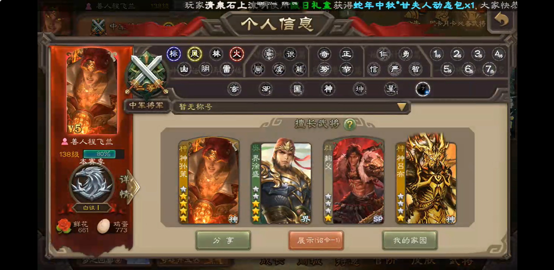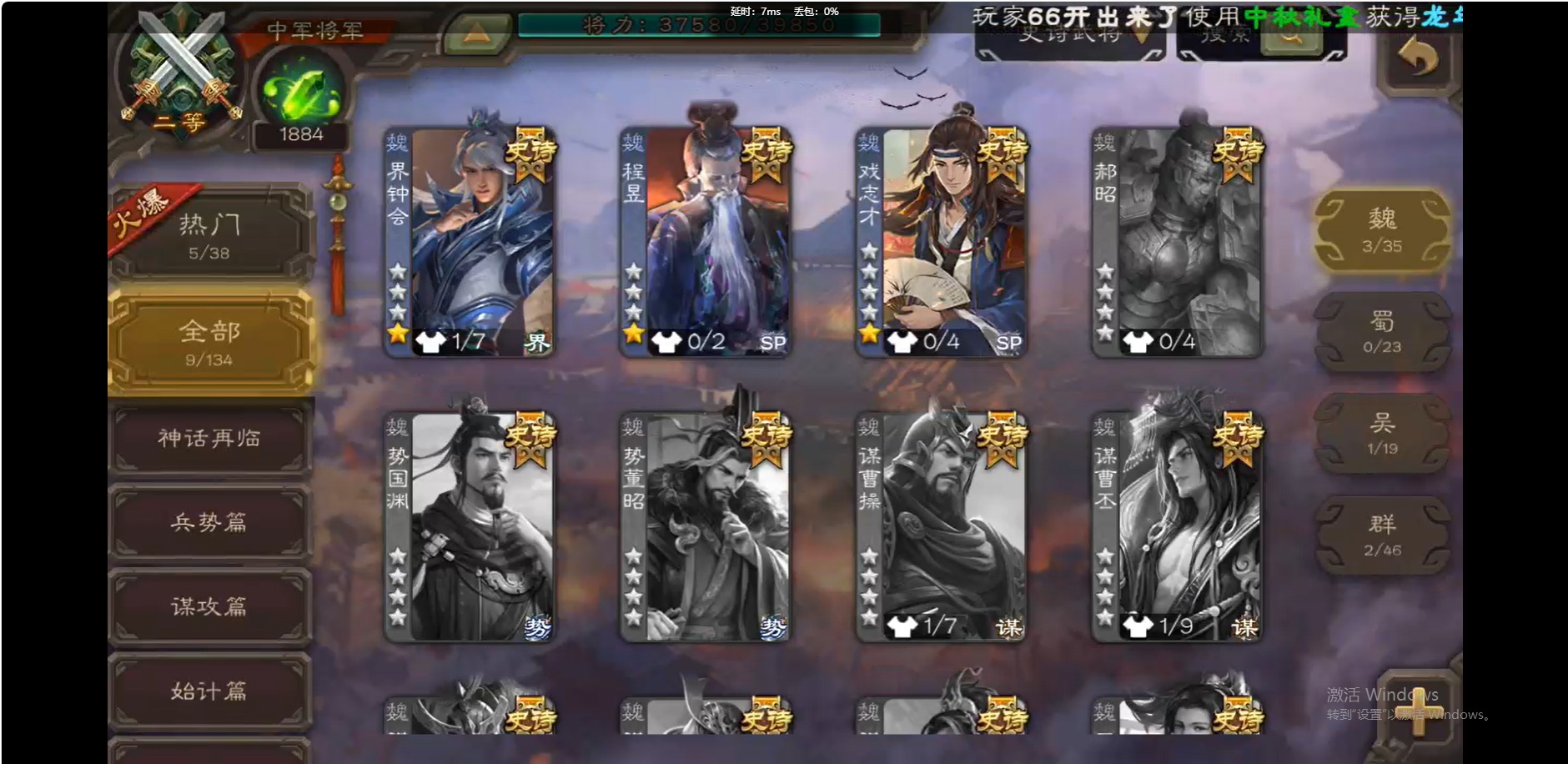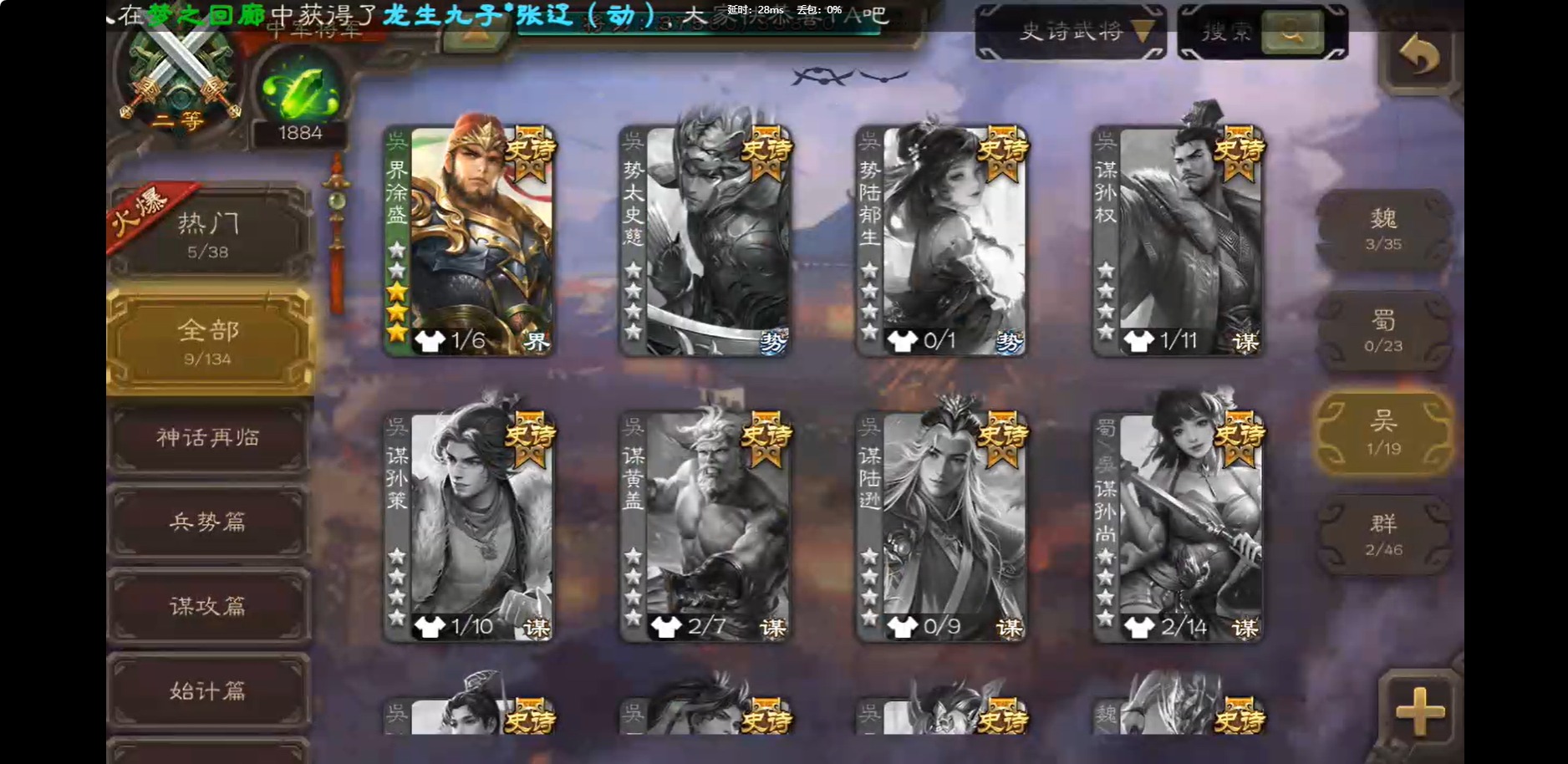 [14234163]vip5 中军将军 175武将 9史诗武将 【神将】:神吕布神刘备神孙策 【蜀国武将】:sp孙尚香 【吴国武将】:界徐盛 【群国武将】:麹义1