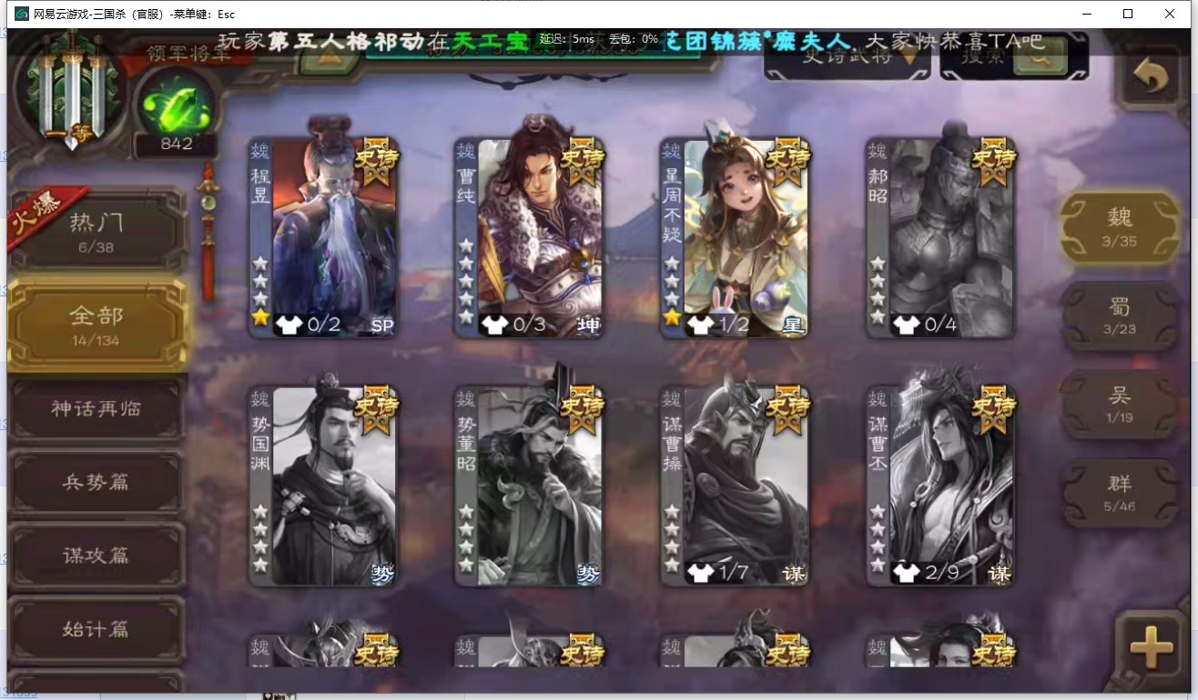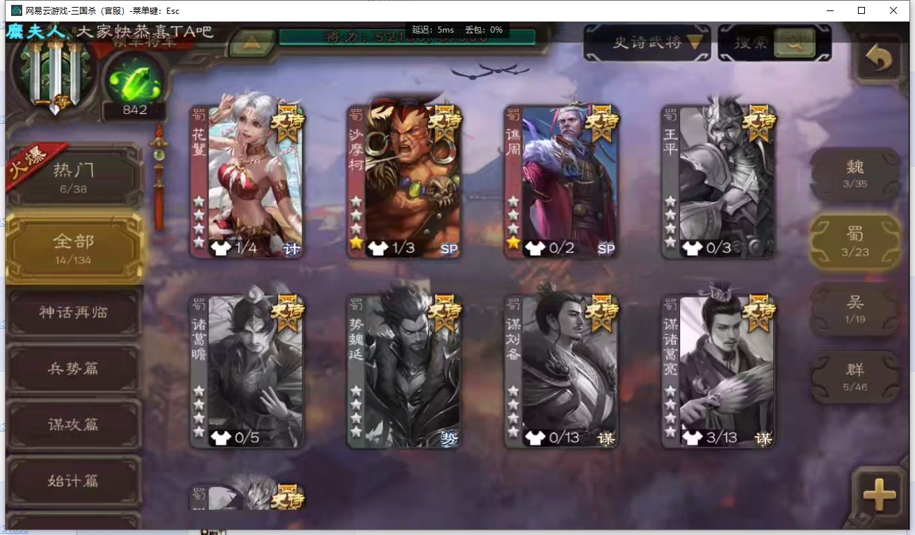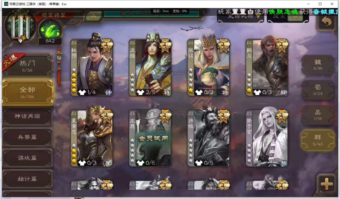 [14234175]vip9 领军将军 229武将 6动态皮肤 14史诗武将 【神将】:神司马懿神陆逊 【魏国武将】:星周不疑程昱曹纯甄姬司马懿许褚夏侯惇郭嘉曹仁曹操张辽 【蜀国武将】:沙摩柯谯周花鬘诸葛果 【吴国武将】:界徐盛 【群国武将】:张让星黄忠麹义沮授杜预sp赵云1