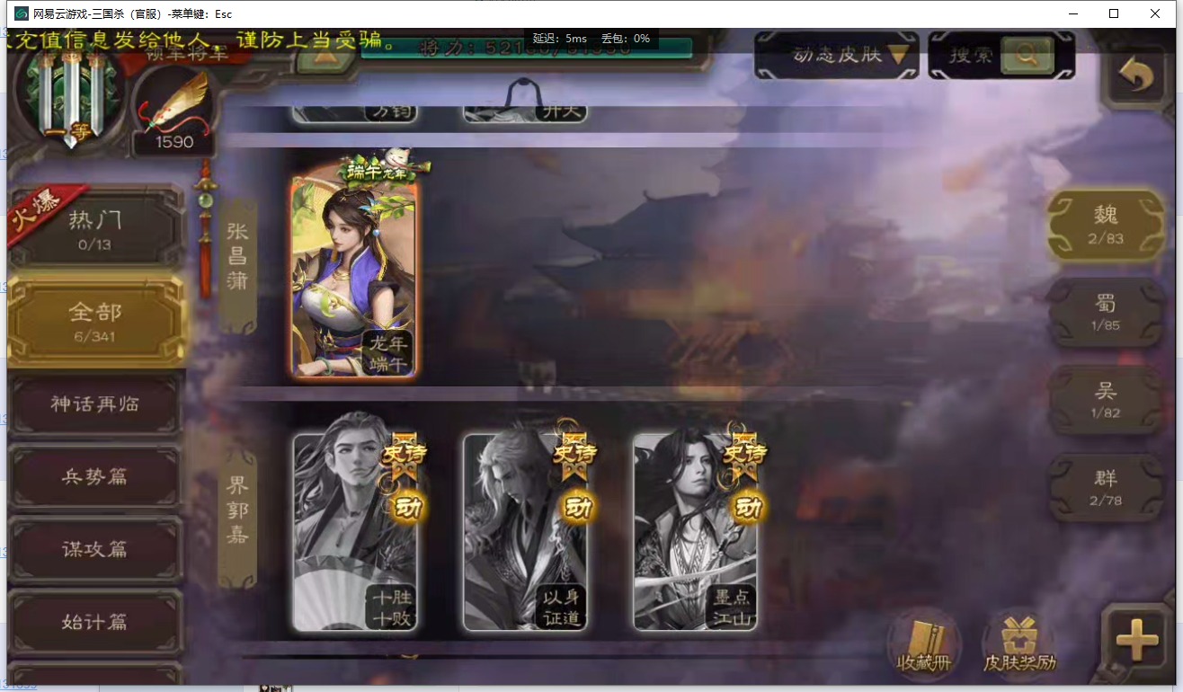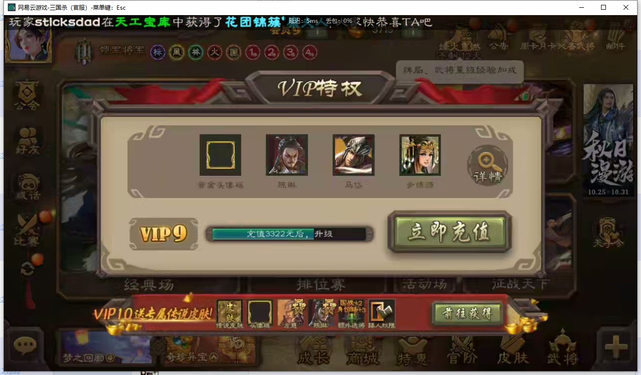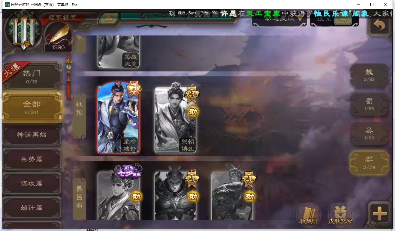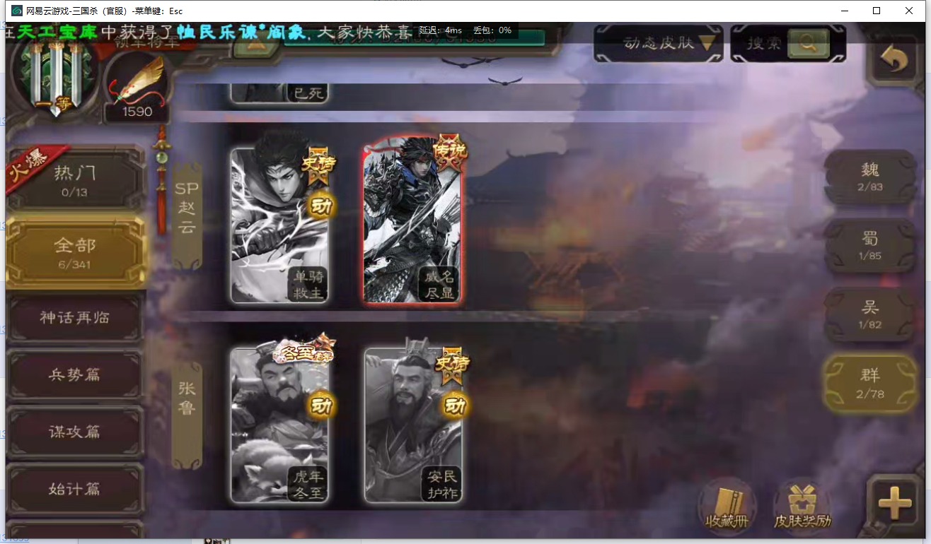 [14234175]vip9 领军将军 229武将 6动态皮肤 14史诗武将 【神将】:神司马懿神陆逊 【魏国武将】:星周不疑程昱曹纯甄姬司马懿许褚夏侯惇郭嘉曹仁曹操张辽 【蜀国武将】:沙摩柯谯周花鬘诸葛果 【吴国武将】:界徐盛 【群国武将】:张让星黄忠麹义沮授杜预sp赵云1