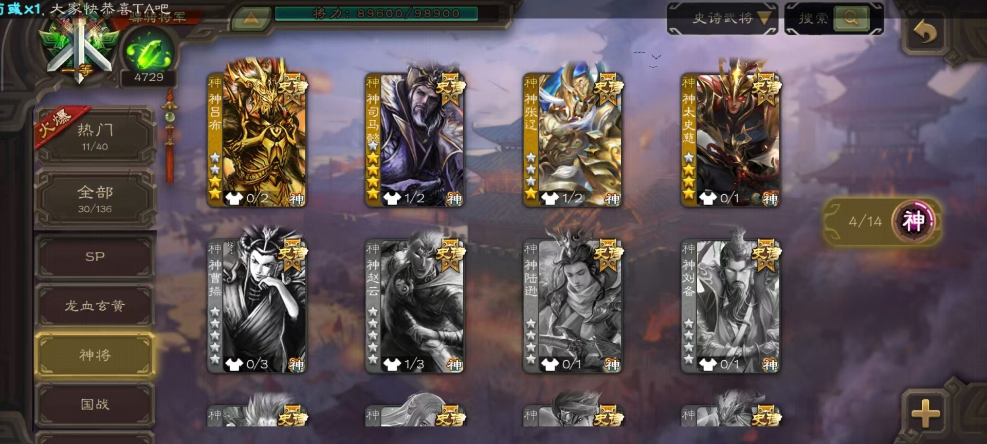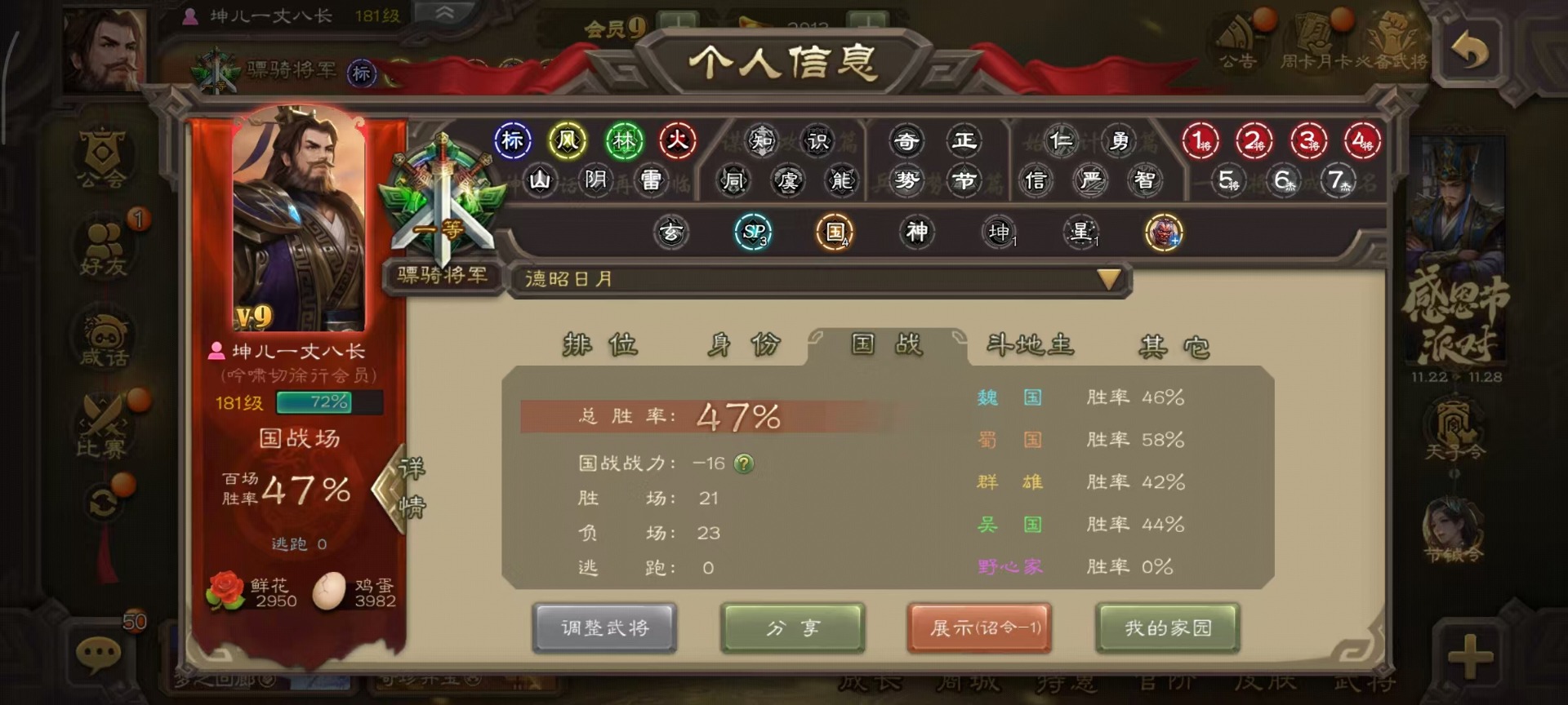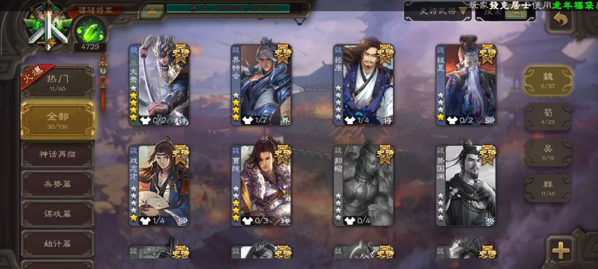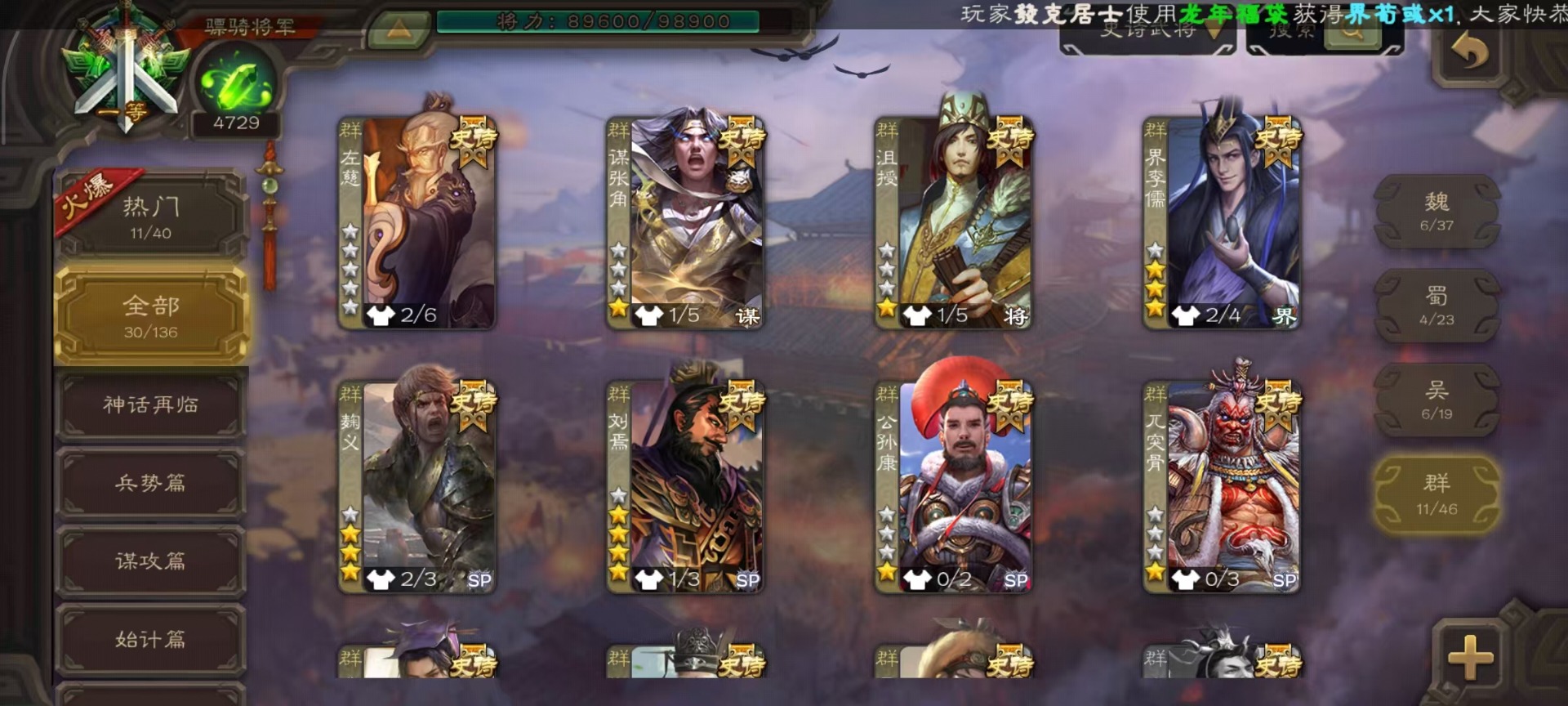 [14234535]vip9 骠骑将军 336武将 19动态皮肤 30史诗武将 5宝珠 【神将】:神吕布神司马懿神张辽神太史慈 【魏国武将】:文鸯界钟会嵇康程昱曹纯戏志才 【蜀国武将】:周群沙摩柯花鬘关索 【吴国武将】:势陆郁生谋陆逊文鸯吴景界徐盛贺齐 【群国武将】:左慈兀突骨麹义刘焉沮授界李儒公孙康谋张角