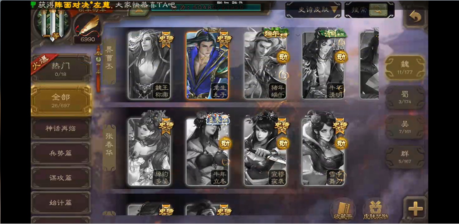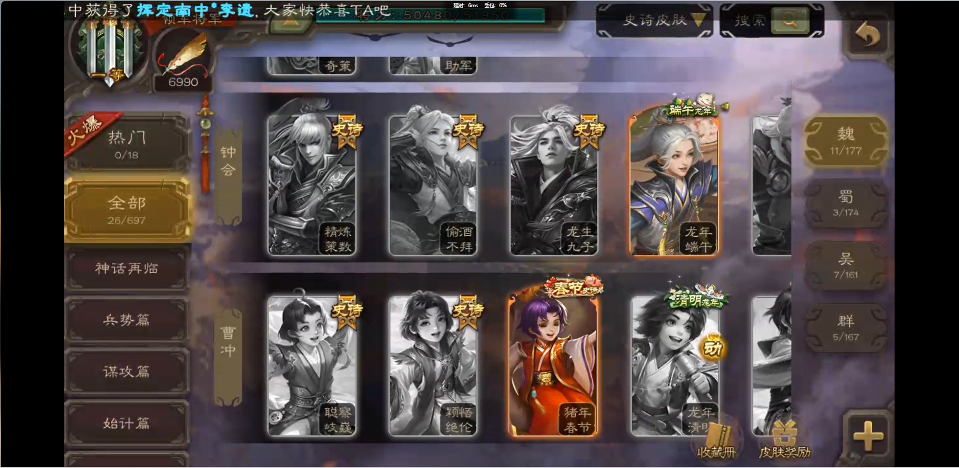 [14235677]vip1 领军将军 214武将 10动态皮肤 12史诗武将 38宝珠 【魏国武将】:界钟会程昱曹纯戏志才甄姬司马懿许褚夏侯惇郭嘉曹仁曹操张辽 【蜀国武将】:花鬘董允 【群国武将】:麹义刘焉沮授界李儒