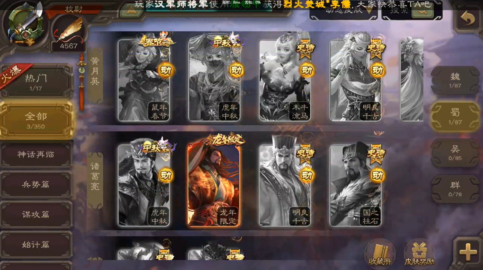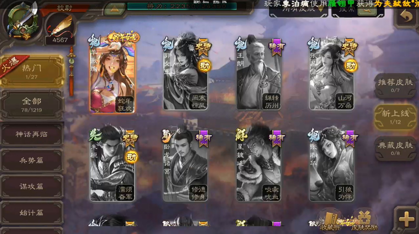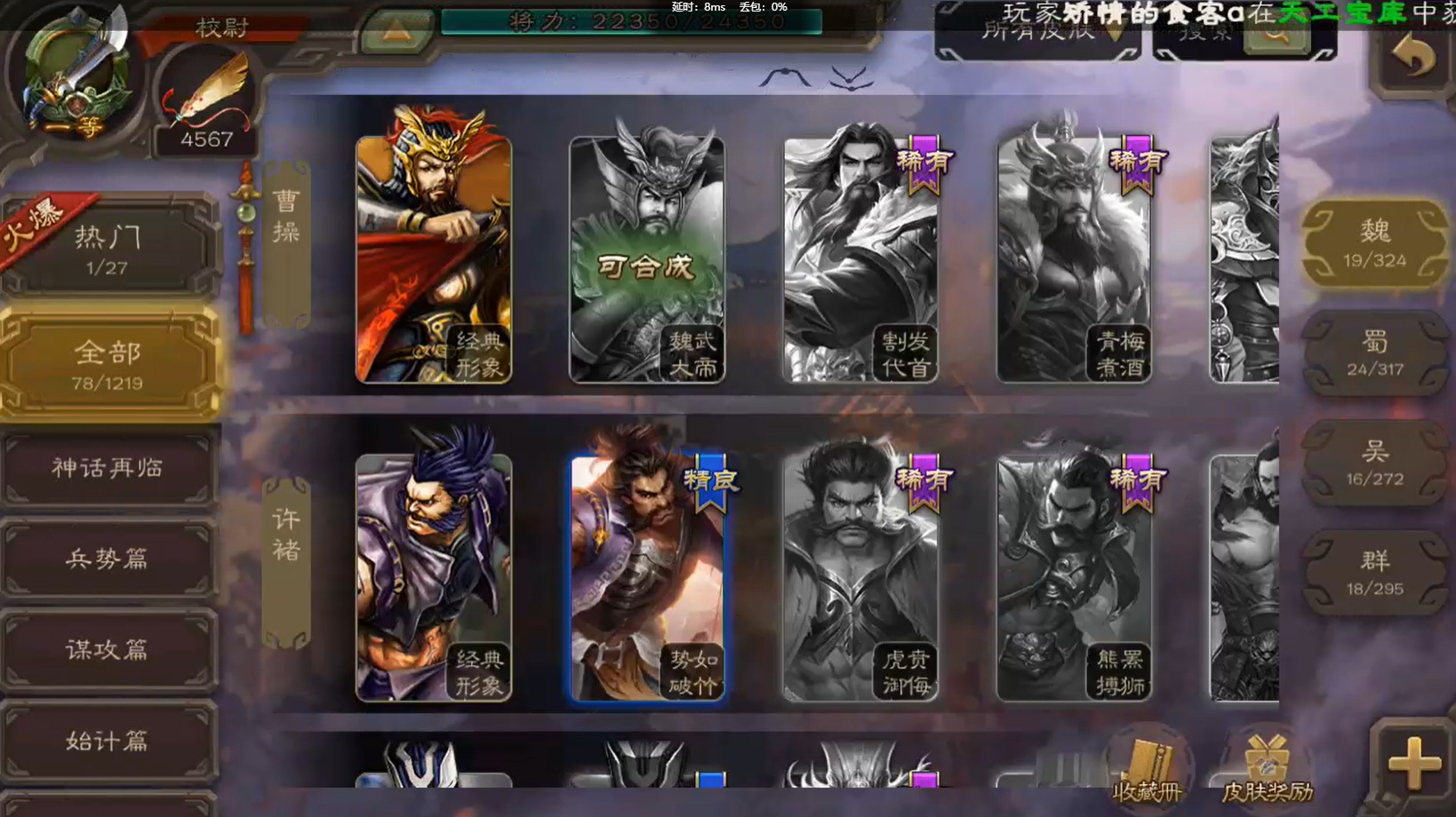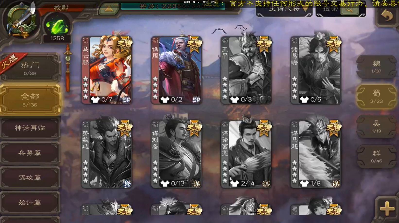 [14236670]vip2 校尉 127武将 3动态皮肤 5史诗武将 【魏国武将】:界于禁甄姬司马懿许褚夏侯惇郭嘉曹仁曹操张辽 【蜀国武将】:马云騄谯周黄月英 【吴国武将】:势太史慈