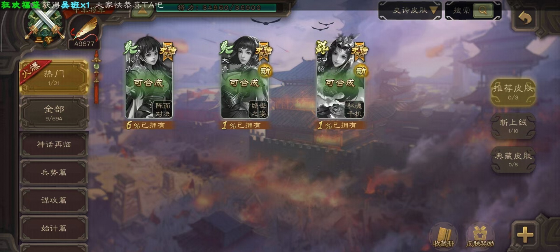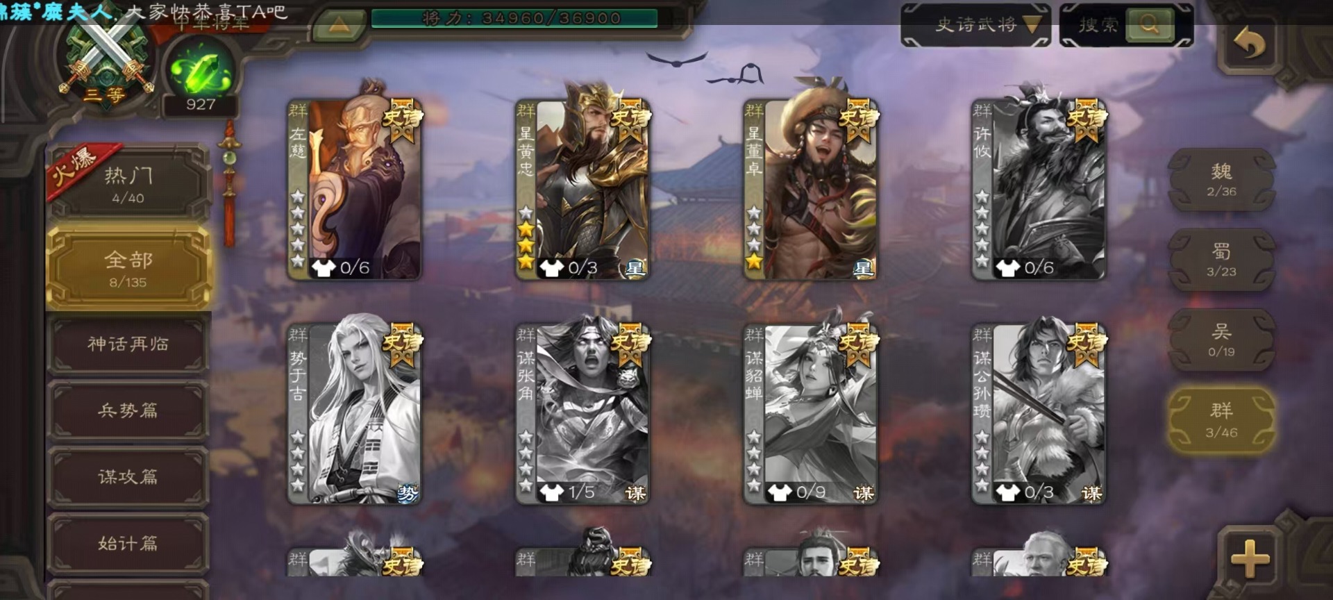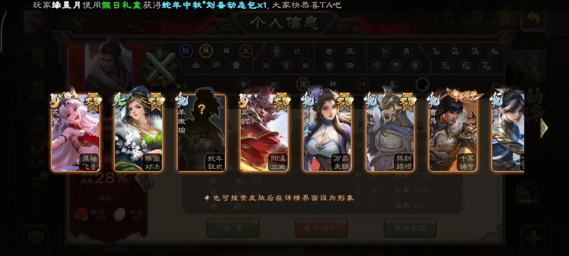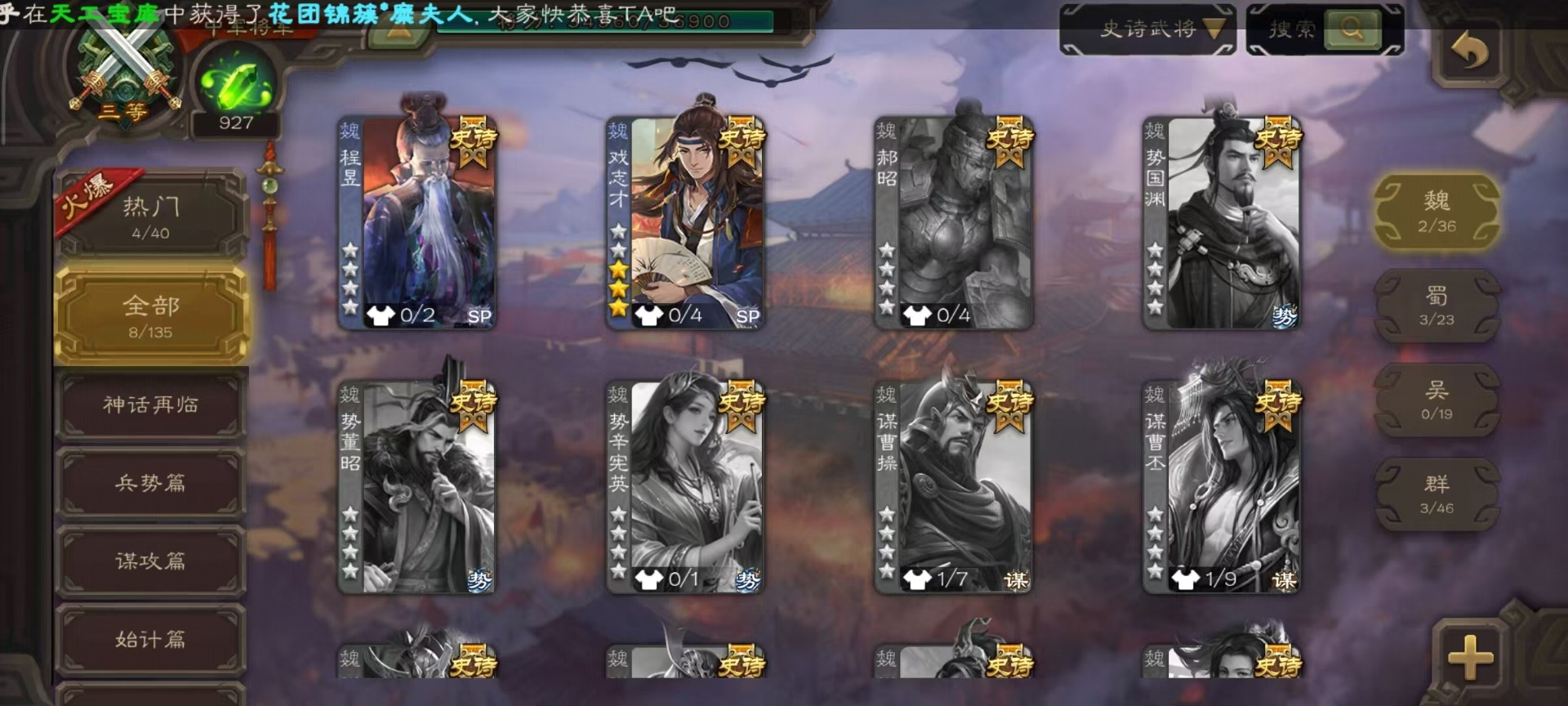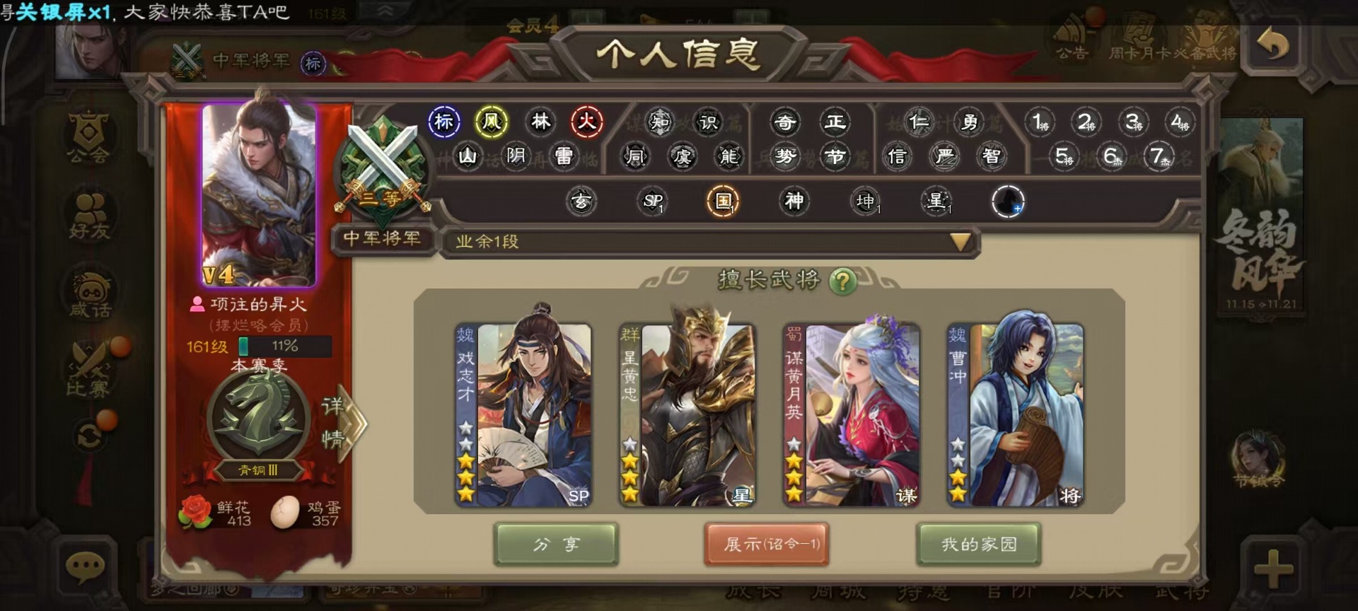 [14252952]vip4 中军将军 182武将 1动态皮肤 8史诗武将 66宝珠 【魏国武将】:程昱戏志才 【蜀国武将】:谯周界黄忠花鬘 【群国武将】:星董卓左慈星黄忠
