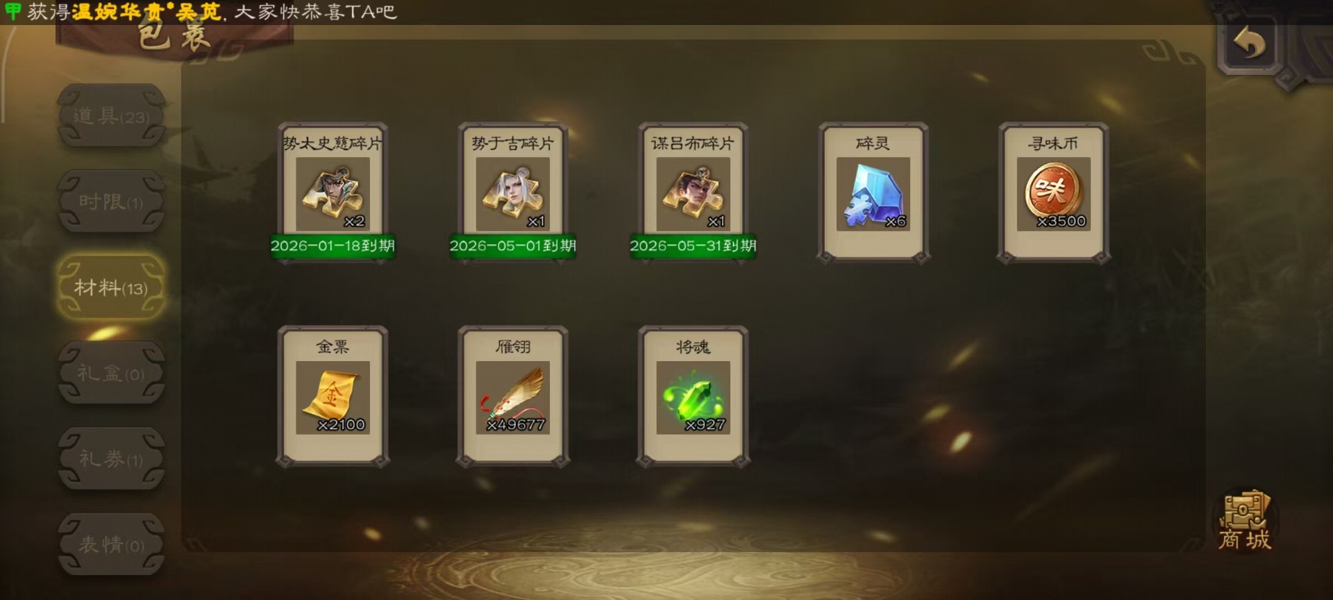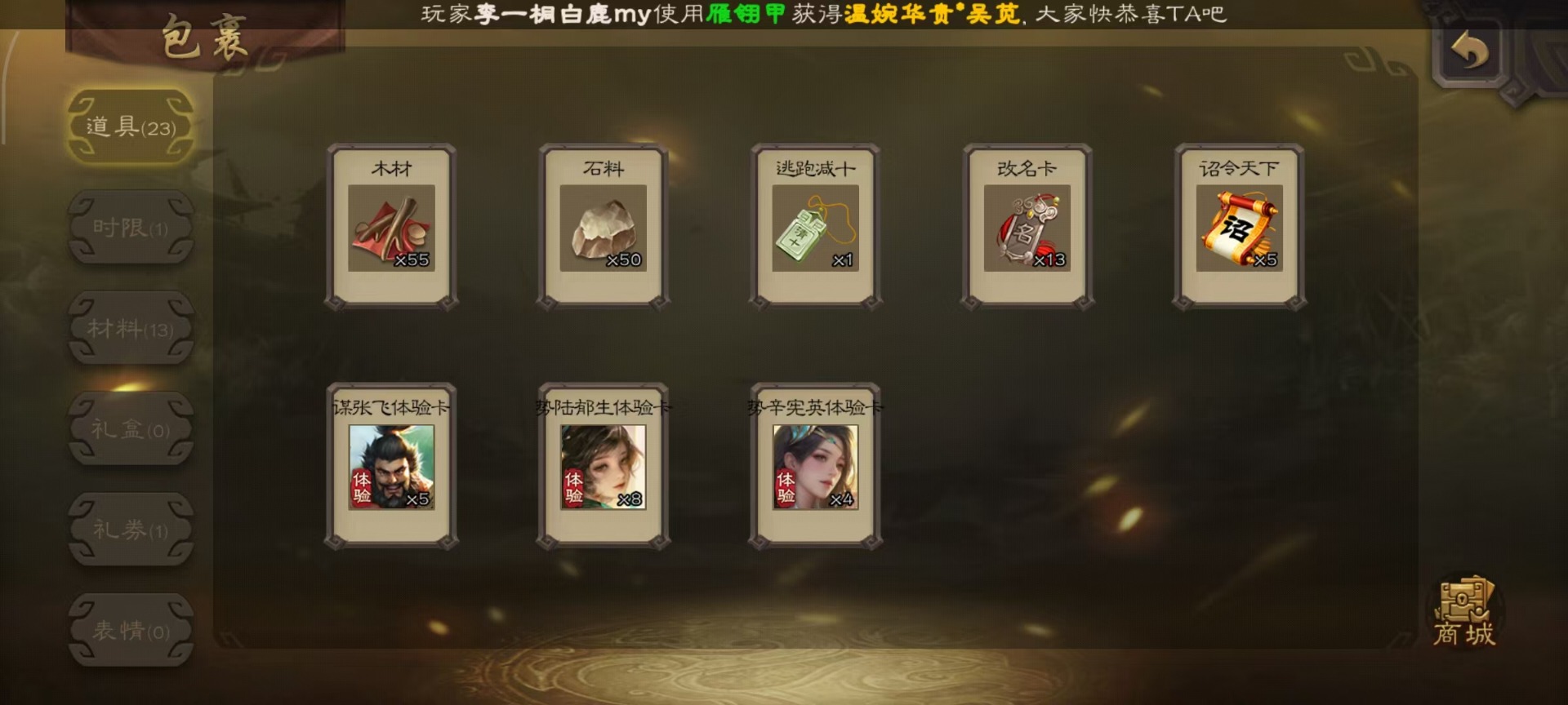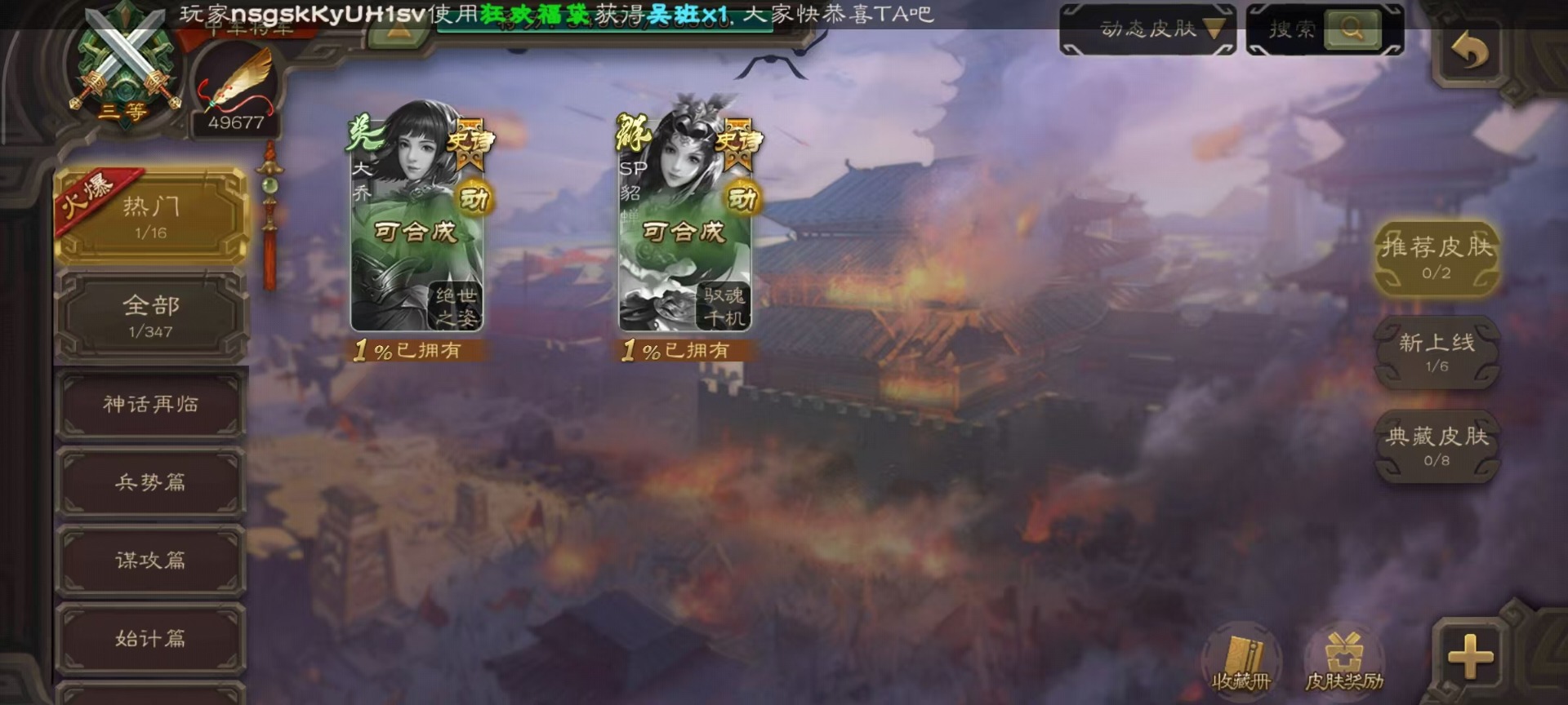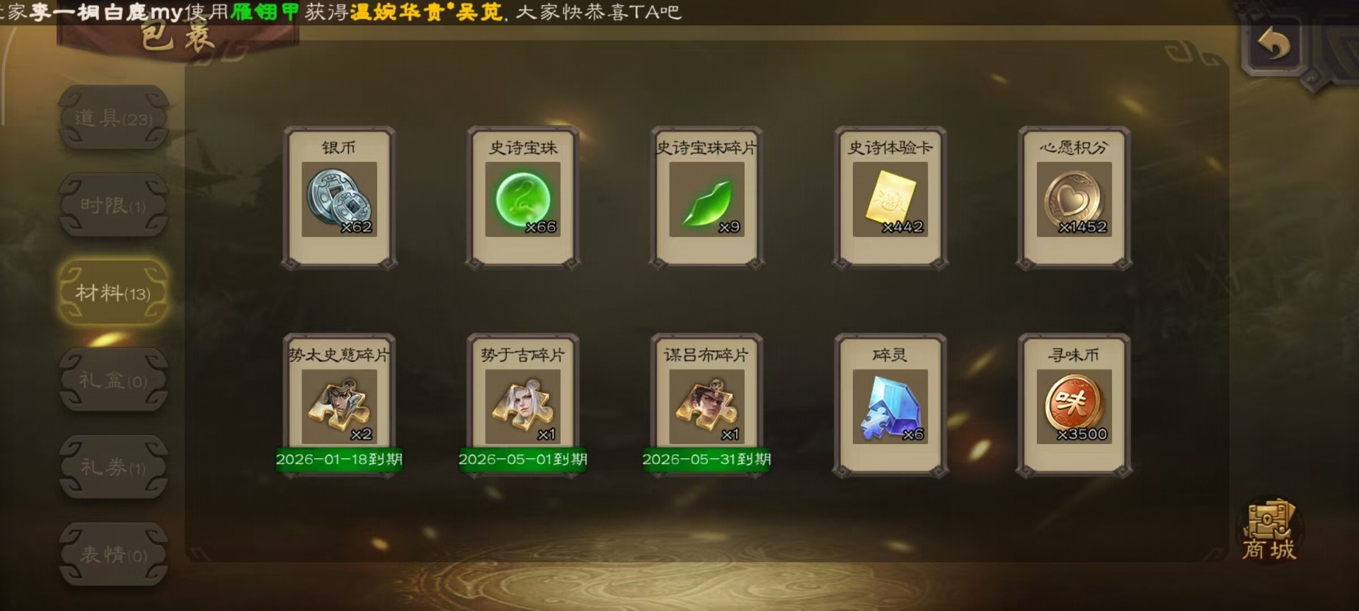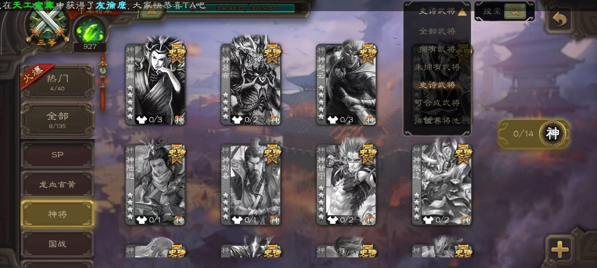 [14252952]vip4 中军将军 182武将 1动态皮肤 8史诗武将 66宝珠 【魏国武将】:程昱戏志才 【蜀国武将】:谯周界黄忠花鬘 【群国武将】:星董卓左慈星黄忠