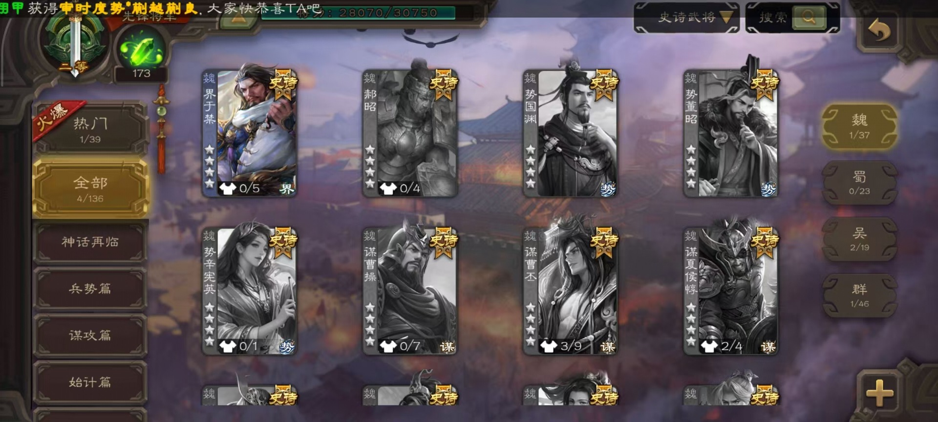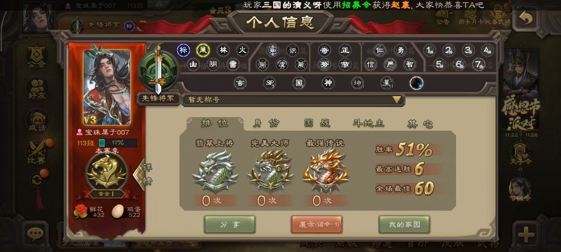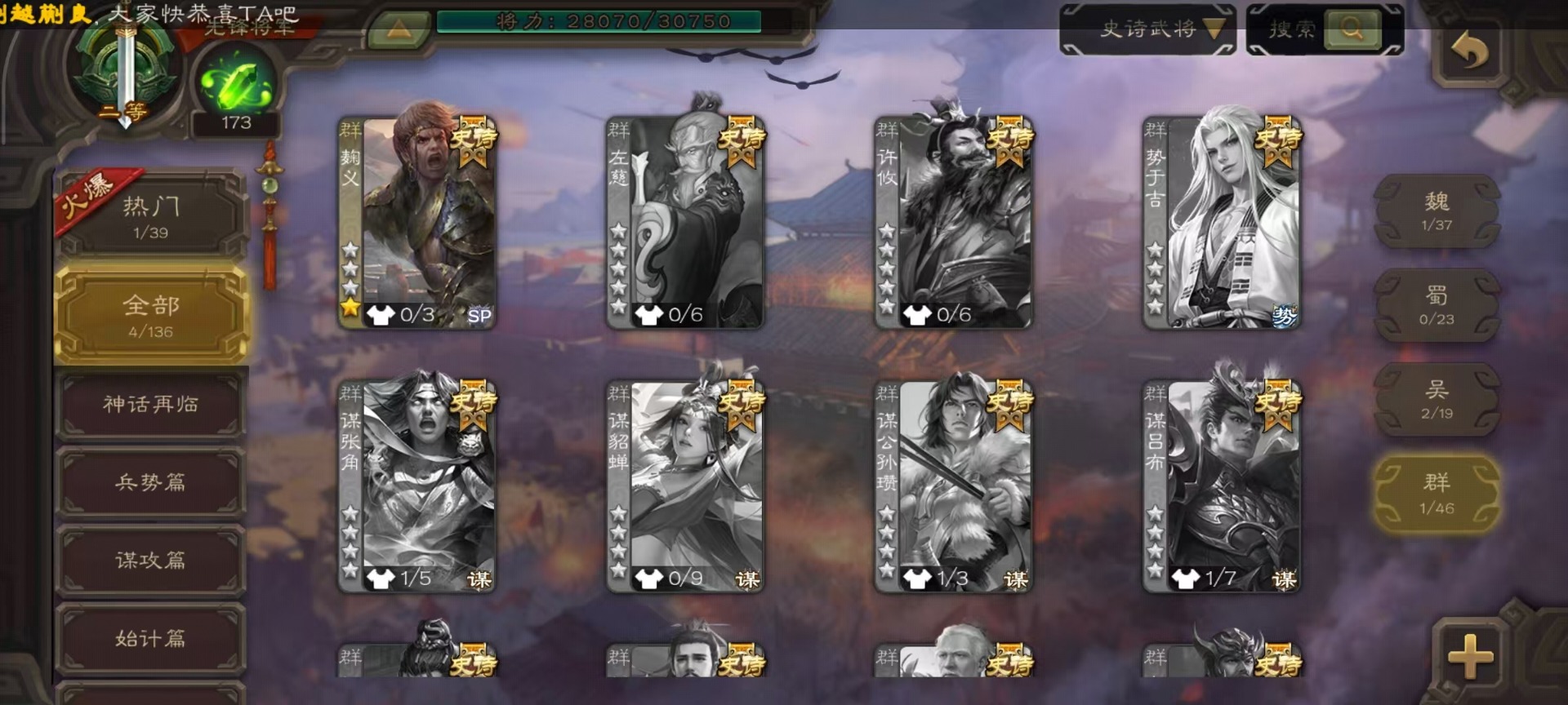 [14374998]vip3 先锋将军 146武将 4动态皮肤 4史诗武将 【魏国武将】:界于禁甄姬司马懿许褚夏侯惇郭嘉曹仁曹操张辽 【吴国武将】:界徐盛贺齐 【群国武将】:麹义
