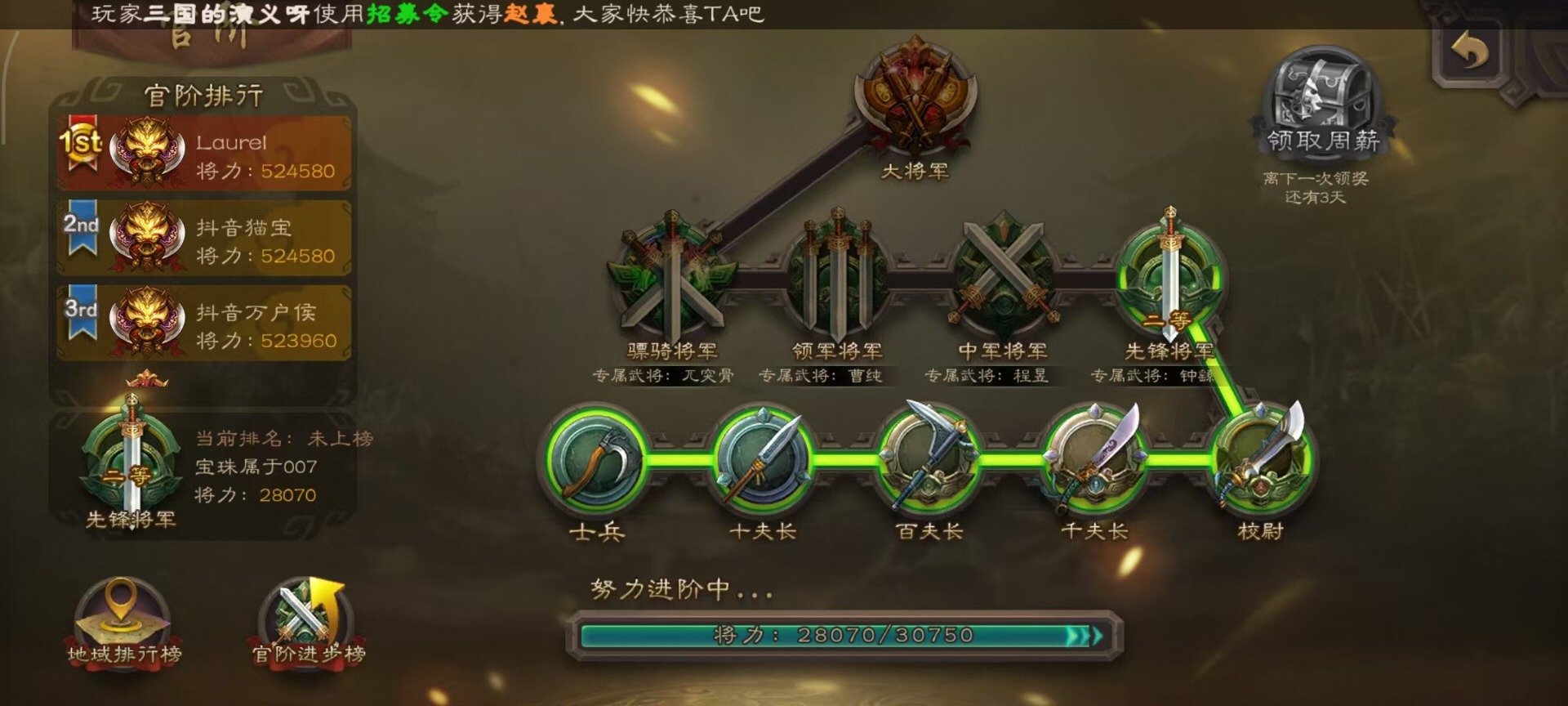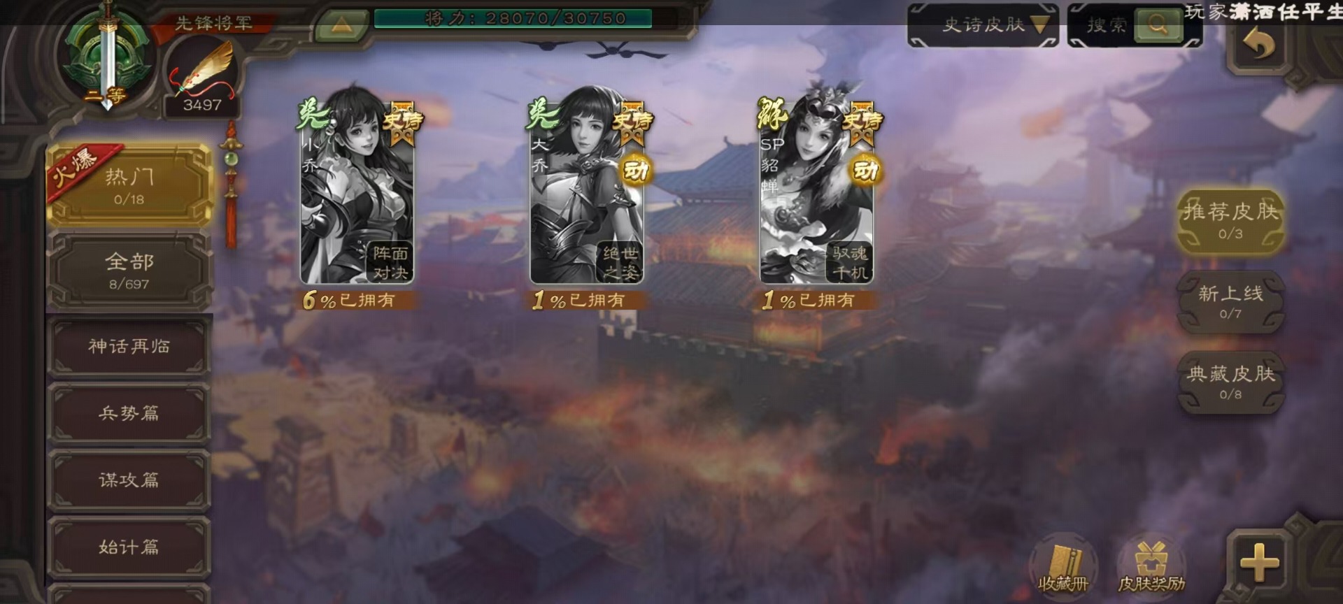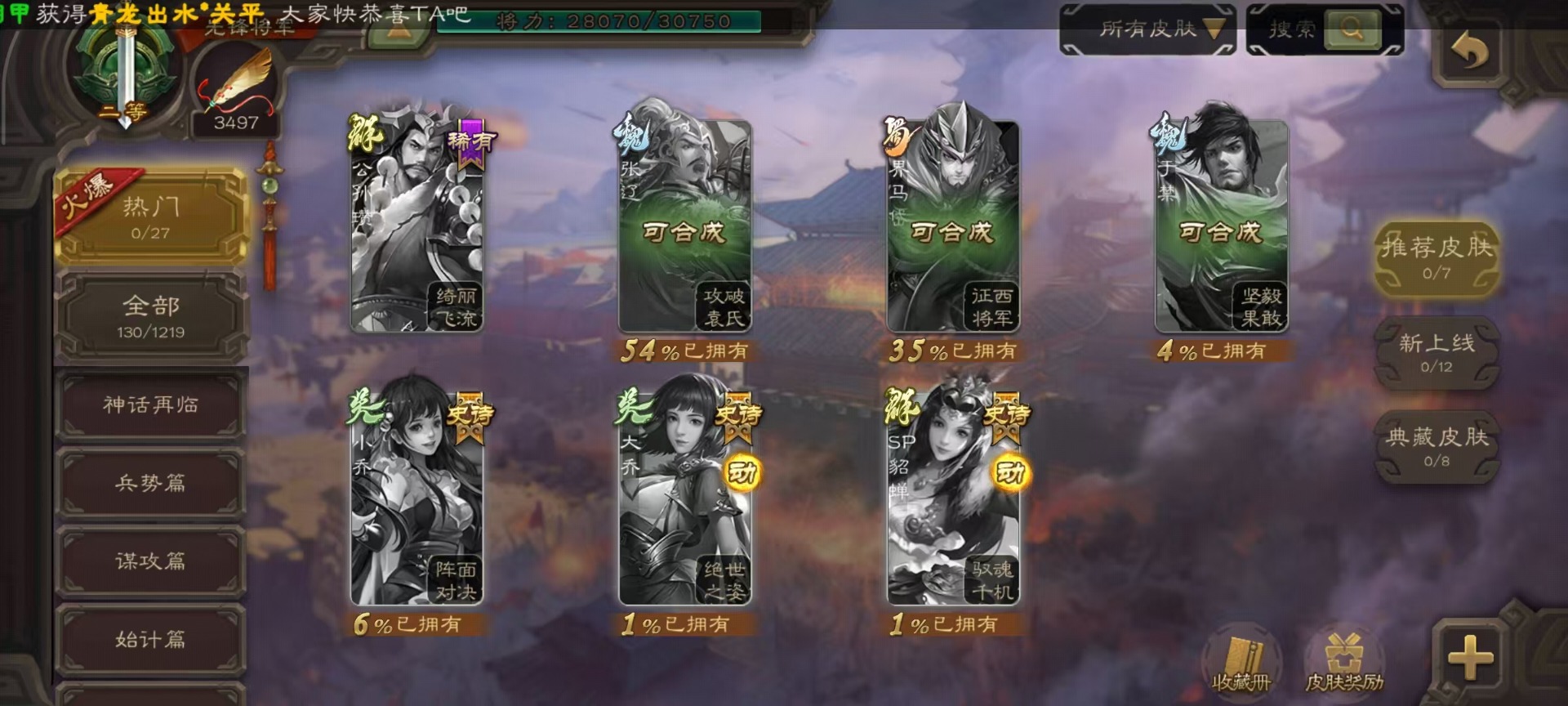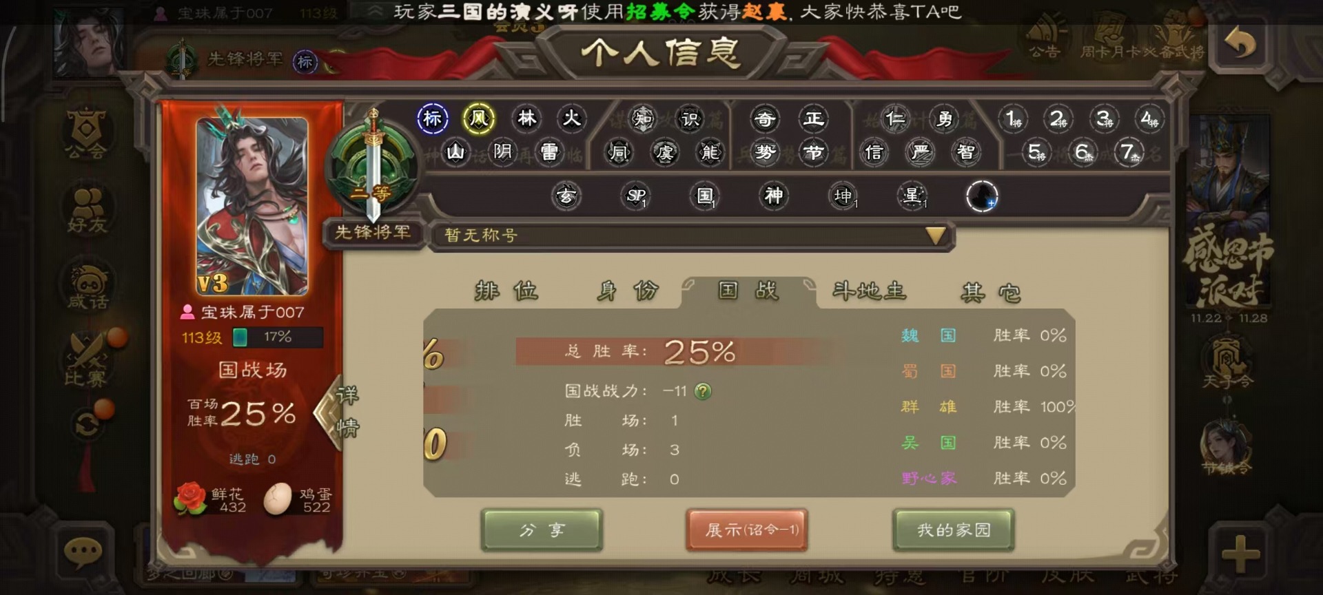[14374998]vip3 先锋将军 146武将 4动态皮肤 4史诗武将 【魏国武将】:界于禁甄姬司马懿许褚夏侯惇郭嘉曹仁曹操张辽 【吴国武将】:界徐盛贺齐 【群国武将】:麹义