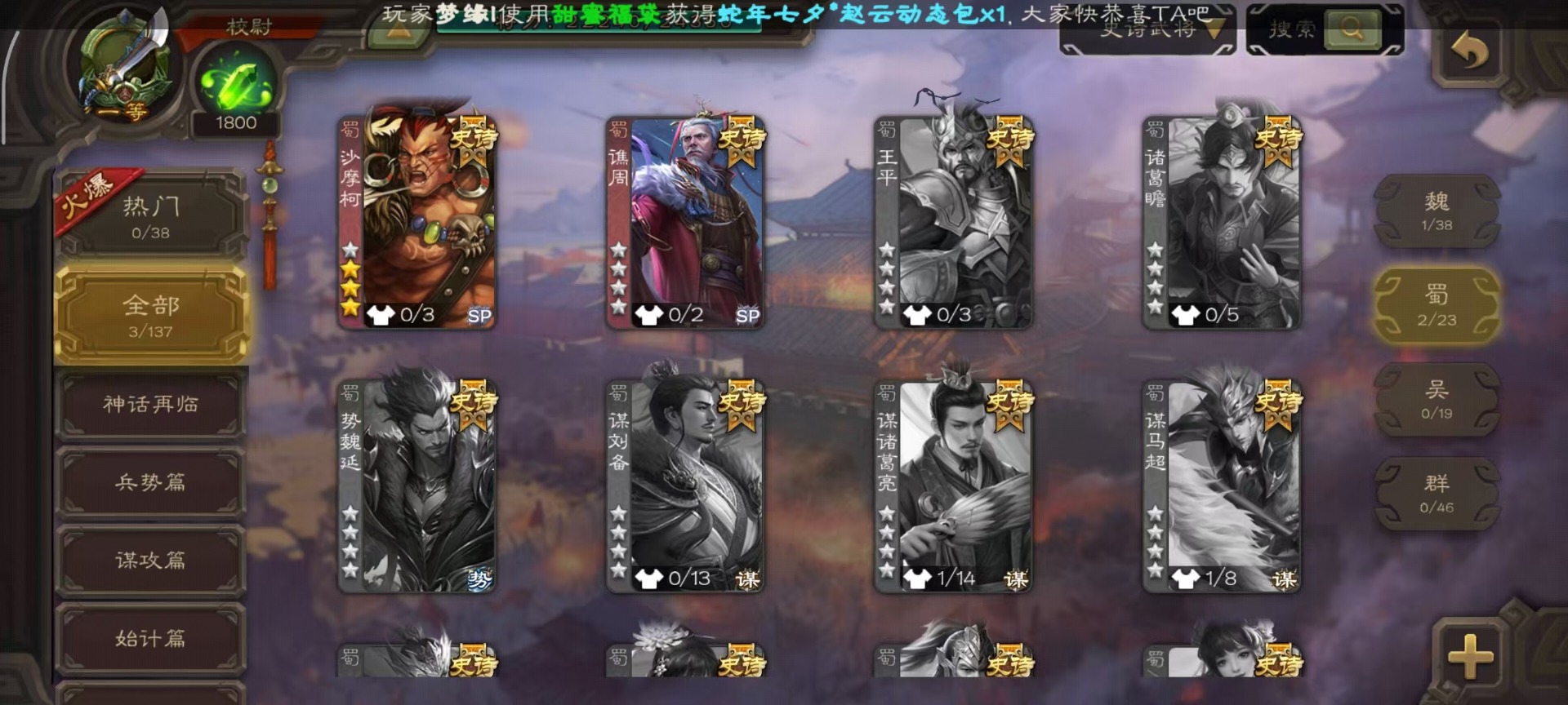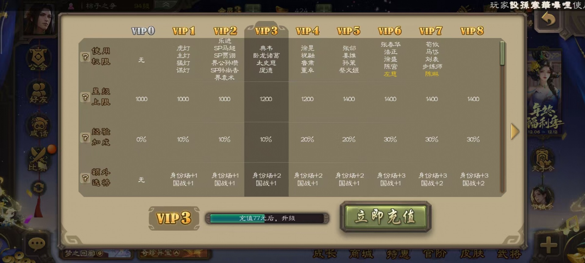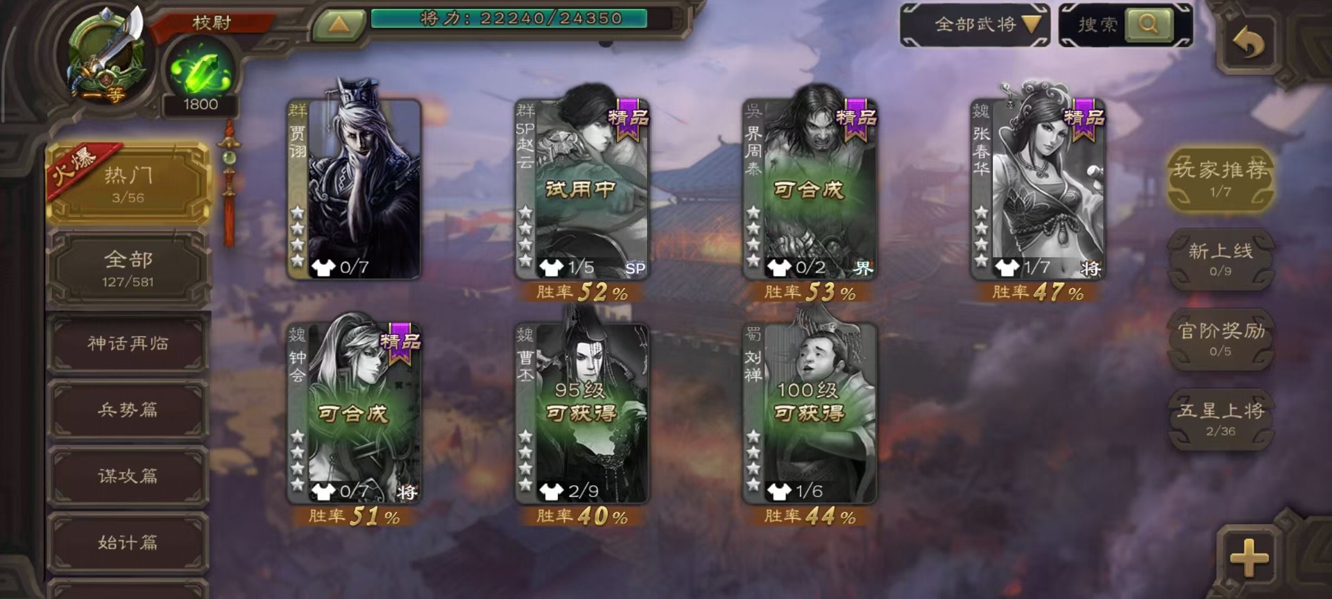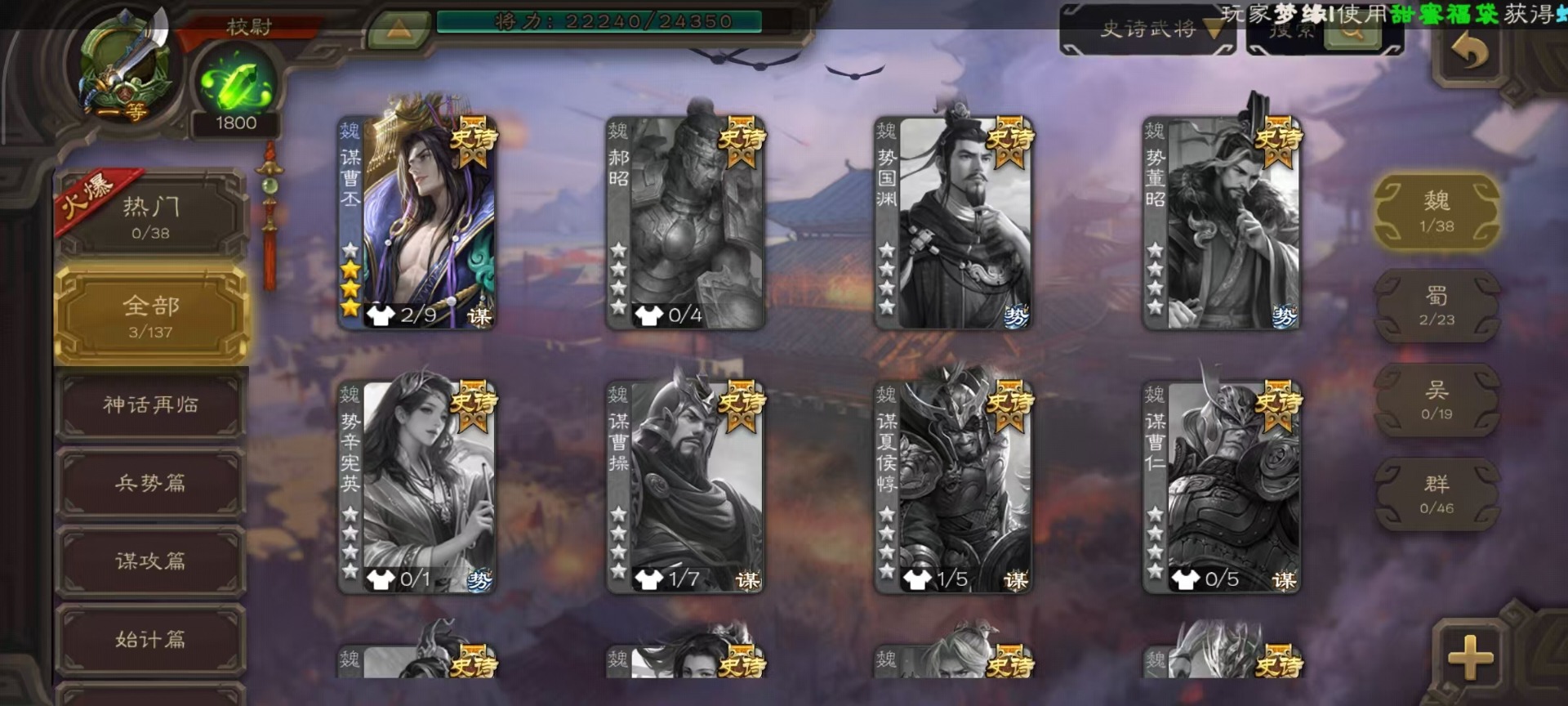 [14390511]vip3 校尉 127武将 1动态皮肤 3史诗武将 3宝珠 【魏国武将】:谋曹丕 【蜀国武将】:沙摩柯谯周 【群国武将】:贾诩