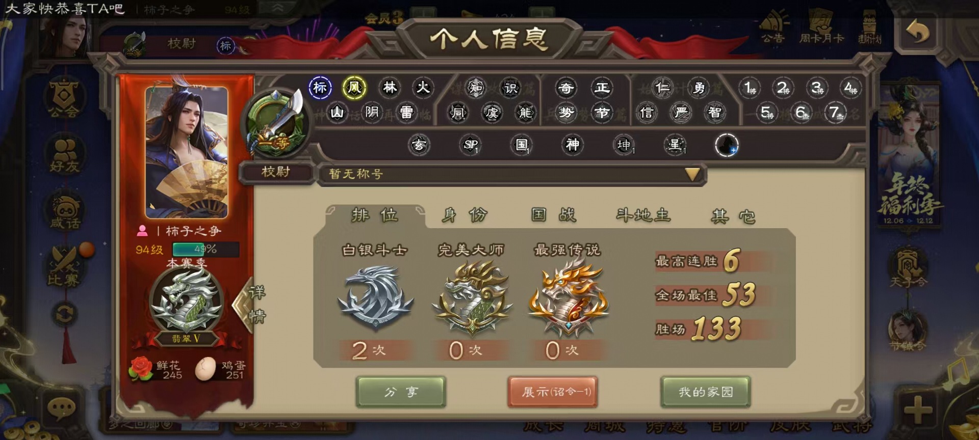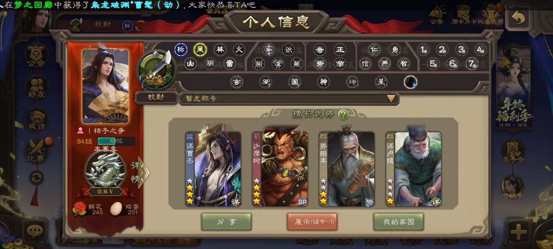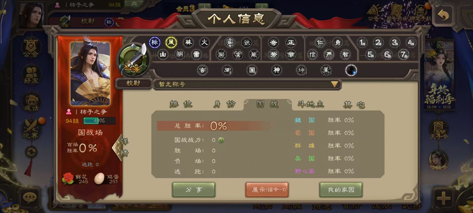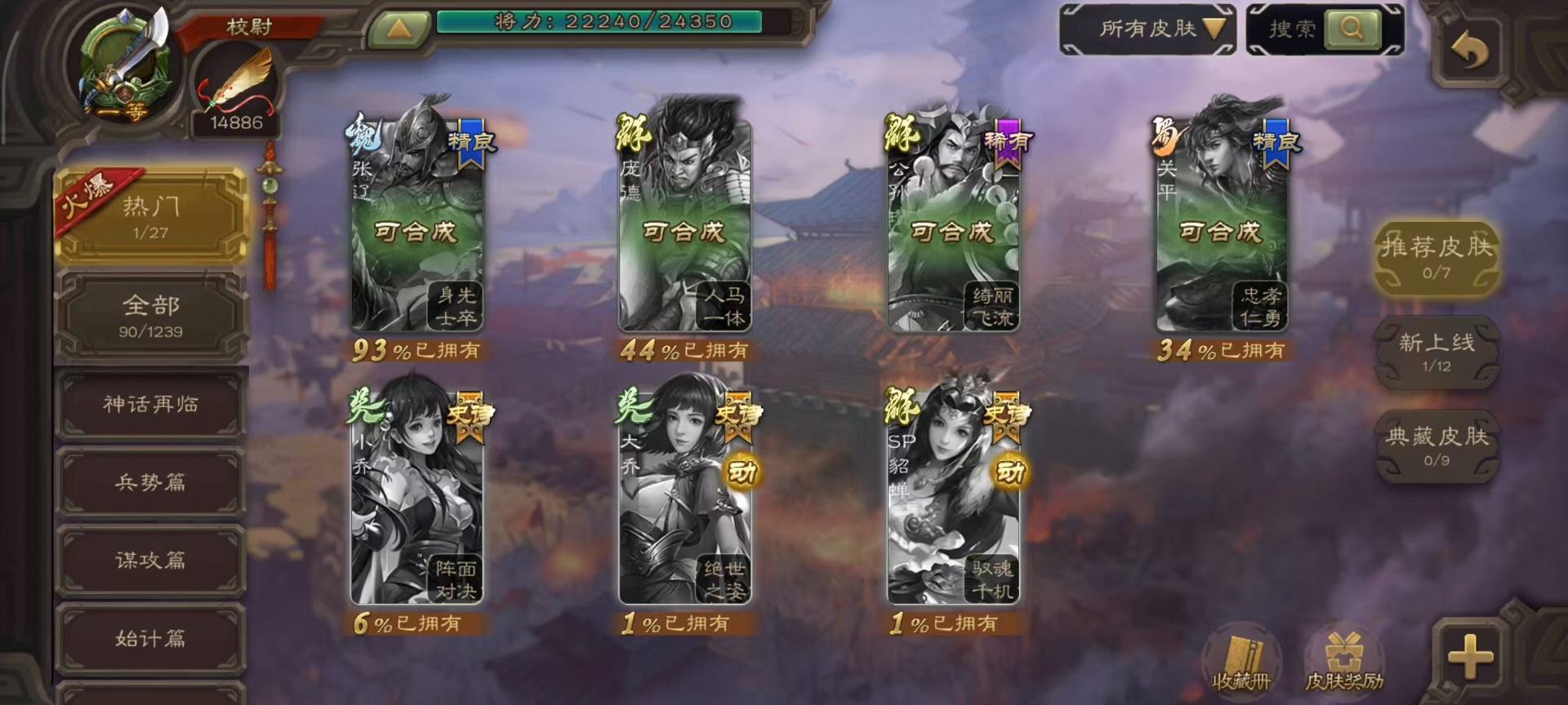 [14390511]vip3 校尉 127武将 1动态皮肤 3史诗武将 3宝珠 【魏国武将】:谋曹丕 【蜀国武将】:沙摩柯谯周 【群国武将】:贾诩