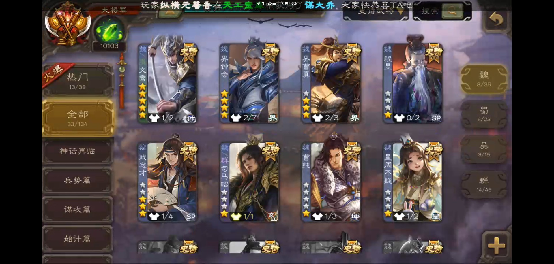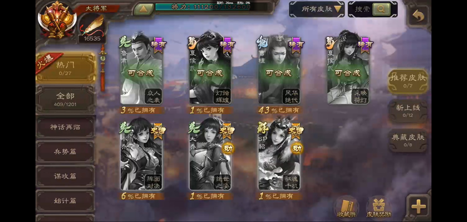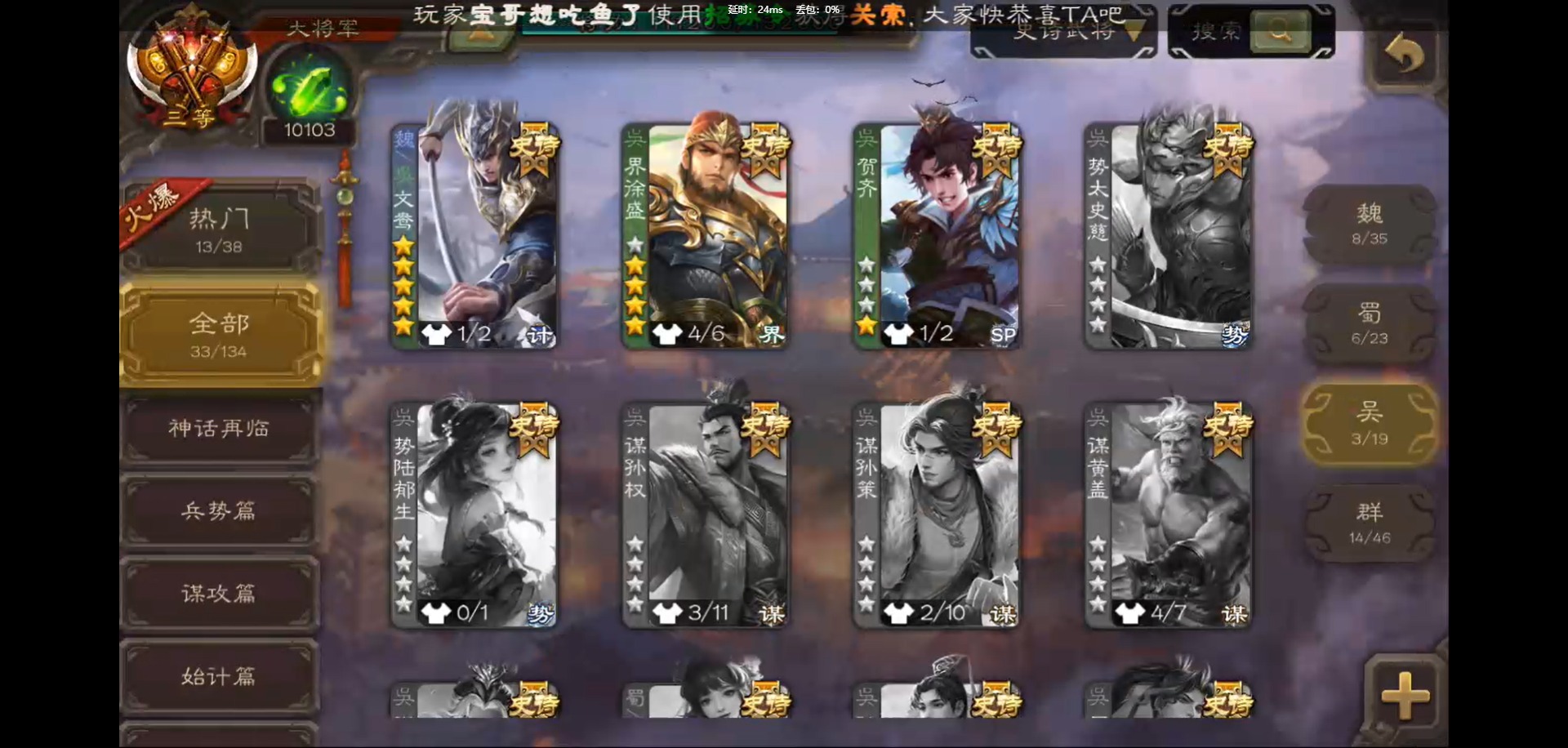 [14399357]vip8 大将军 341武将 38动态皮肤 33史诗武将 【神将】:神吕布神赵云神甘宁神张辽 【魏国武将】:星周不疑文鸯魏-司马昭界钟会界曹真程昱戏志才曹昂 【蜀国武将】:谋诸葛亮谋赵云谋马超沙摩柯谯周界黄忠卧龙诸葛赵云 【吴国武将】:文鸯界徐盛贺齐吕蒙 【群国武将】:星董卓势于吉群-司马昭左慈张让兀突骨麹义南华老仙沮授界左慈界李儒公孙康卑弥呼谋张角李儒许攸袁绍
