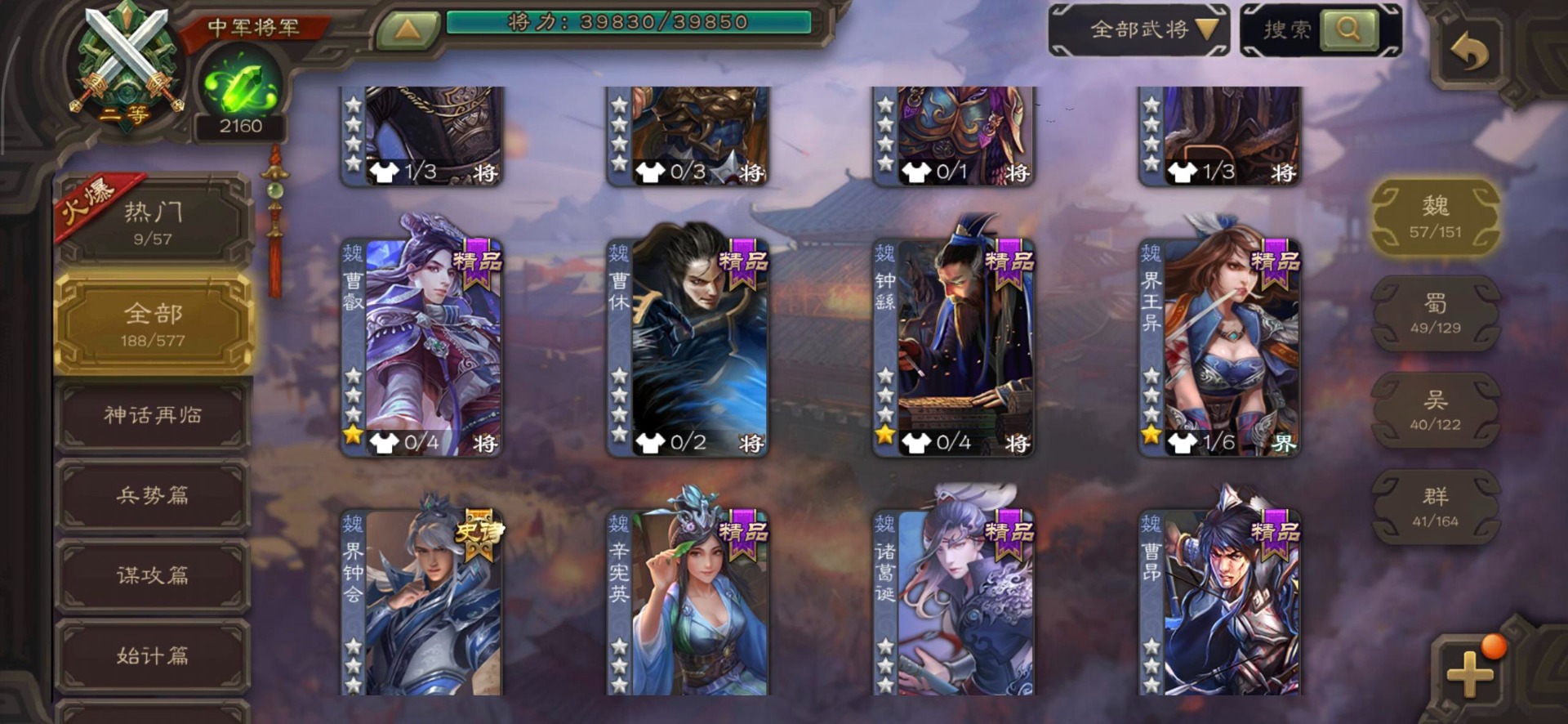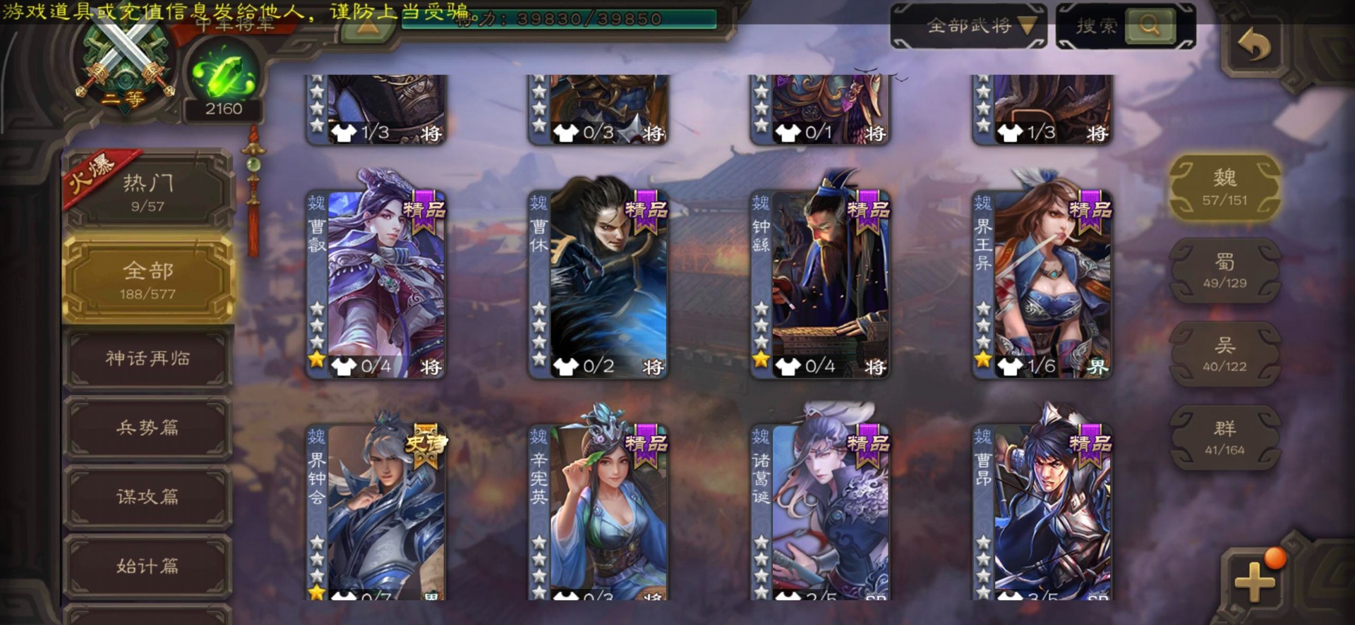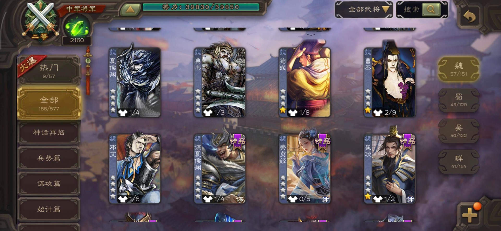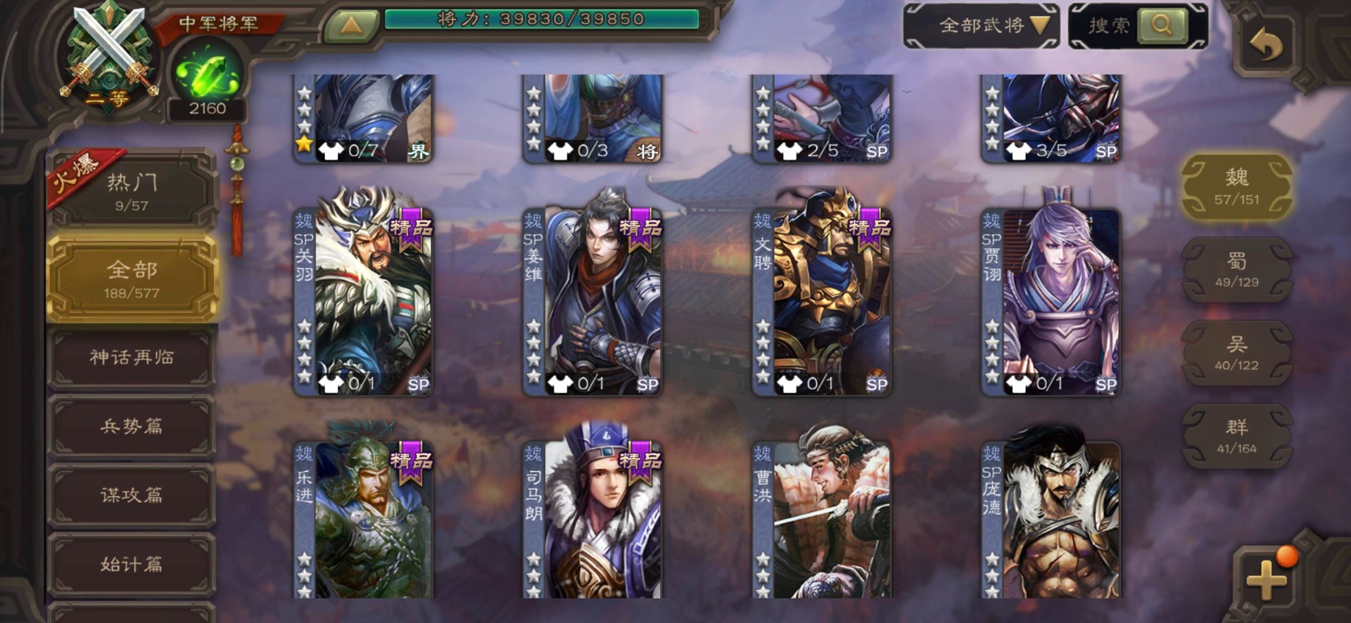 [14399882]vip7 中军将军 188武将 4动态皮肤 11史诗武将 【魏国武将】:程昱戏志才界司马懿于禁界夏侯渊界夏侯惇界张辽界曹操界曹丕崔琰界郭嘉蔡贞姬邓艾夏侯渊典韦甄姬司马懿许褚夏侯惇荀彧郭嘉曹仁曹丕曹操张辽