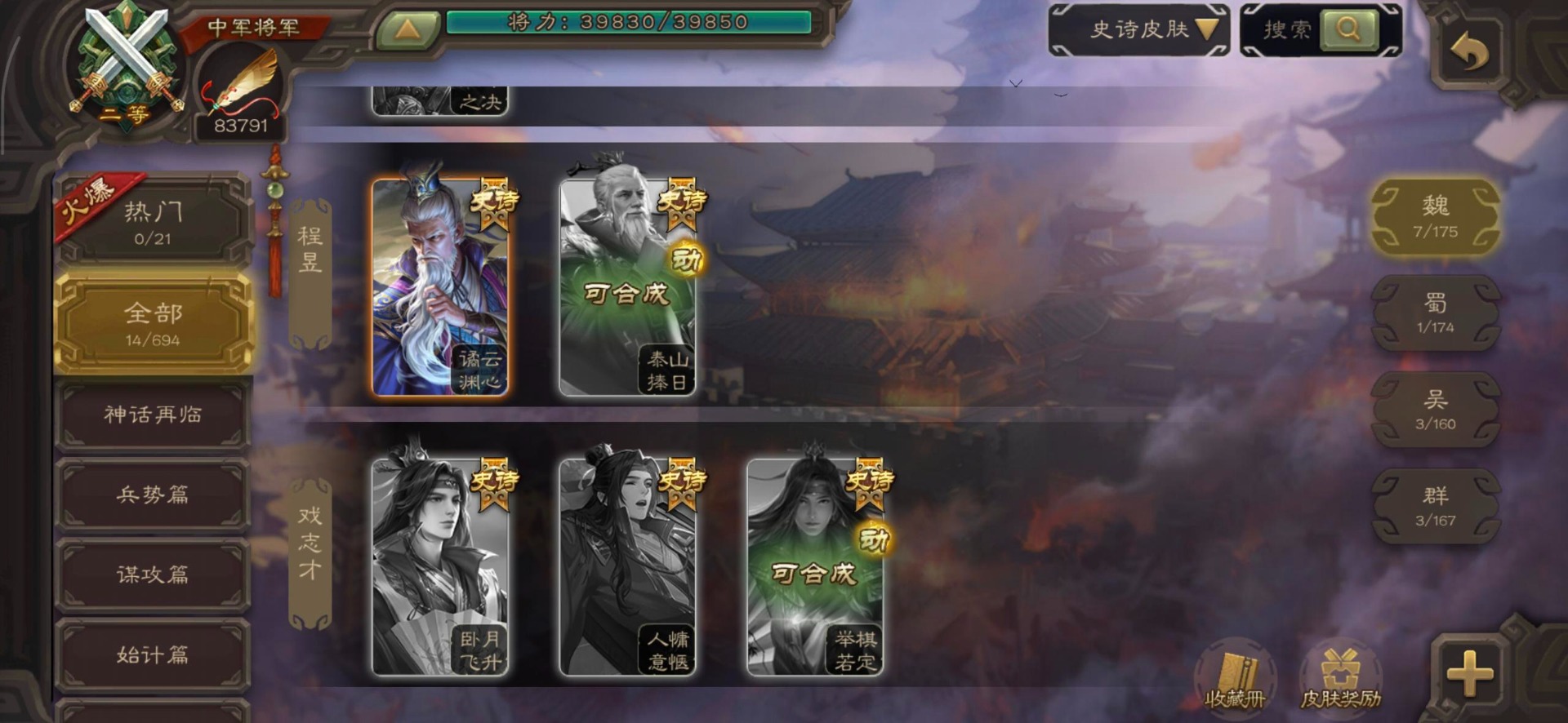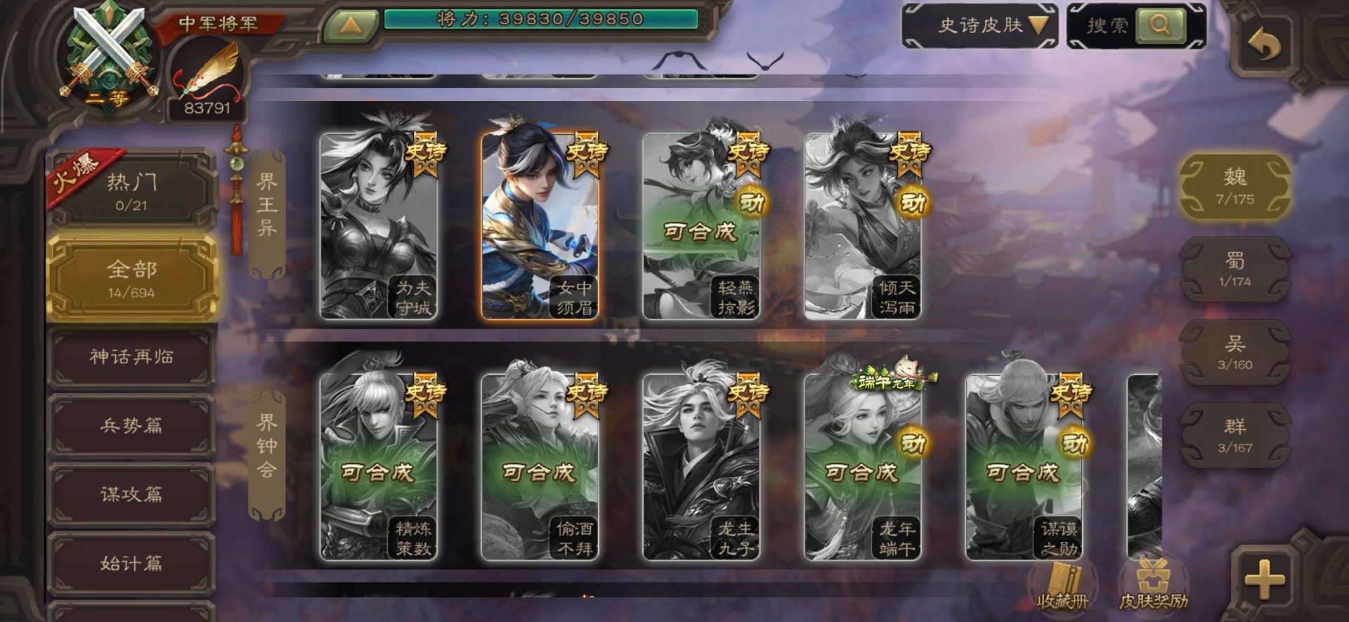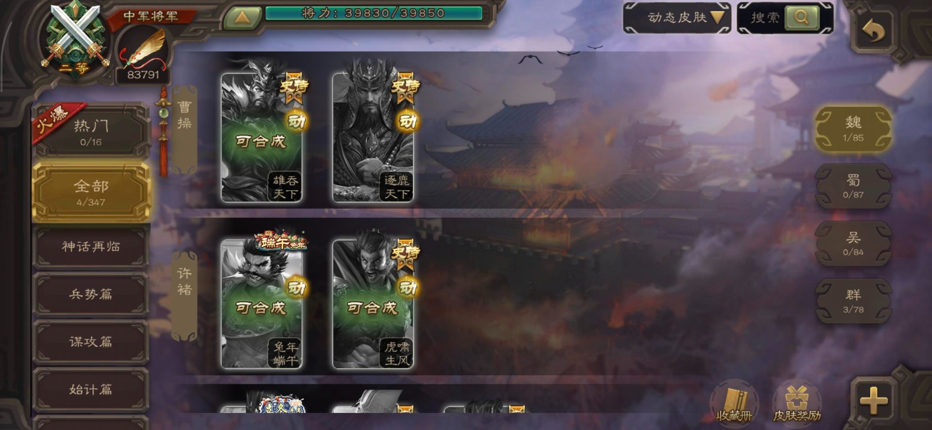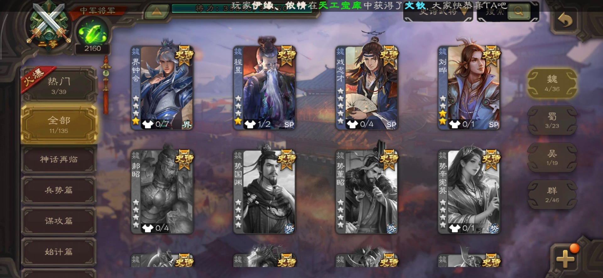 [14399882]vip7 中军将军 188武将 4动态皮肤 11史诗武将 【魏国武将】:程昱戏志才界司马懿于禁界夏侯渊界夏侯惇界张辽界曹操界曹丕崔琰界郭嘉蔡贞姬邓艾夏侯渊典韦甄姬司马懿许褚夏侯惇荀彧郭嘉曹仁曹丕曹操张辽