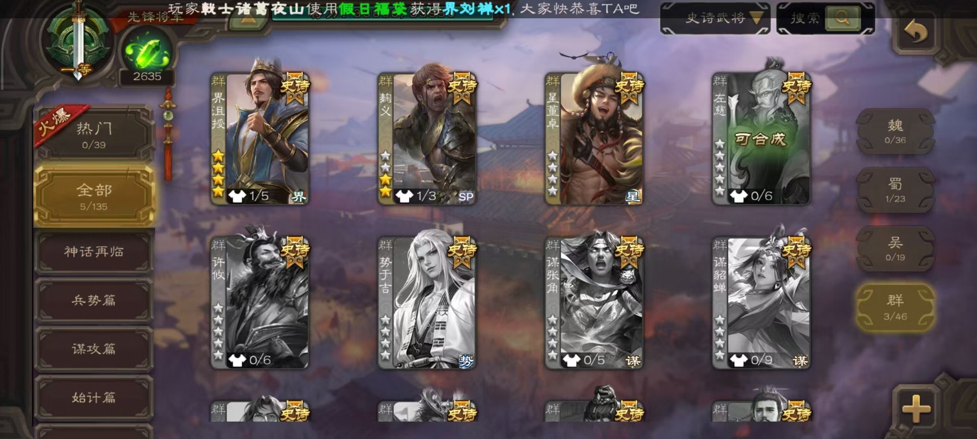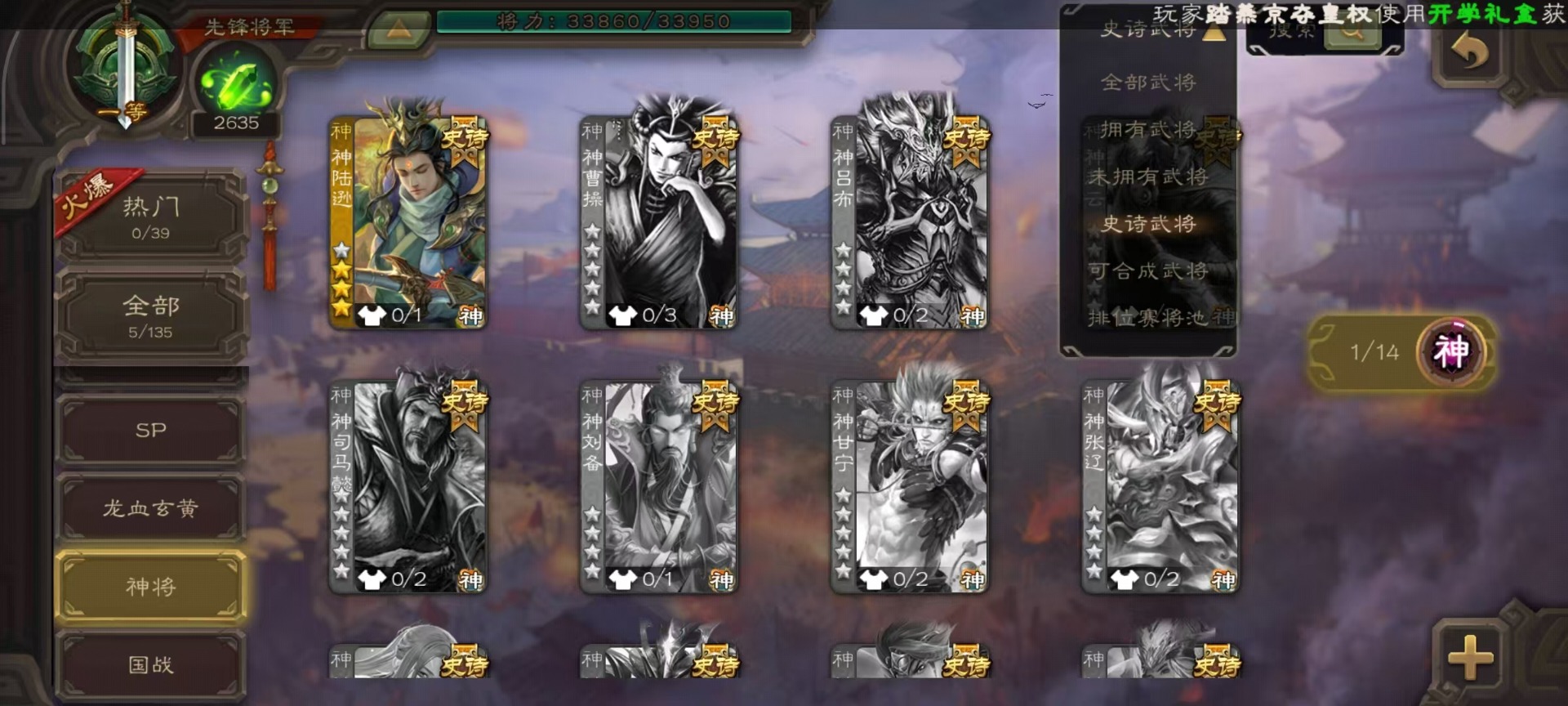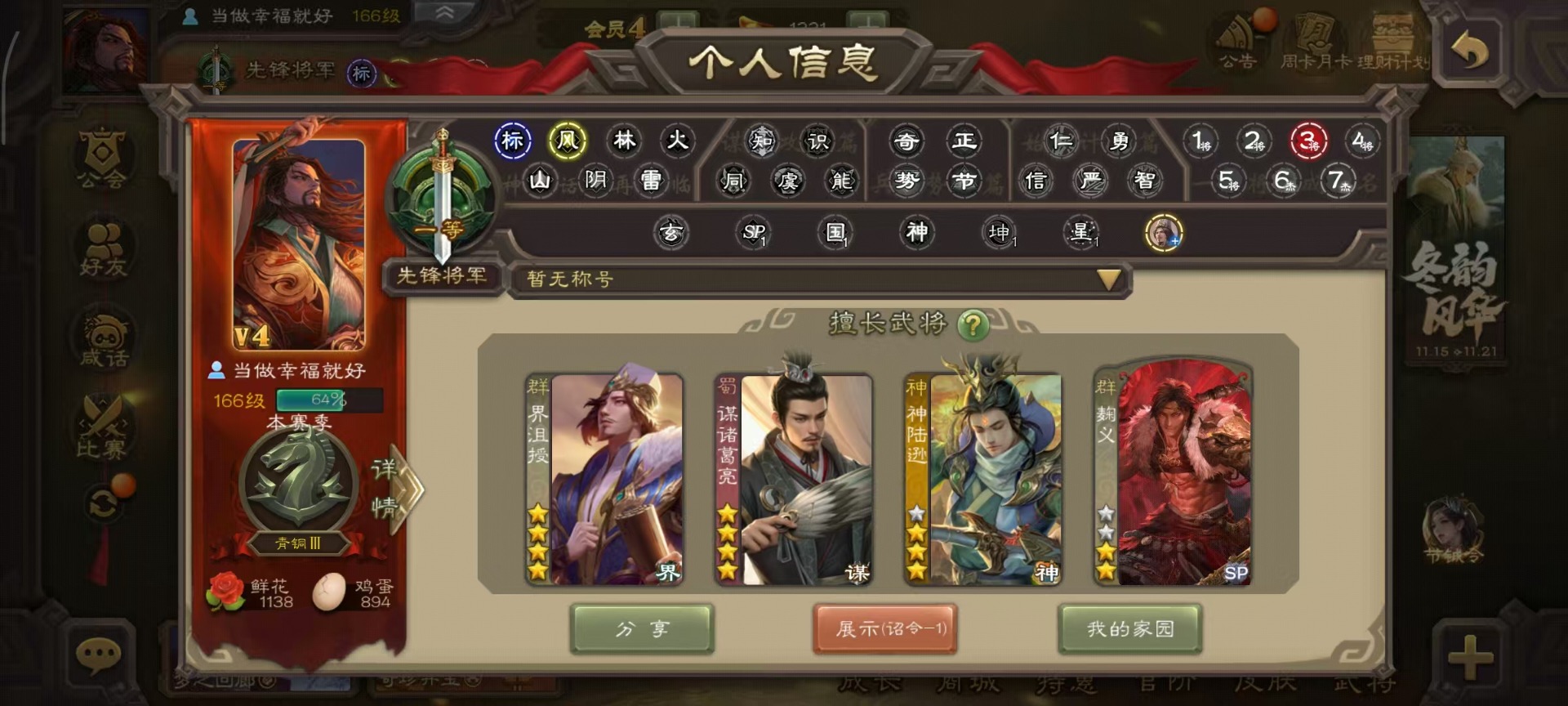 [14399894]vip4 先锋将军 175武将 5动态皮肤 5史诗武将 【神将】:神陆逊神吕蒙 【蜀国武将】:谋诸葛亮 【群国武将】:星董卓界沮授麹义