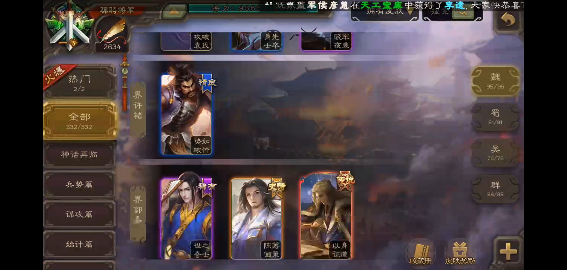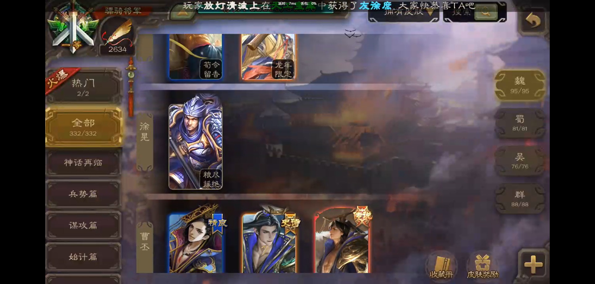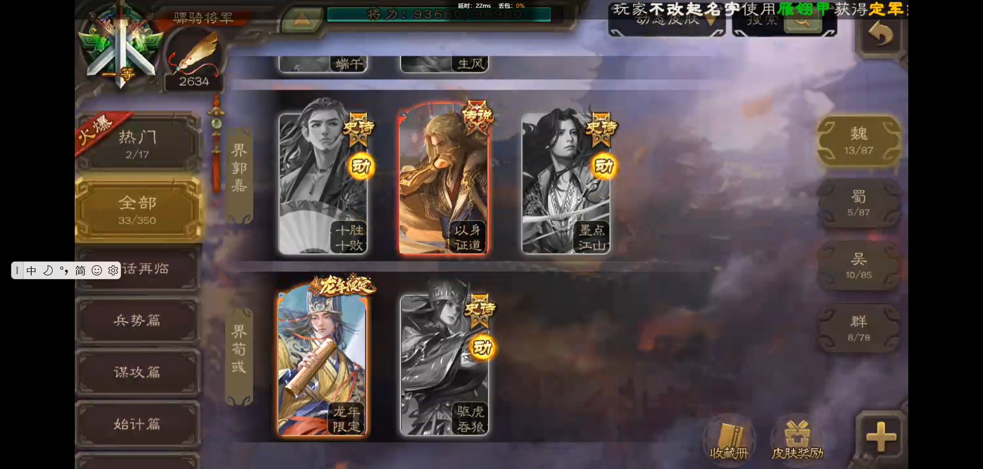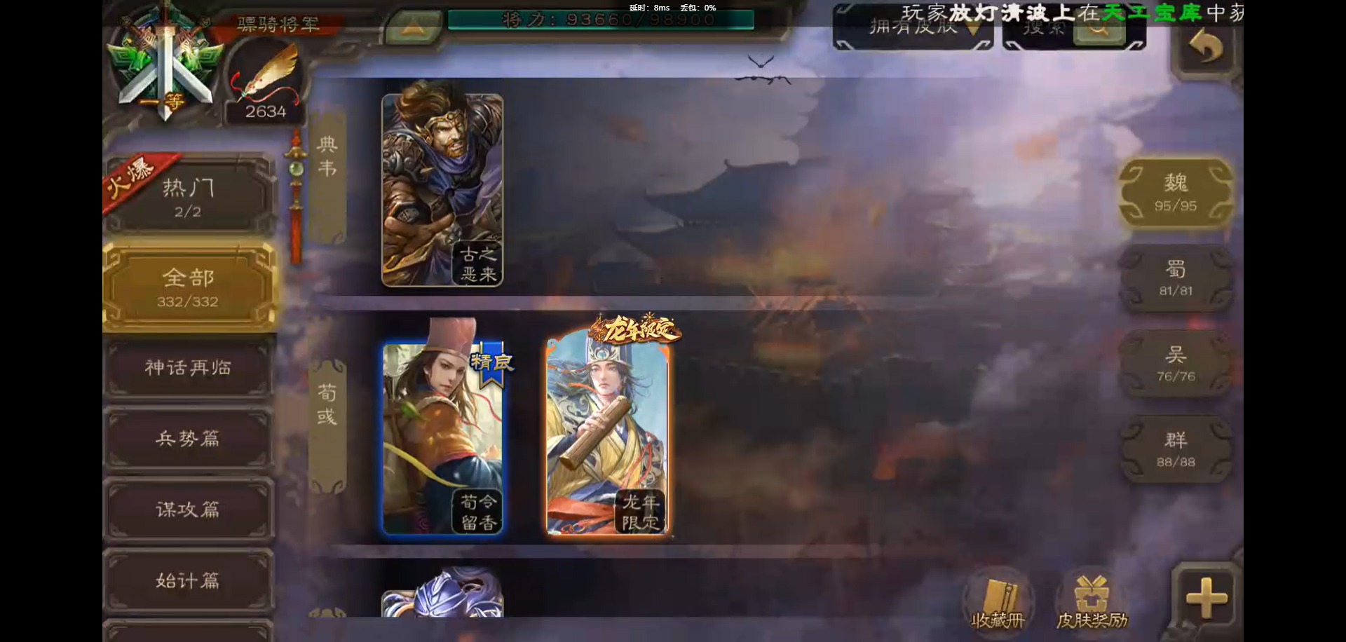 [14400610]vip9 骠骑将军 322武将 33动态皮肤 35史诗武将 3宝珠 【魏国武将】:文鸯甄姬司马懿许褚夏侯惇郭嘉曹仁曹操张辽