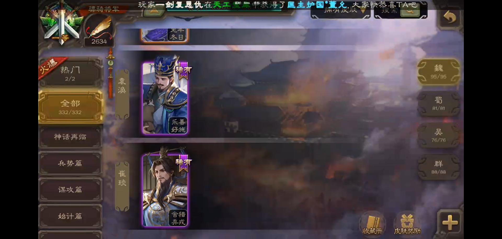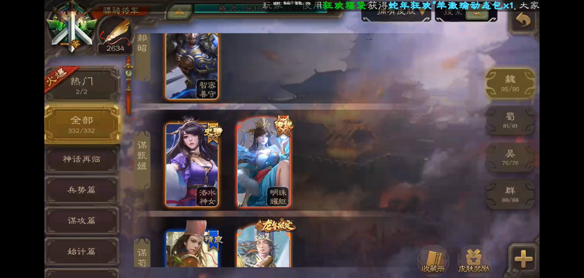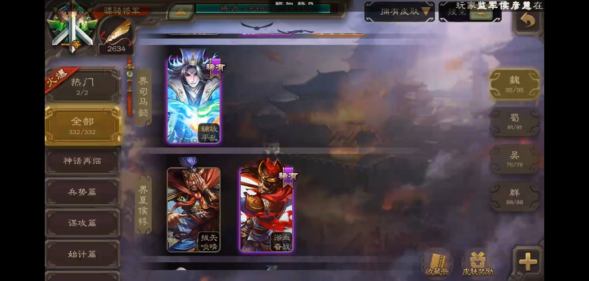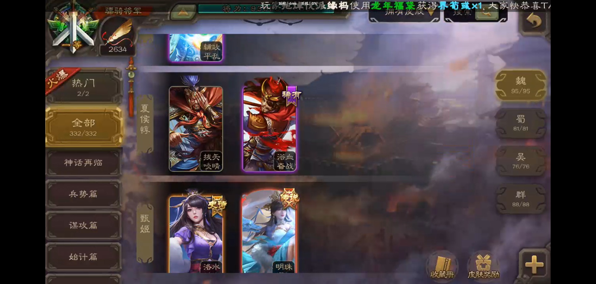 [14400610]vip9 骠骑将军 322武将 33动态皮肤 35史诗武将 3宝珠 【魏国武将】:文鸯甄姬司马懿许褚夏侯惇郭嘉曹仁曹操张辽