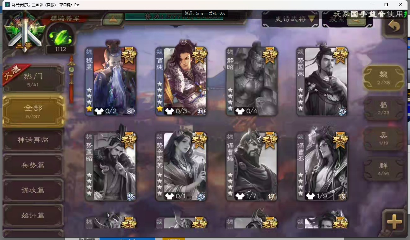 [14493557]vip7 骠骑将军 256武将 15动态皮肤 9史诗武将 1宝珠 【魏国武将】:程昱曹纯甄姬司马懿许褚夏侯惇郭嘉曹仁曹操张辽 【蜀国武将】:谋赵云谯周 【吴国武将】:孙寒华 【群国武将】:sp甄姬左慈兀突骨谋张角
