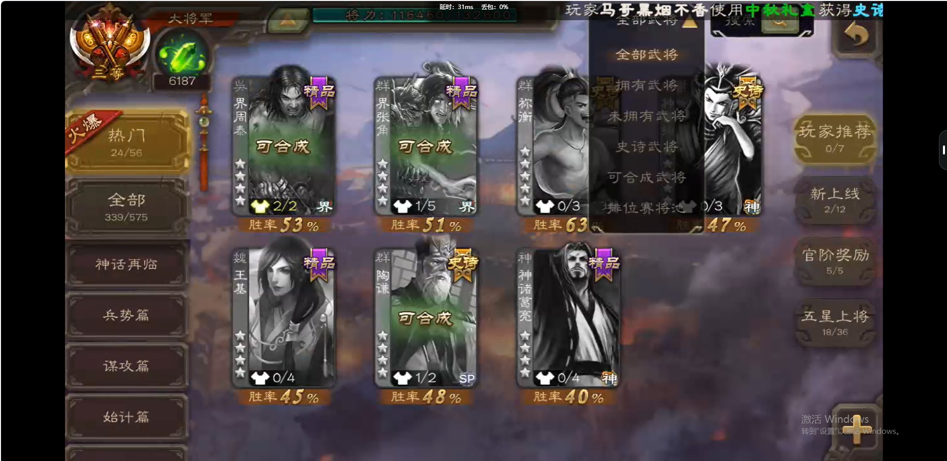 [14493707]vip10 大将军 339武将 44动态皮肤 42史诗武将 【神将】:神吕布神赵云神陆逊神太史慈 【魏国武将】:曹髦星周不疑杨修王元姬界钟会界曹真程昱曹婴戏志才 【蜀国武将】:谋赵云谋马超诸葛瞻赵襄沙摩柯谯周花鬘关索 【吴国武将】:文鸯吴景孙皓界徐盛 【群国武将】:星董卓左慈张让兀突骨苏飞麹义南华老仙刘焉沮授界左慈界李儒公孙康杜预谋张角