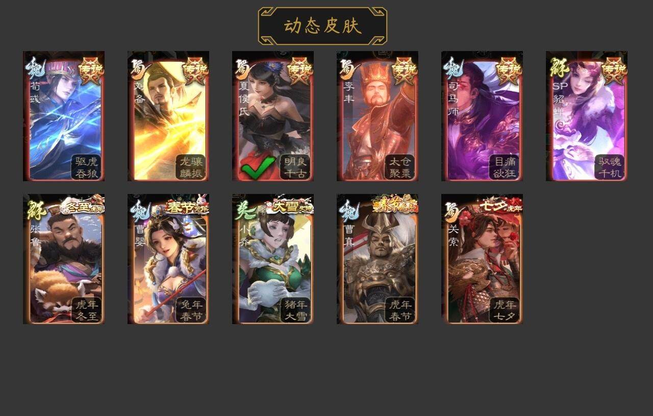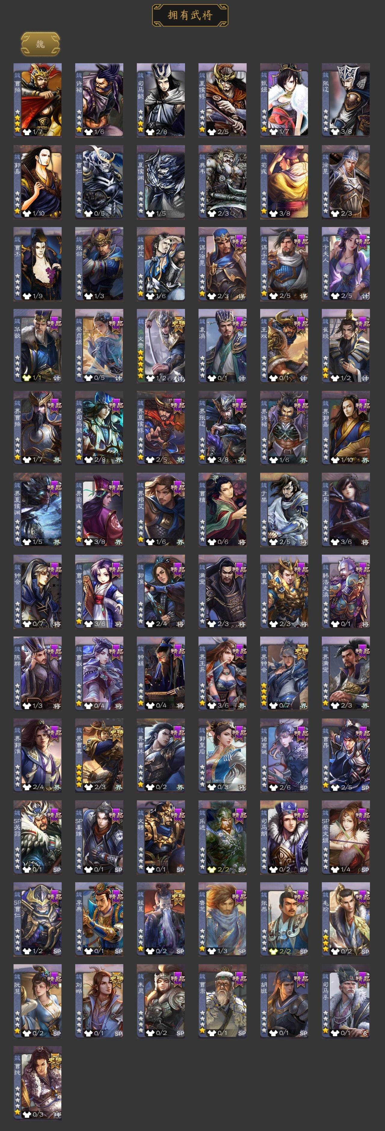 [15166665]【1011】官阶:骠骑将军;vip等级:vip8;史诗武将数量:14;动态皮肤数量:11;武将总数:259;史诗宝珠数量:0;将魂数量:3864;神将:2;魏国史诗武将:6;蜀国史诗武将:5;吴国史诗武将:0;群史诗武将:1 神张辽神周瑜文鸯界钟会界曹真曹纯刘晔谋马超谯周傅佥界黄忠花鬘界李儒荀彧-驱虎吞狼动态曹真-虎年春节动态曹婴-兔年春节动态刘备-龙骧麟振动态界刘备-龙骧麟振动态夏侯氏-明良千古动态关索-虎年七夕动态李丰-太仓聚粟动态小乔-猪年大雪动态文鸯-势若万钧动态sp貂蝉-驭魂千机动态张鲁-虎年冬至动态张鲁-安民护祚动态