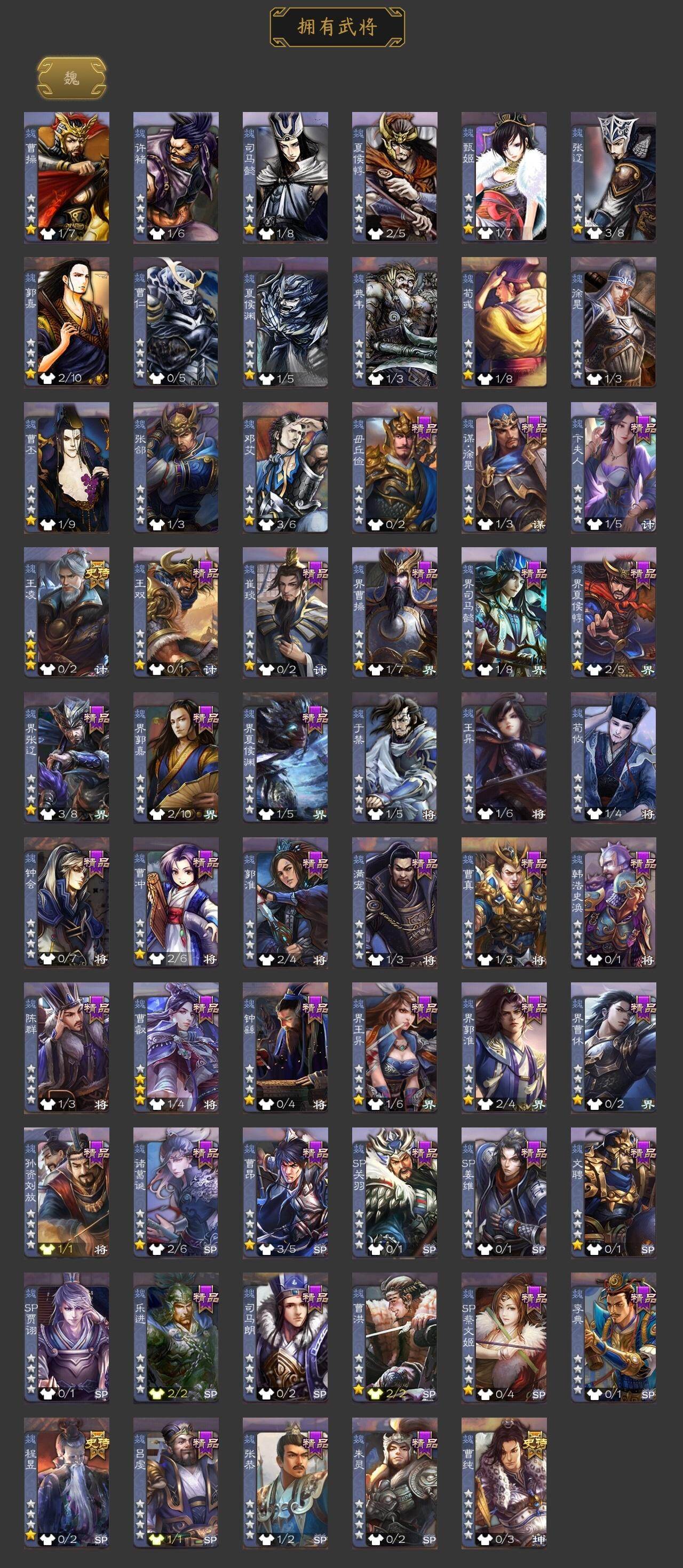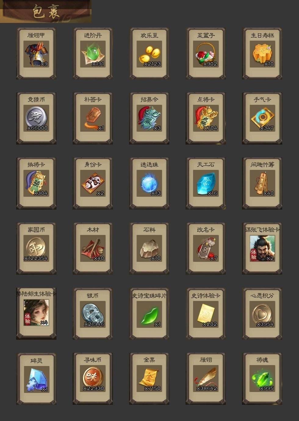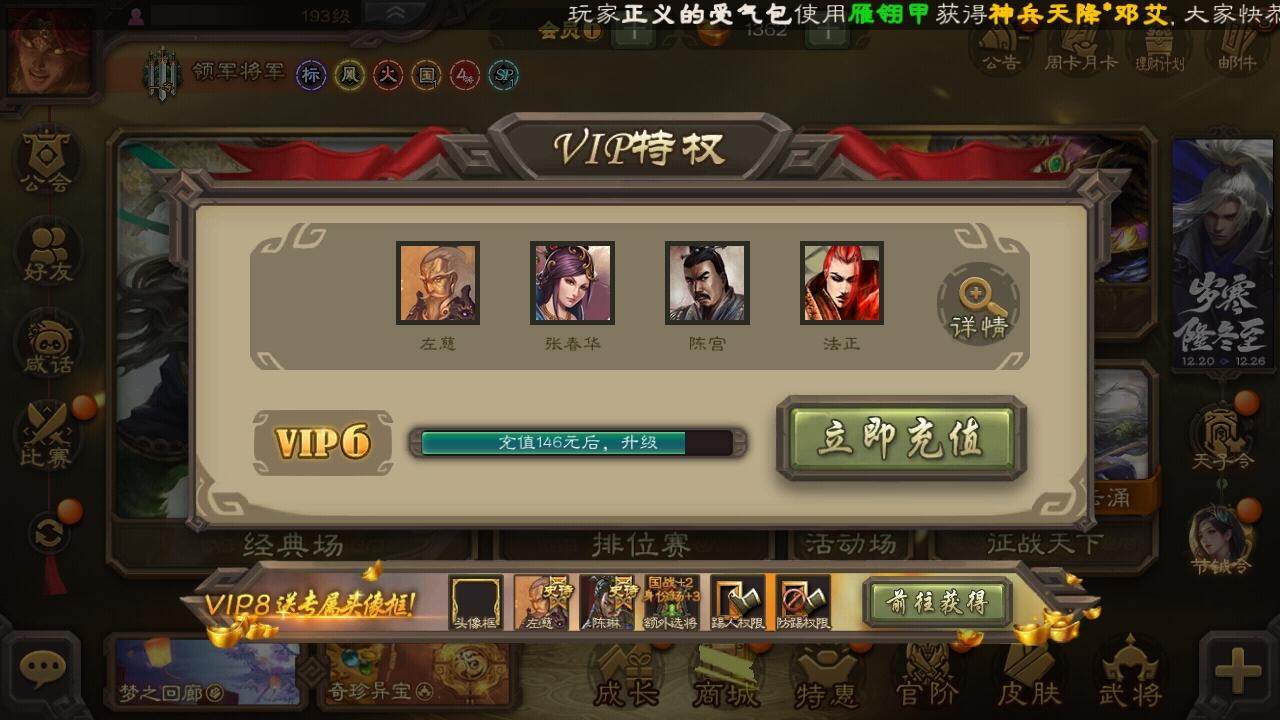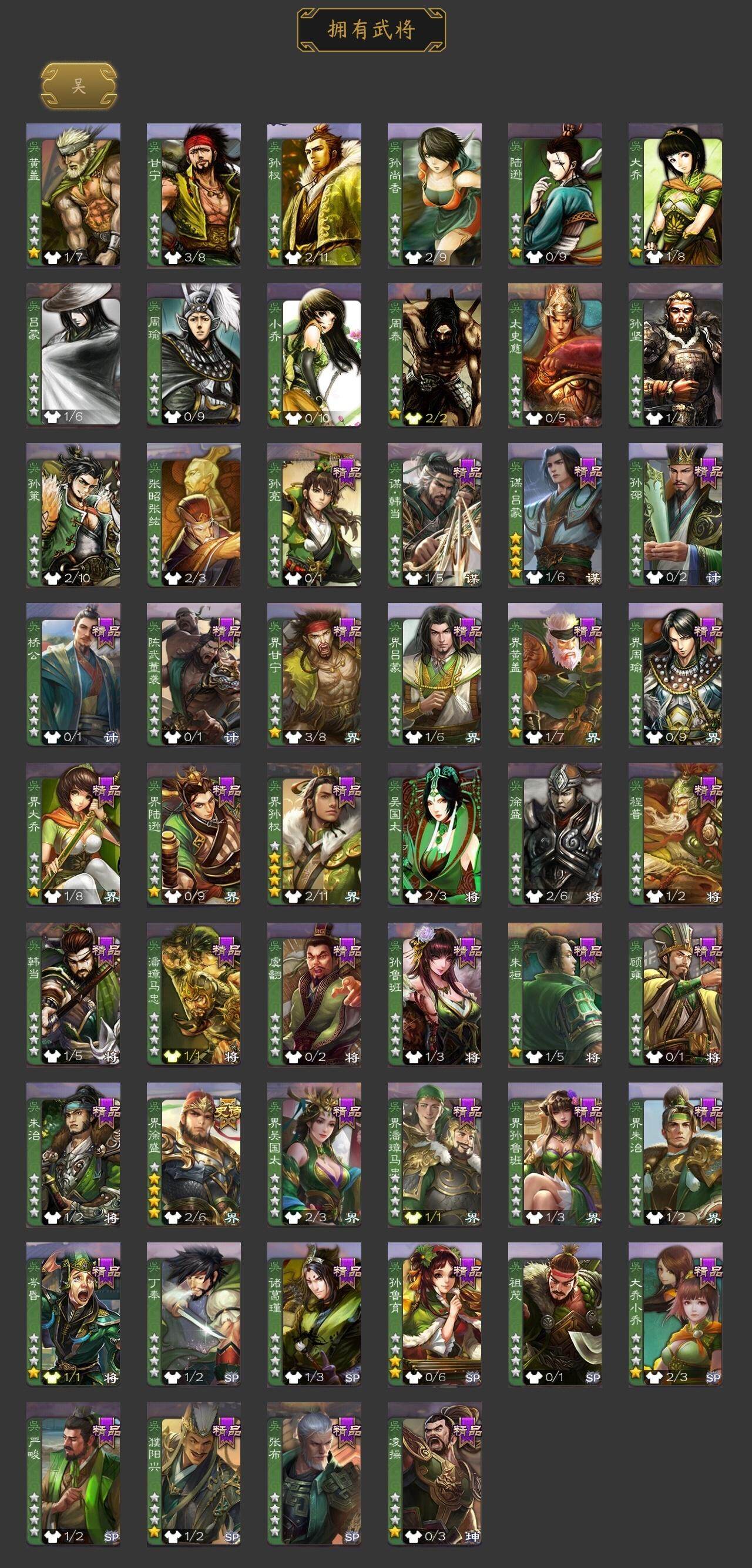 [15167079]【119】官阶:领军将军;vip等级:vip6;史诗武将数量:15;动态皮肤数量:5;武将总数:223;史诗宝珠数量:0;将魂数量:995;神将:4;魏国史诗武将:0;蜀国史诗武将:3;吴国史诗武将:1;群史诗武将:5 神吕布神赵云神孙策神周瑜王凌曹纯谋赵云谋马超花鬘界徐盛裴秀左慈苏飞沮授星董卓神孙策-霸王再世动态神吕布-冠绝天下动态神赵云-战龙在野动态李丰-太仓聚粟动态卧龙诸葛-火烧博望动态孙权-冠绝天下动态