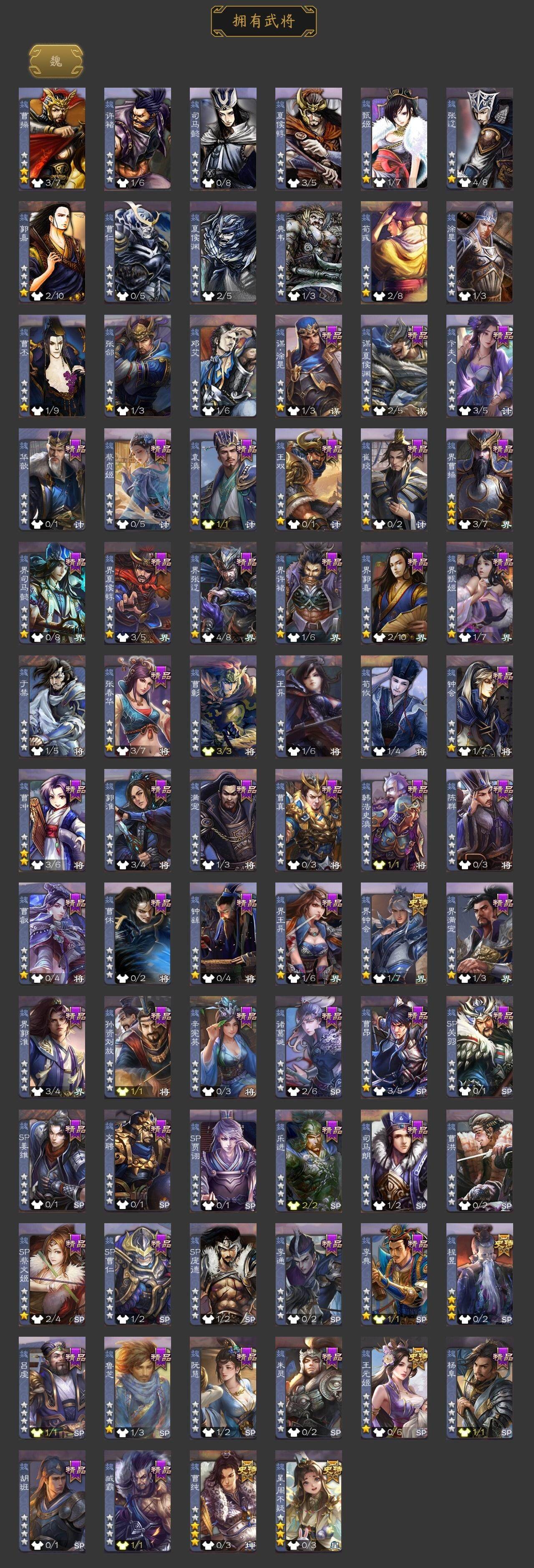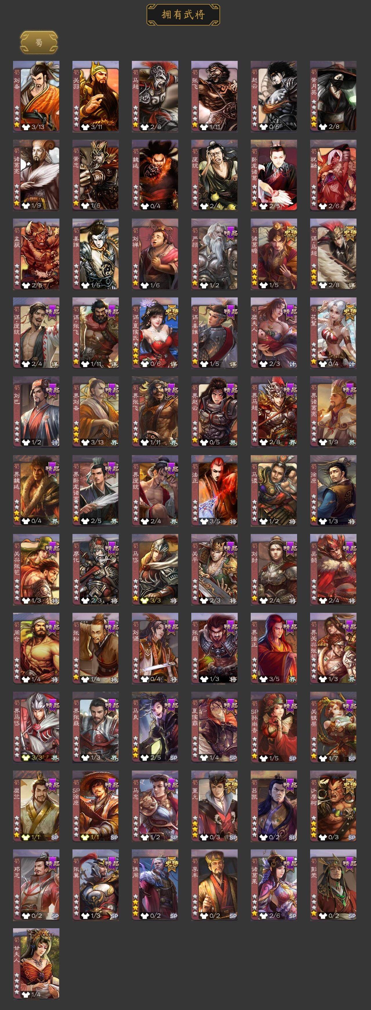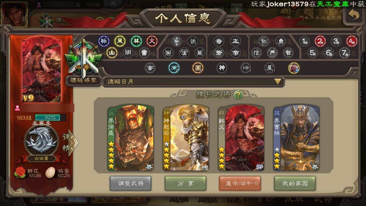[15167326]【509】官阶:骠骑将军;vip等级:vip9;史诗武将数量:24;动态皮肤数量:24;武将总数:281;史诗宝珠数量:0;将魂数量:4312;神将:3;魏国史诗武将:8;蜀国史诗武将:7;吴国史诗武将:4;群史诗武将:7 神赵云神吕蒙神诸葛亮星周不疑王元姬界钟会曹纯谋夏侯氏谋马超诸葛瞻沙摩柯谯周花鬘董允周处骆统界徐盛势陆郁生左慈张让麹义沮授界李儒张绣许攸神赵云-战龙在野动态张昌蒲-龙年端午(动态)甄姬-明珠耀躯(动态)sp蔡文姬-兔年冬日动态张春华-雪中舞刃动态刘备-龙御天下动态卧龙诸葛-龙跃凤鸣动态关索-依心缱绻动态诸葛瞻-绵竹之殇动态sp孙尚香-猪年圣诞动态诸葛果-蛇年限定动态周处-义除三害动态孙权-永开吴祚动态周瑜-兔年七夕动态孙策-虎踞江东动态徐盛-破军杀将动态孙寒华-蛇年限定动态灵雎-霜刃绚练动态袁绍-声震寰宇动态麹义-扬刀立威动态
