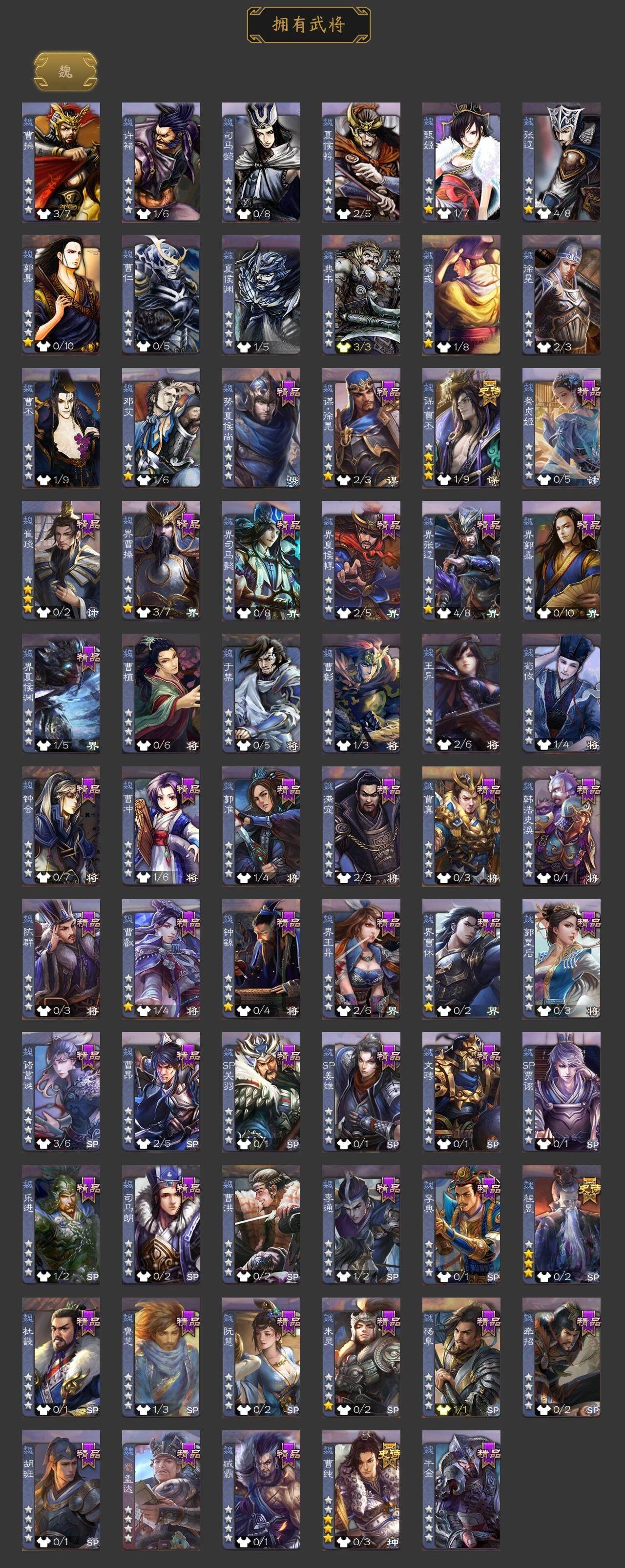 [15167801]【1016】官阶:领军将军;vip等级:vip7;史诗武将数量:16;动态皮肤数量:13;武将总数:227;史诗宝珠数量:0;将魂数量:3112;神将:2;魏国史诗武将:4;蜀国史诗武将:4;吴国史诗武将:3;群史诗武将:5 神太史慈神吕蒙曹纯谋曹丕谋黄忠诸葛瞻沙摩柯花鬘周处骆统贺齐左慈郑玄张让星甘宁许攸张昌蒲-龙年端午(动态)sp蔡文姬-兔年冬日动态花鬘-依心缱绻动态黄忠-明良千古动态诸葛瞻-绵竹之殇动态周处-义除三害动态灵雎-霜刃绚练动态许攸-火烧乌巢动态皇甫嵩-奋钺振旅动态