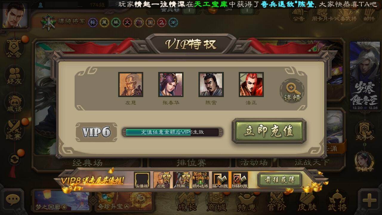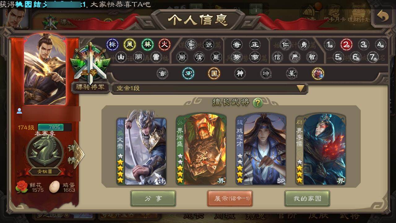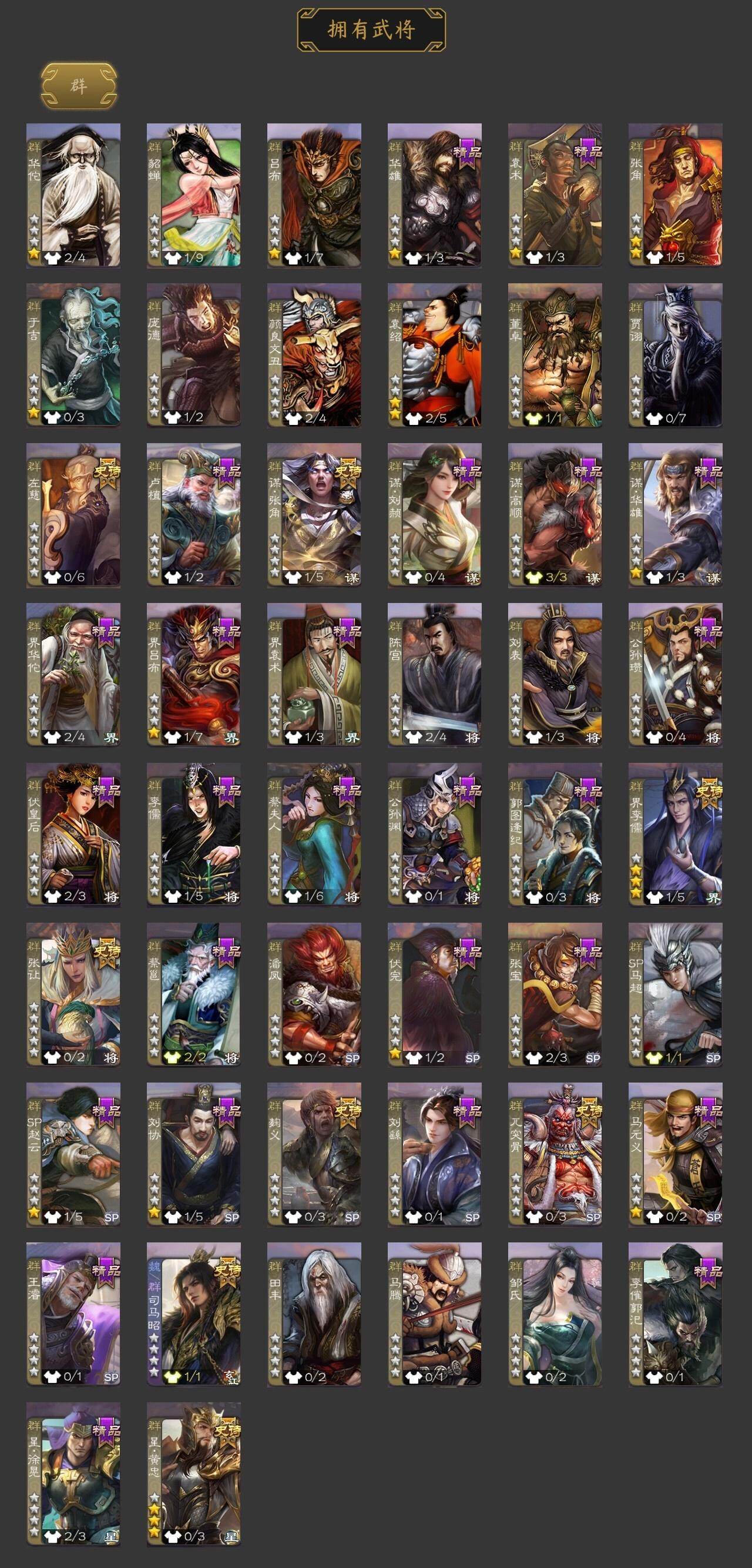 [15168032]【841】官阶:骠骑将军;vip等级:vip6;史诗武将数量:25;动态皮肤数量:14;武将总数:240;史诗宝珠数量:0;将魂数量:1154;神将:2;魏国史诗武将:10;蜀国史诗武将:5;吴国史诗武将:1;群史诗武将:6 神吕布神赵云星周不疑文鸯魏-司马昭界钟会陈琳曹纯戏志才刘晔蒋干谋赵云谋马超沙摩柯谯周花鬘界徐盛左慈张让星黄忠麹义界李儒谋张角神太史慈-勇撼日月动态星周不疑-才广志宏动态曹丕-龙年中秋动态戏志才-举棋若定动态司马昭-昭威淮南(动态)星徐晃-斧引霹雳动态卧龙诸葛-龙跃凤鸣动态关羽-明良千古动态关银屏-兔年春节动态周处-义除三害动态徐盛-破军杀将动态文鸯-势若万钧动态高顺-每战必克动态高览-威显官渡动态李儒-鸠杀少帝动态界李儒-鸠杀少帝动态