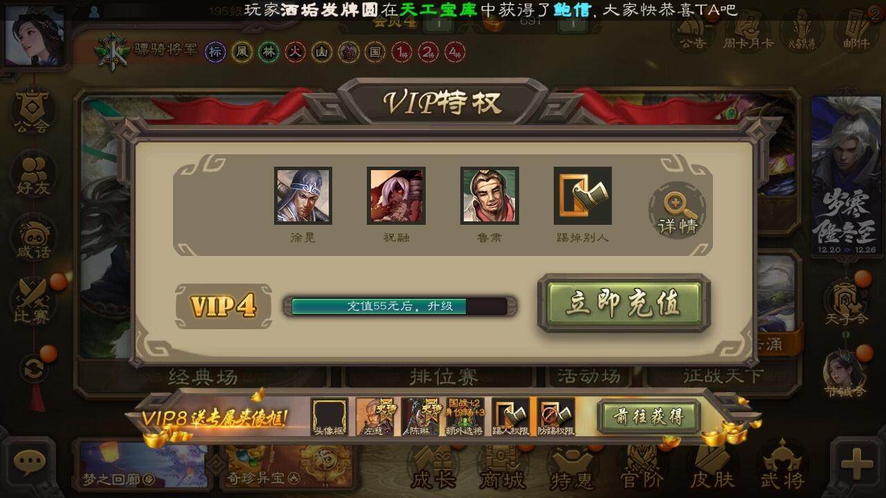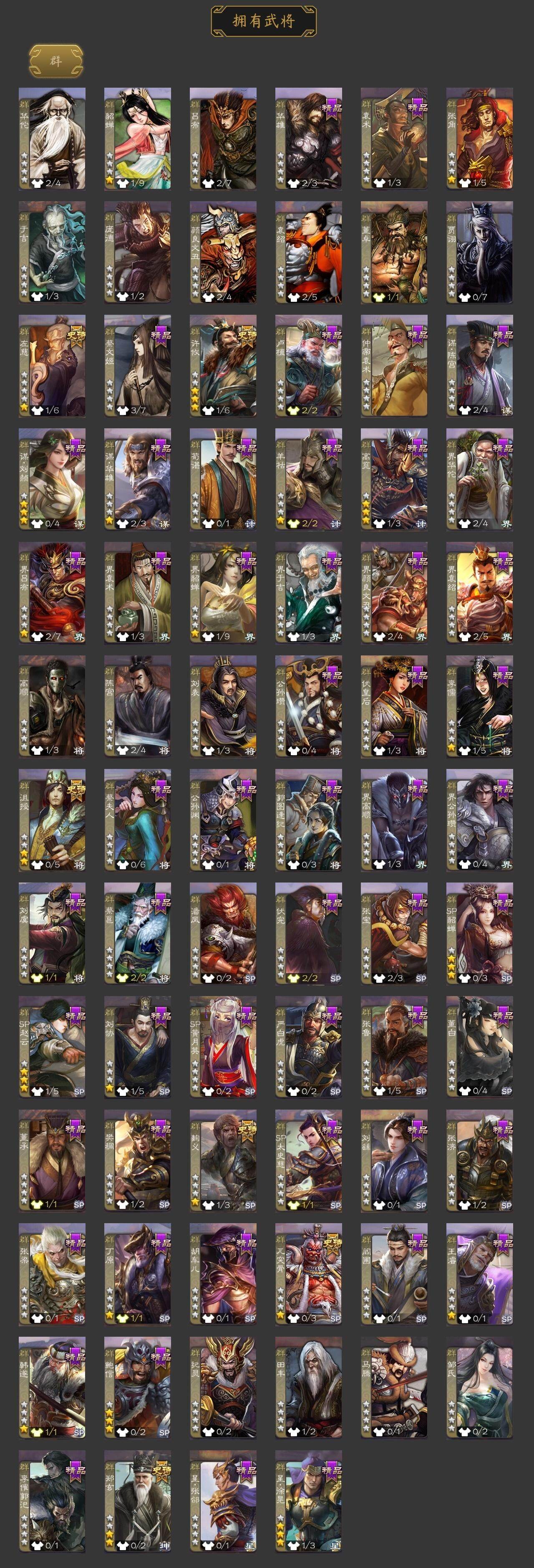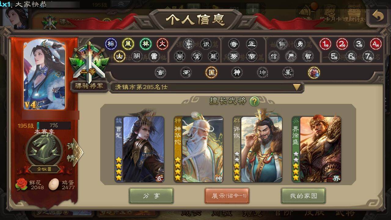[15168254]【695】官阶:骠骑将军;vip等级:vip4;史诗武将数量:21;动态皮肤数量:10;武将总数:294;史诗宝珠数量:0;将魂数量:2642;神将:3;魏国史诗武将:4;蜀国史诗武将:7;吴国史诗武将:1;群史诗武将:6 神华佗神吕蒙神周瑜曹髦星周不疑界钟会嵇康曹纯关索谋赵云谋马超诸葛瞻沙摩柯谯周董允界徐盛左慈郑玄麹义沮授鲍信许攸星周不疑-龙年清明动态sp蔡文姬-兔年冬日动态马超-牛年春节动态李丰-太仓聚粟动态周处-义除三害动态黄盖-兔年端午动态周瑜-兔年七夕动态孙权-牛年七夕动态界孙权-牛年七夕动态孙寒华-蛇年限定动态陆逊-蛇年清明动态